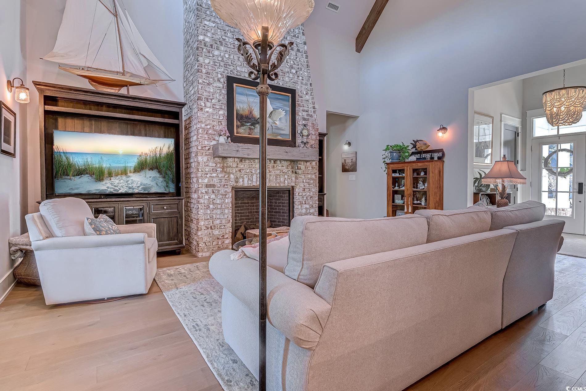 EXTREMELY RARE OPPORTUNITY to own a brand new, fully custom home in the highly coveted Debordieu Colony! The 5 bedroom 4.5 bath estate features soaring ceilings in the living room with exposed beams, a large fireplace, vaulted dining room adjoining your chef's kitchen, complete with a massive center island. Also on the main level, you will find 2 secondary bedrooms, each with their own private bath, the office/4th bedroom, and the spacious primary suite with his and her walk-in closets, stand-alone soaker tub, tiled shower, and separate vanities with loads of built-in storage! As you head down the hall you will see the half bath, an extra large pantry, and a dedicated laundry room. Head up the stairs, and you are greeted with ANOTHER full bathroom, 2 heated and cooled storage spaces for all your seasonal decorations, and an elaborate bonus room that would be perfect for a mother-in-law, theater, or game room! Outside on your .82 acre lot you will find a tree-lined backyard, covered porch, and a turnaround driveway leading into your extended 2 car garage and golf cart garage. The interior pictures are of a recently completed home. Opportunity to customize to your liking if you get in soon! Debordieu has it all! Tennis, pickleball, clubhouse, on-site dining, event venues, golf course, pools, playground, PRIVATE BEACH ACCESS, boating, and so much more! Call today, and be sure to check out the video!