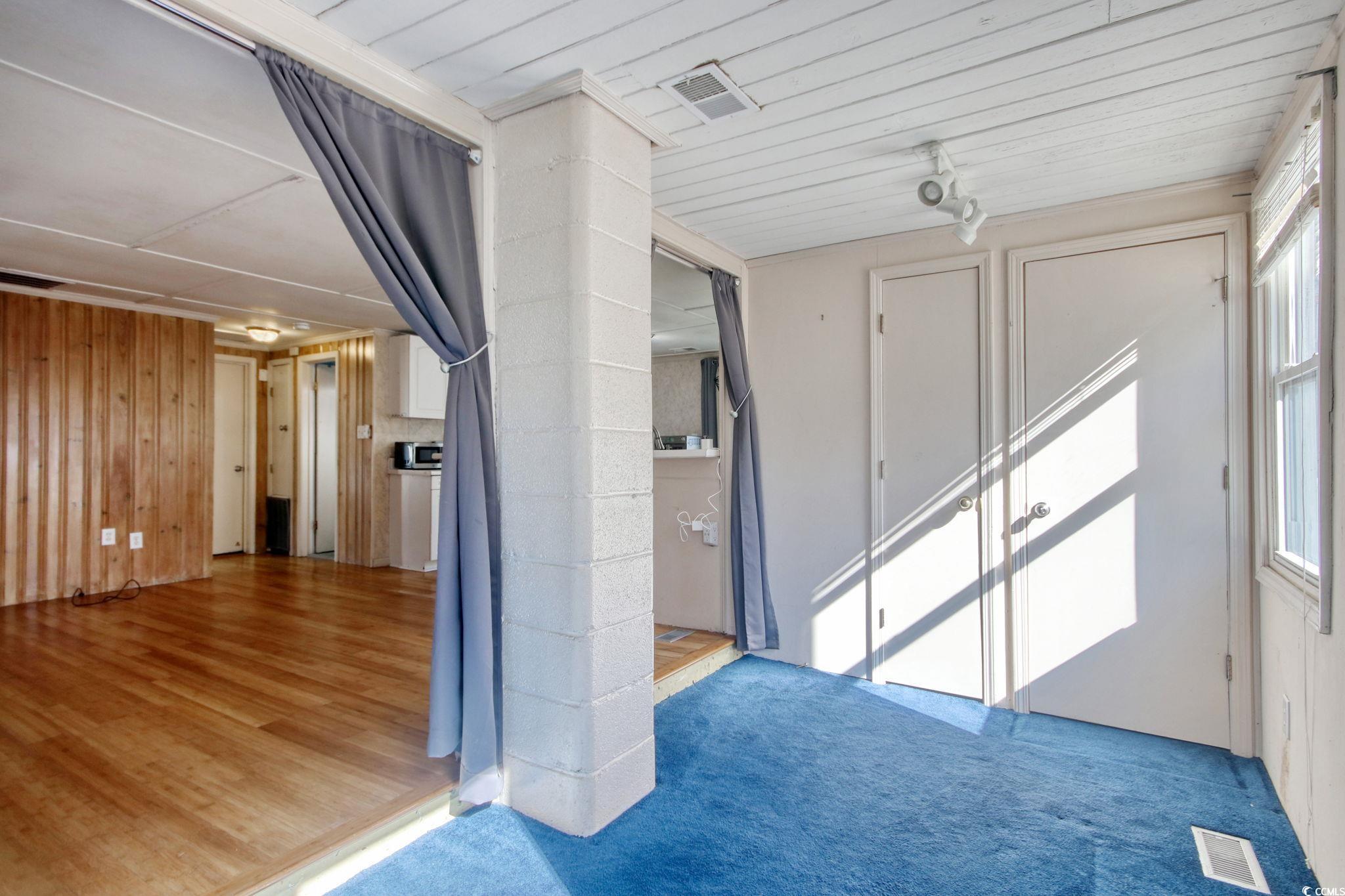 Own your piece of paradise with NO HOA East of 17 Business in Surfside Beach, the Family Beach! Just a short golf cart ride directly to the beach front! While this quaint little 2 bedroom, 1 1/2 bath rancher could use some TLC, here is the chance to personalize the home to your tastes. Home is being sold AS-IS. However, many updates have already been made. In 2020 a new roof was put on the house. Since 2021 the following improvements were made; a new HVAC system, a new front porch along with new front door and storm door, as well as New French doors leading to a newly redone rear deck. The bathroom has been updated as well to include a walk in shower. The kitchen boasts newer Stainless Appliances, including an Emeril Lagasse air fryer, and a roll around island. There is a hookup for a stackable washer/dryer in the house or use the full size washer and dryer which convey with the house in the enclosed addition.The backyard is completely fenced in, with a separately fenced kennel area as well. Great for pets or children. Enjoy fresh pears and pecans from your own backyard fruit trees. The rear yard also boasts 2 large storage/workshop units. One unit has both water and electric, including 110 and 220. The other unit has electric only. Have a boat or RV? No need to pay storage fees, plenty of room to park them in your own yard. Great opportunity for a primary or secondary home or rental income! No short term rentals allowed per the Town of Surfside Beach.