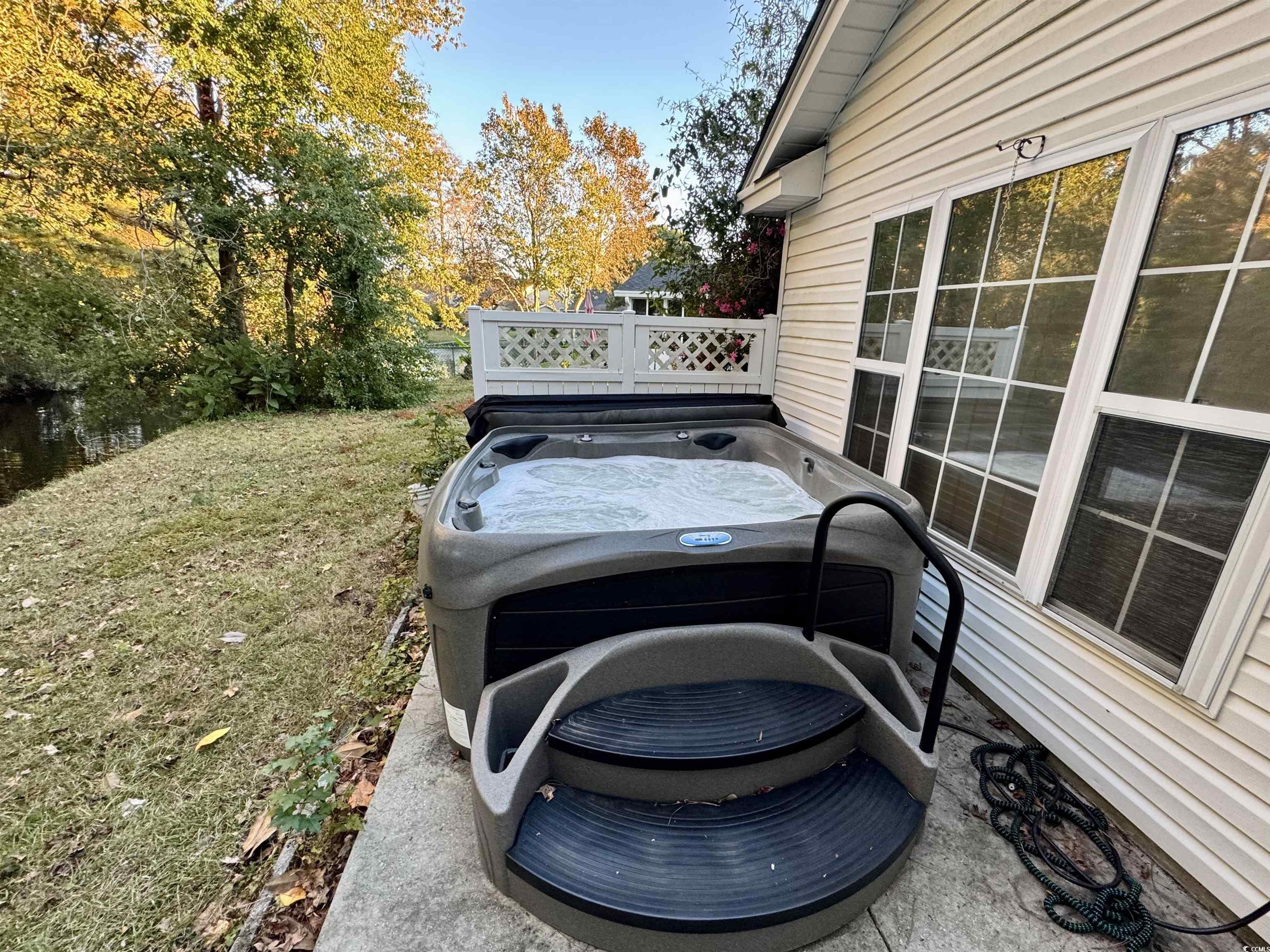 Welcome Home to Coastal living, looking for a perfect 3-bedroom, 2-bath home located in the center of a cul-de-sac in Harbour Village? One of Surfside Beachs ideal neighborhoods is located only 1.6 miles from the Surfside Beach Pier! The back patio includes a remote-controlled retractable awning! Spend your evening enjoying the oversized hot tub on your back patio while listening to the water flowing through the canal. This ranch-style house is all on the same level, so there are no stairs. This house is ideal for a primary residence or a second home. Call me or your Realtor today to schedule your private showing! Square footage, measurements, and HOA info are approximate and not guaranteed; the buyer and/or their agent are responsible for verification. Dont let this gem pass you by!
