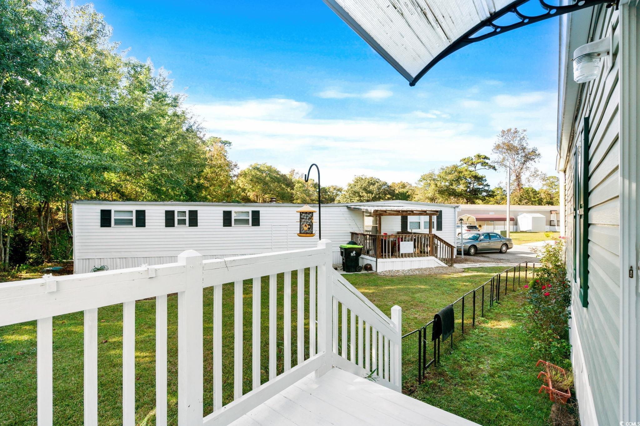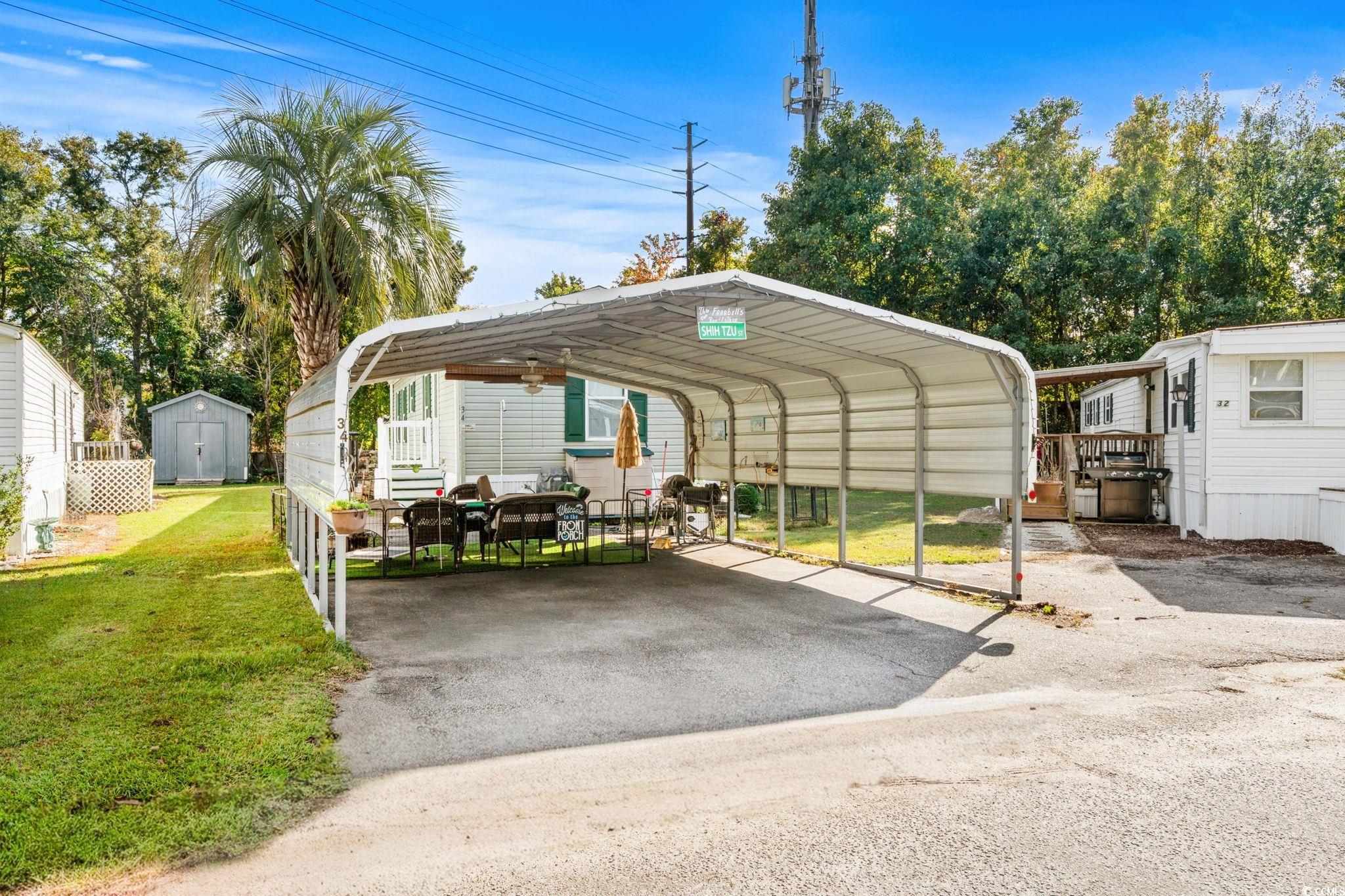 Discover comfort and convenience in this inviting 2-bedroom, 2-bathroom manufactured home located in the sought-after community of Windjammer Village. The open floor plan creates a welcoming flow between the main living areas, highlighted by a warm color palette that adds to the homes cozy charm. The kitchen provides plenty of space for meal prep and storage, while the adjoining dining and living areas make it easy to relax or entertain. The primary bedroom offers a peaceful retreat with a ceiling fan, private bathroom featuring extra storage, and a spacious shower. A split bedroom layout ensures privacy, with the second bedroom and full bathroom situated on the opposite side of the home. Enjoy the outdoors from your covered carport or relax in the backyard that backs up to a wooded area for added privacy. A storage shed provides additional convenience for tools or beach gear. Windjammer Village residents enjoy access to a refreshing community pool and a friendly, coastal atmosphere. The location is hard to beat, less than two miles from the pier and the sandy shores of Garden City Beach, where you can spend your days enjoying the ocean breeze and local seaside attractions. Just under three miles away, the renowned Marsh Walk in Murrells Inlet offers waterfront dining, live music, and a vibrant mix of popular eateries to explore. The community also provides easy access to shopping, golf, and entertainment, making it a wonderful choice for those seeking both relaxation and convenience whether as a full-time residence or a coastal getaway. HOA information has been provided to the best of our ability. All information should be verified and approved by the buyer. Square footage is approximate and not guaranteed. The buyer is responsible for verification.
