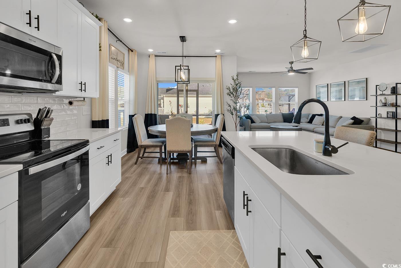 Move-in ready with a rare corner-lot setting in one of Little Rivers most sought-after coastal communities. Extra-Large Corner Lot 5 Bedrooms 3 Bathrooms Creekside Point Discover your dream home in Little River, South Carolinawhere coastal charm meets modern design. This beautifully upgraded five-bedroom, three-bath home sits on an oversized corner lot, offering exceptional space, privacy, and curb appeal in the highly desirable Creekside Point community, just minutes from North Myrtle Beach and the Intracoastal Waterway. Inside, the open-concept layout is filled with natural light and thoughtful finishes. The kitchen features quartz countertops, stainless steel appliances, upgraded cabinetry with pull-out drawers, and custom lighting, flowing seamlessly into the dining and living areas. Post-construction upgrades include a decorative storm door, luxury vinyl plank flooring, wainscoting, a geometric accent wall in the office, an updated front bathroom, and a custom shiplap feature wall with mounted TV. Outdoor living shines with a screened porch, extended stamped-concrete patio, and fully fenced backyard accented by tropical palms. A hot tub and playground/swingset complete the spaceideal for relaxation and entertaining. The main-level owners suite offers a walk-in closet and spa-style bath, while upstairs includes two additional bedrooms, a full bath, and a bonus room providing flexible living options. The HOA includes high-speed internet and trash pickup service, adding everyday convenience and value.
