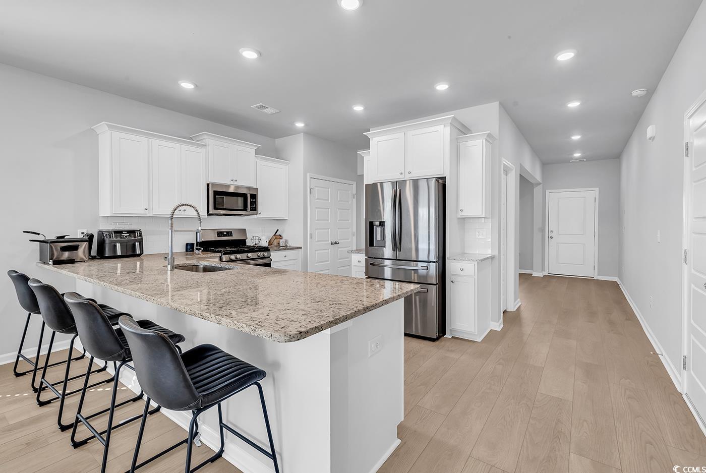 Spacious 5-Bedroom Home in the Desirable Arcadia Community! Step inside this beautifully designed 5-bedroom, 3.5-bath Kensington floor plan and discover a home built for comfort and style. The first-floor owners suite offers convenience and privacy, while upstairs youll find three additional bedrooms plus a spacious 20' x 15' guest suite perfect for guests, a playroom, or even a second living area. The open-concept layout features both formal dining and family room spaces, ideal for hosting gatherings or relaxing at home. The kitchen is sure to impress with granite countertops, stainless steel appliances, a natural gas range, and upgraded 36"" and 42 staggered white cabinetry. Other highlights include a tankless Rinnai hot water heater, laminate flooring, and a luxurious tile shower in the owners bath and gutters around the home. Located in the sought-after Arcadia community in the Forestbrook area of Myrtle Beach, this home offers access to fantastic amenities including a zero-gravity pool, clubhouse, pickleball courts, playground, and fitness center. Plus, youll be just minutes from the beach, shopping, dining, and entertainment!
