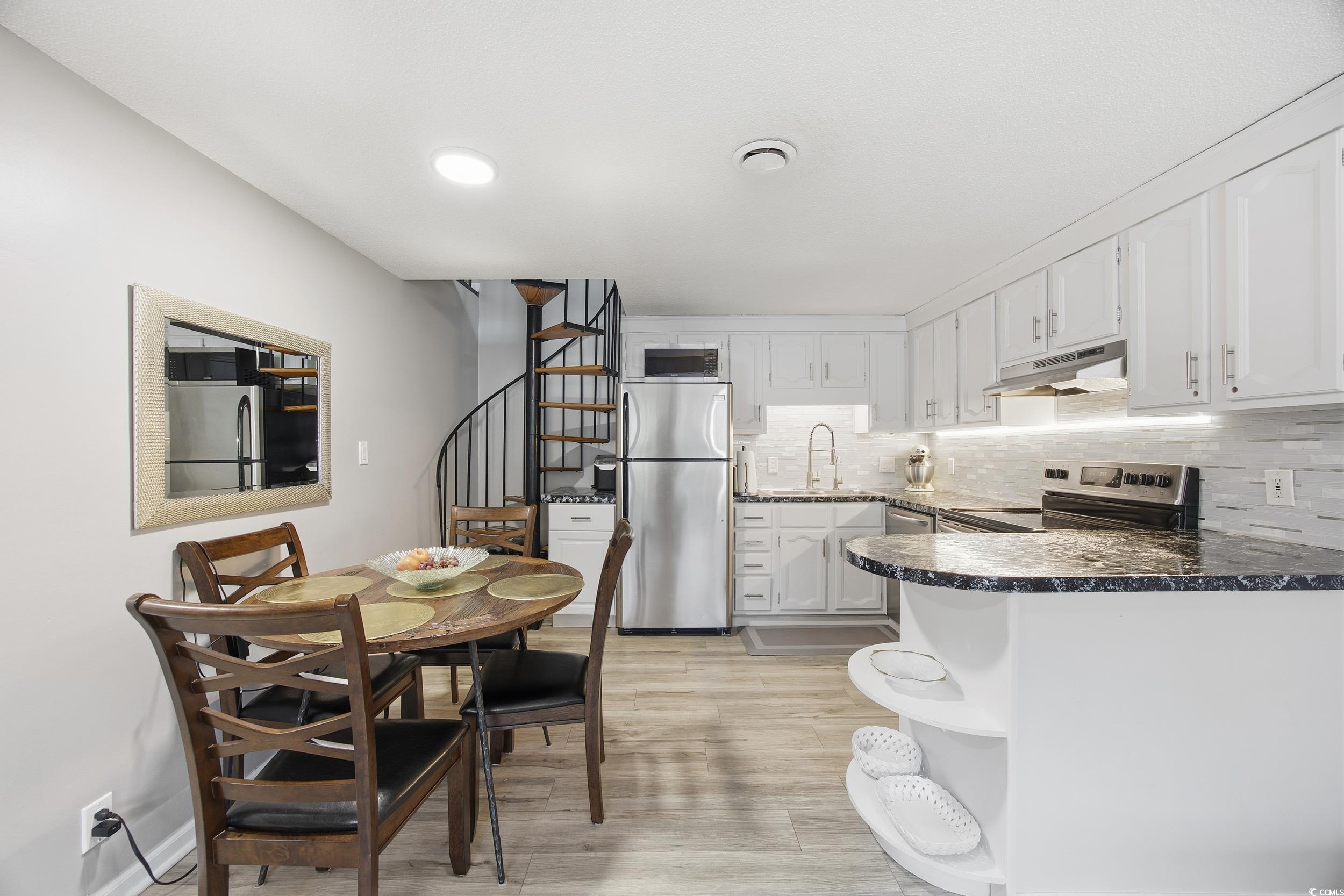Live the Myrtle Beach lifestyle every day in this stylishly updated 2-story condo just minutes from the coastline! Step inside to a bright, inviting living area featuring vaulted ceiling, a charming wood-burning fireplace and a stunning spiral staircase leading to a versatile loft space with its own half bathperfect as a guest suite, office, or hobby room. The kitchen shines with stainless steel appliances, and the fresh interior paint, luxury vinyl plank flooring, updated bathrooms, and modern fixtures make this home truly move-in ready. The full size washer and dryer are even included! The primary bedroom on the main floor offers generous closet space and direct access to a private deck through a new sliding glass doorideal for morning coffee or relaxing evenings outdoors. Major improvements have already been taken care of for you, including a recently replaced roof and fresh exterior paint on the building. When you're not at the beach, enjoy the convenience of the community pool just steps away. Centrally located near Market Common, shopping, dining, golf, attractions, and the airportthis one checks every box for a full-time residence, second home, or rental investment. A rare blend of comfort, upgrades, and location just bring your flip-flops!