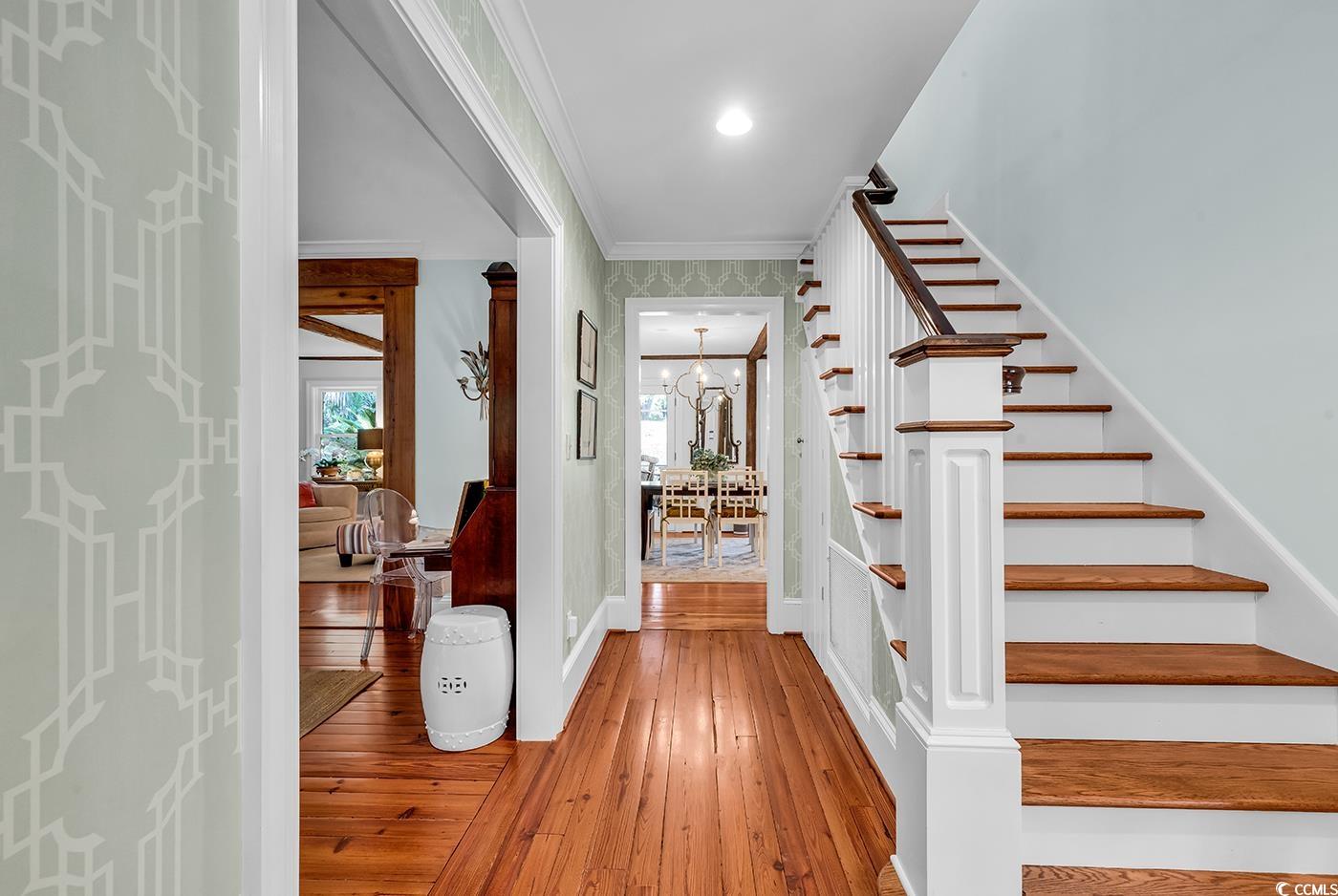 FLEXIBLE CLOSING DATE. SELLER CAN CLOSE IN 2025 OR 2026 depending on the buyers needs. NEW PRICE!!! NORTH LITCHFIELD BEACH! UPSTAIRS (3 BEDROOMS + 3 BATHS): Master bedroom suite + 2 additional bedrooms with en-suite bathrooms. DOWNSTAIRS: 4th bedroom/ office space (4th full bath not connected) Sellers can be flexible on closing date!! Discover classic Lowcountry charm blended with timeless coastal elegance in this impeccably maintained home nestled on one of the most desirable streets in the sought-after North Litchfield Beach community. Just a short stroll or golf cart ride from the beach, 435 Lakeshore Drive offers the warmth and character of a full-time or part-time residence while maintaining the relaxed allure of a coastal vacation retreat. Every corner exudes quality and attention to detail from the original heart pine floors, antique beams, beautifully updated kitchen with a gas range, to the inviting living areas anchored by a cozy gas-burning fireplace. The primary suite, fully renovated in 2019, offers a serene escape featuring a spa-inspired bathroom, custom finishes, and timeless design. Thoughtful updates continue throughout, including new windows and doors, HVAC system (2022), and a new hot water heater (2024) all ensuring comfort and efficiency for years to come. The metal roof provides both durability and classic coastal appeal. Perfect for entertaining year-round, the expansive screened porch overlooks lush, established landscaping and a lovely courtyard with a fountain, creating a tranquil outdoor living experience. Two spacious front porches one on each level offer peaceful views and an inviting invitation to come stay awhile. Additional highlights include a two-car garage with walk-in storage closet/workshop, extended driveway space, multiple living and gathering spaces, and elegant fixtures throughout. Whether youre seeking a refined primary residence or a coastal getaway with excellent rental potential, this North Litchfield gem embodies the best of Pawleys Island living where timeless design meets effortless comfort.