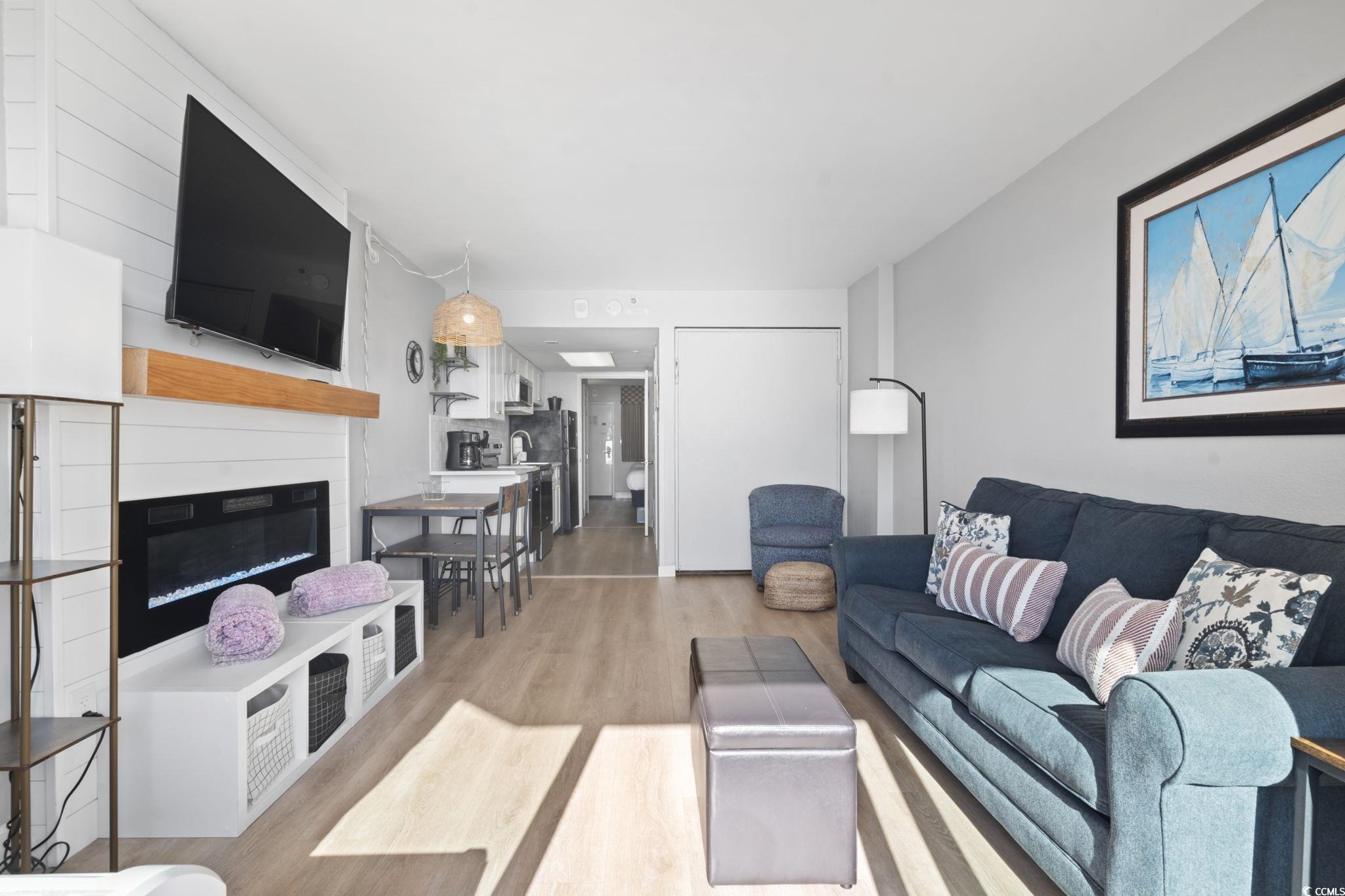Wake up to the sound of waves and endless ocean views from this beautifully upgraded 1BR condo on the 10th floor of a sought-after oceanfront resort. Unit 1055 is a coastal gem, offering a breezy, light-filled layout with an extended kitchen that includes a refrigerator, stove, microwave, and dishwasherperfect for longer stays or high-performing rentals. Fully furnished and thoughtfully designed, this unit features luxury upgrades throughout, a built-in Murphy bed for flexible sleeping arrangements, and a cozy fireplace to unwind after sun-soaked days. Step onto your private balcony and take in the sweeping views of the Atlantic or enjoy the resorts family-friendly amenities including indoor and outdoor pools, a fitness center, on-site dining, and easy access to Myrtle Beachs top attractions, restaurants, and entertainment. With a strong rental history and high occupancy rates, Unit 1055 offers the perfect blend of beachside relaxation and high-yield investment potential. Whether you're looking for a personal retreat or a turnkey income property, this oceanfront condo delivers laid-back charm, modern comfort, and unbeatable location.