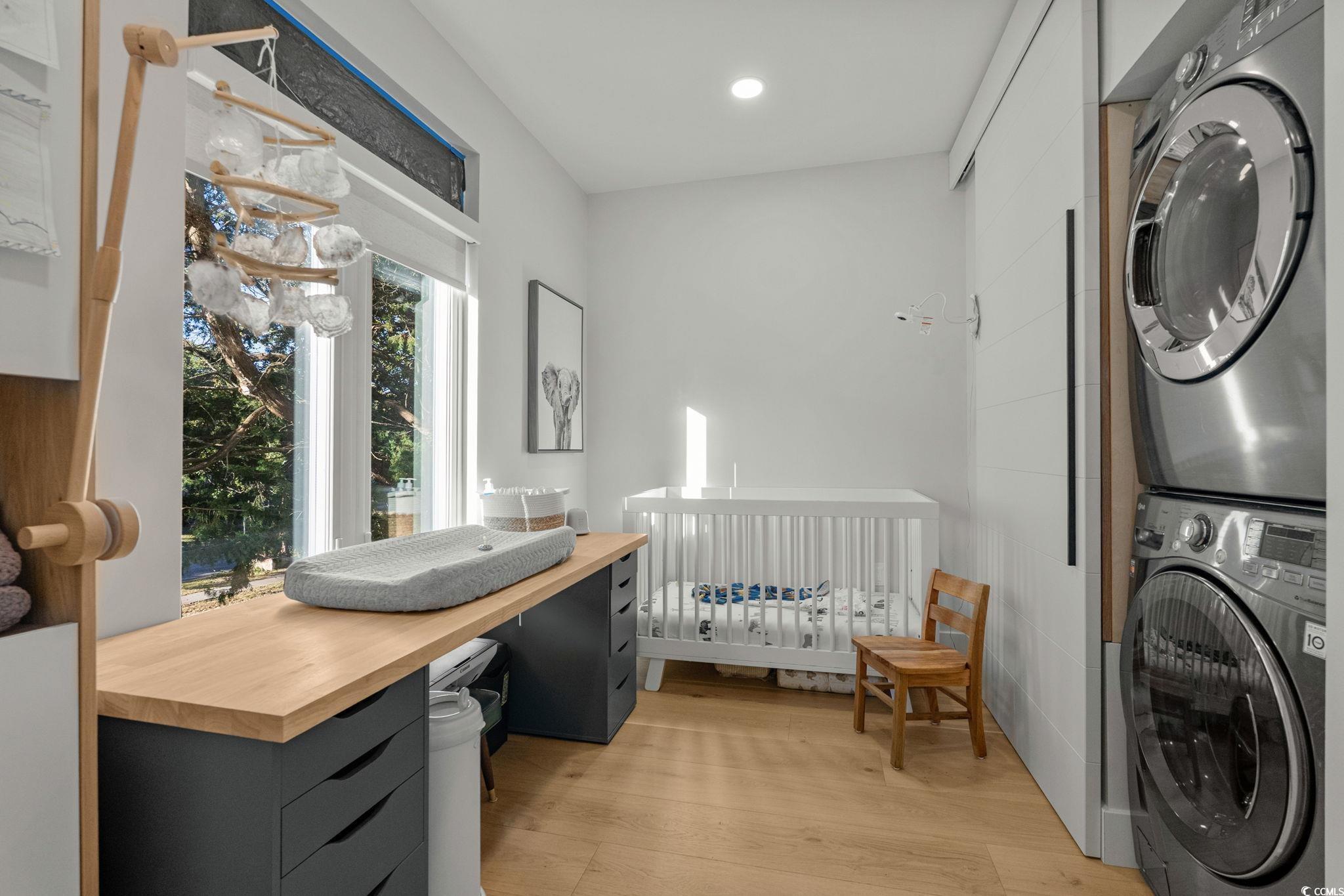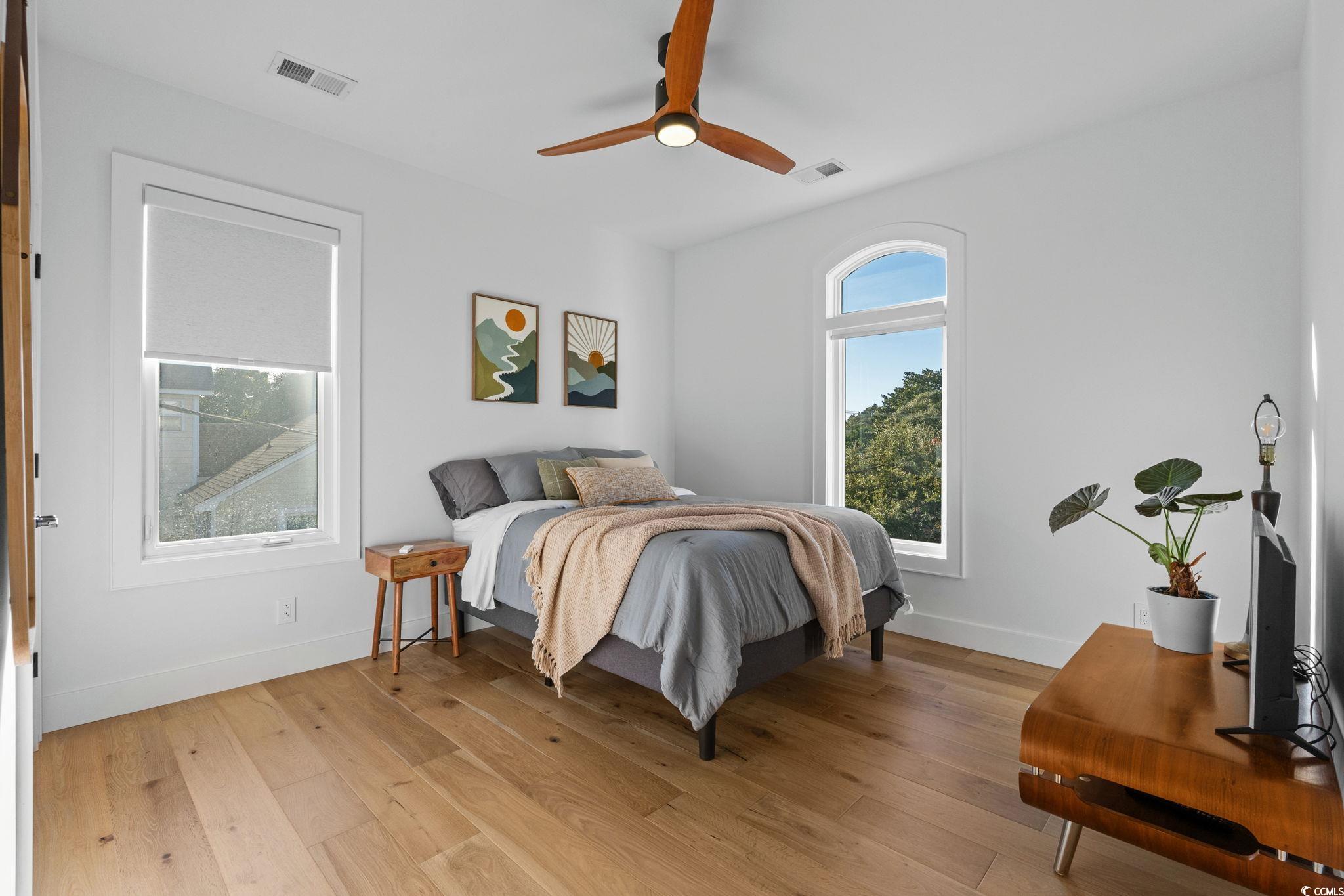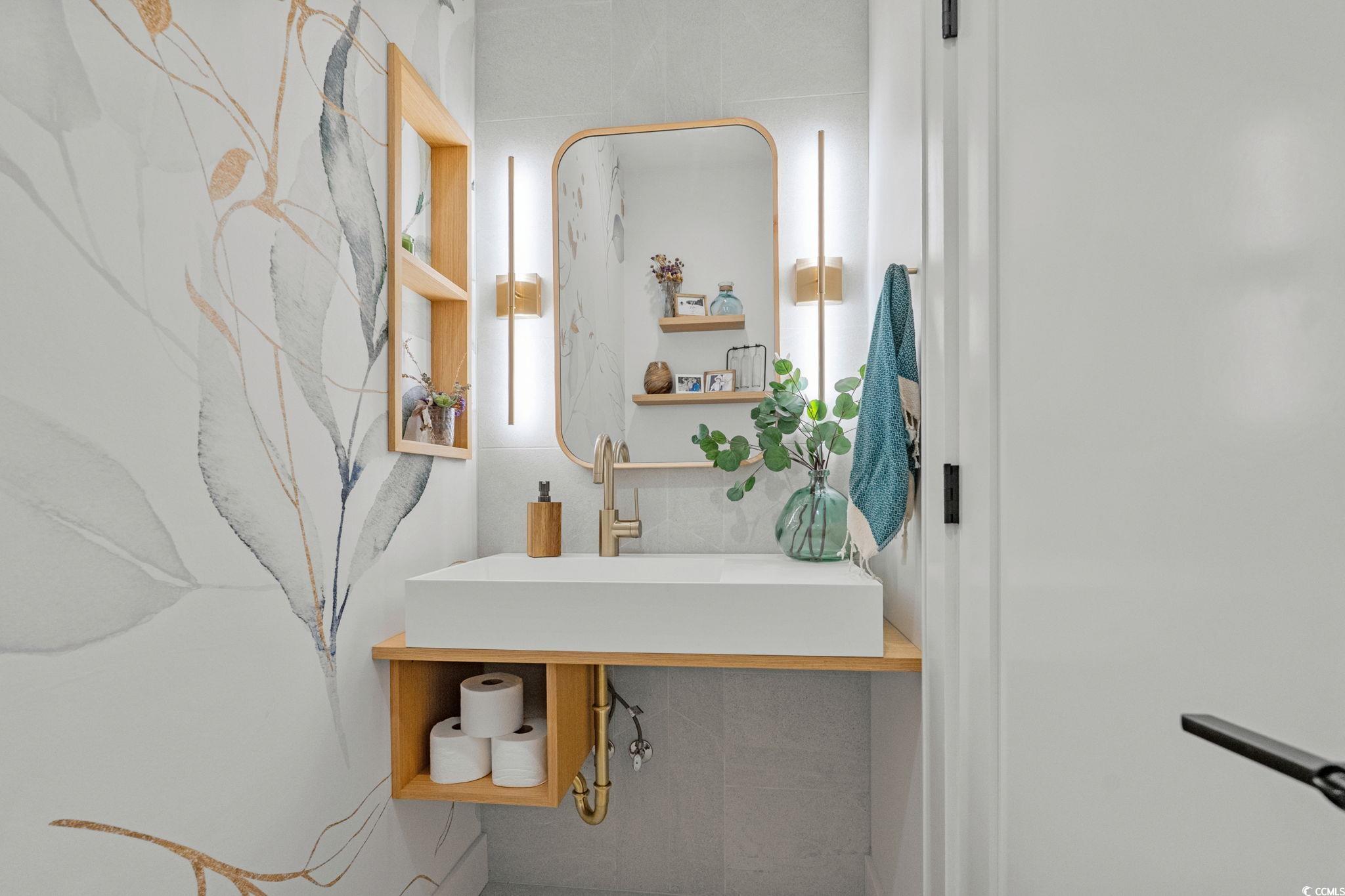 Experience refined coastal living in this private, ocean-view luxury residence located in the prestigious Avenues section of Myrtle Beachwhere elegance, privacy, and modern design converge. This 4-bedroom, 3.5-bath home impresses from the moment you arrive, with exceptional curb appeal setting the tone for the impeccable quality found throughout. Lush landscaping, Brazilian hardwood decking, cypress ceilings, and a striking glass-and-iron front door greet you outside, while wide-plank white oak engineered hardwood floors flow through light-filled living spaces inside that capture sweeping ocean views protected by setbacks to ensure they remain unobstructed even if the lot behind is developed. The gourmet kitchen is a showcase of craftsmanship, featuring Taj Mahal quartzite waterfall countertops, custom cabinetry with rift white oak fronts, solid cherry dovetail drawers, brass hardware, a built-in JennAir refrigerator, reduction cooktop, two-drawer Fisher & Paykel dishwasher, pullout pantry, and a hidden microwave nook. The primary suite offers a serene retreat with a spa-inspired bath that includes a soaking tub, double-sink vanity, and a beautifully tiled walk-in shower. Every detail throughout the home reflects careful design and superior finishes. An elevator provides easy access to all levels, while the conditioned and insulated three-car garagewith an EV charger, painted floor, and workshop spaceadds both comfort and functionality, as do the roof's solar panels. Two expansive rear porches overlook a private backyard paradise with an in-ground pool, built-in outdoor kitchen, and panoramic ocean views framed by lush greenery. This rare offering combines modern luxury, thoughtful craftsmanship, and coastal serenity in one of Myrtle Beachs most desirable neighborhoods with no HOA dues.