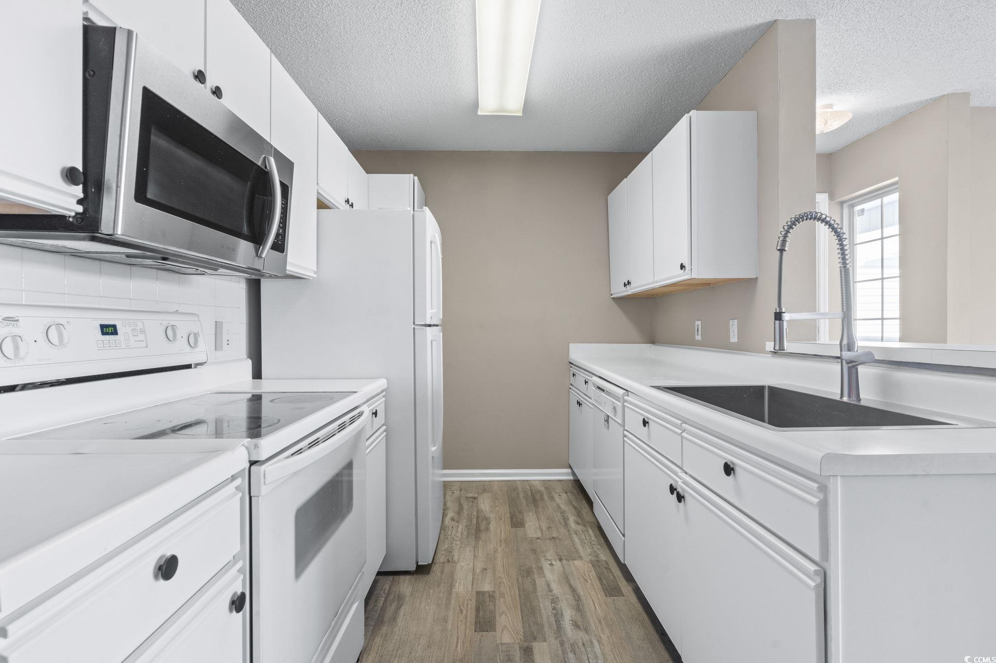 3-Bedroom Condo with Pond Views and Carolina Room in South Bay Lakes! Looking for a move-in ready condo with tranquil pond views in Surfside Beach? This beautifully updated 3-bedroom, 2-bathroom single-level condo offers comfort, style, and convenience - perfect for full-time coastal living or a relaxing getaway near the beach. Step inside to find a bright, open living space with LVP flooring, fresh paint tones, and a smooth flow into the Carolina Room, where natural light fills the space overlooking the pond. It's the ideal spot to enjoy your morning coffee or unwind after a day at the beach. The Carolina Room has been completely redone. The kitchen features beautiful white cabinetry, offering plenty of space for cooking and entertaining. The large stainless steel sink has just been replaced.The primary suite includes a walk-in closet and updated bath, while two additional bedrooms provide flexible space for guests or a home office. You'll love the rustic touches like barn doors and wood accents, giving this condo a cozy, farmhouse-inspired feel. Enjoy the added convenience of an attached storage room, in-unit washer and dryer, and a sunroom with serene water views that can be enjoyed year-round. South Bay Lakes offers a tremendous lifestyle with two outdoor community pools, a scenic observation deck overlooking the pond near the clubhouse, and peaceful nature paths throughout the neighborhood. Nestled between Hwy 17 Business and Hwy 17 Bypass, you're just minutes from Murrells Inlet MarshWalk, Huntington Beach State Park, Brookgreen Gardens, and all the local dining and shopping the Grand Strand is known for. Don't miss this incredible opportunity to own a piece of paradise in one of the most sought-after coastal communities along the South Carolina coast. Schedule your showing today and start living the coastal lifestyle you've always dreamed of! All measurements are approximate and not guaranteed. Buyer is responsible for verification.