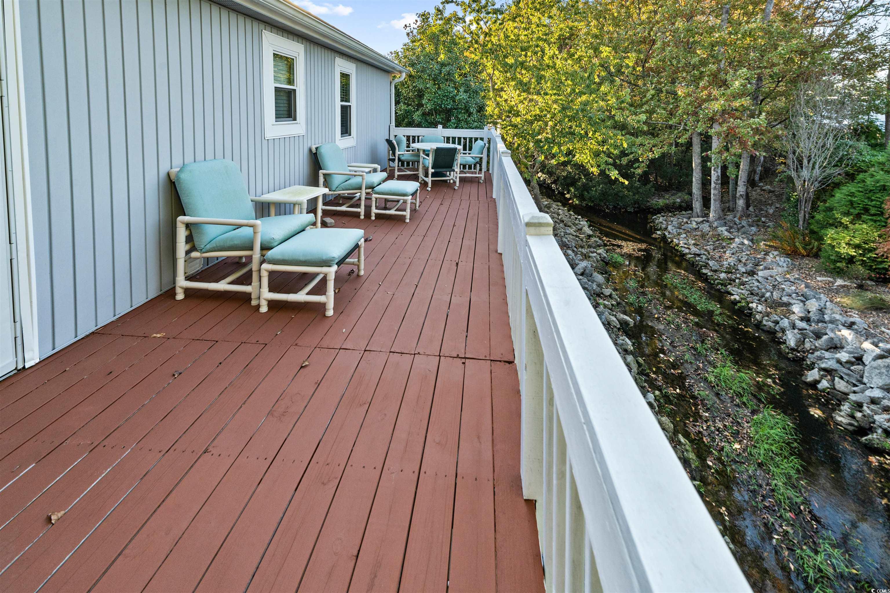Located just a short golf cart ride from the beach, this beautifully maintained and fully furnished three-bedroom, two-bath home is nestled in the desirable Willow Creek community of North Myrtle Beach. The open living and dining area is bright and inviting, featuring vaulted ceilings and wood flooring. A spacious Carolina room offers the perfect place to relax or enjoy morning coffee, and the private deck is ideal for outdoor gatherings. The home also includes a large enclosed storage area on the lower level and covered parking for convenience. Residents enjoy a peaceful setting with a community pool and easy access to Main Streets festivals, live music, dining, and shopping. This beautiful home is ideal for those seeking a comfortable coastal lifestyle in a well-kept, residential neighborhood.
