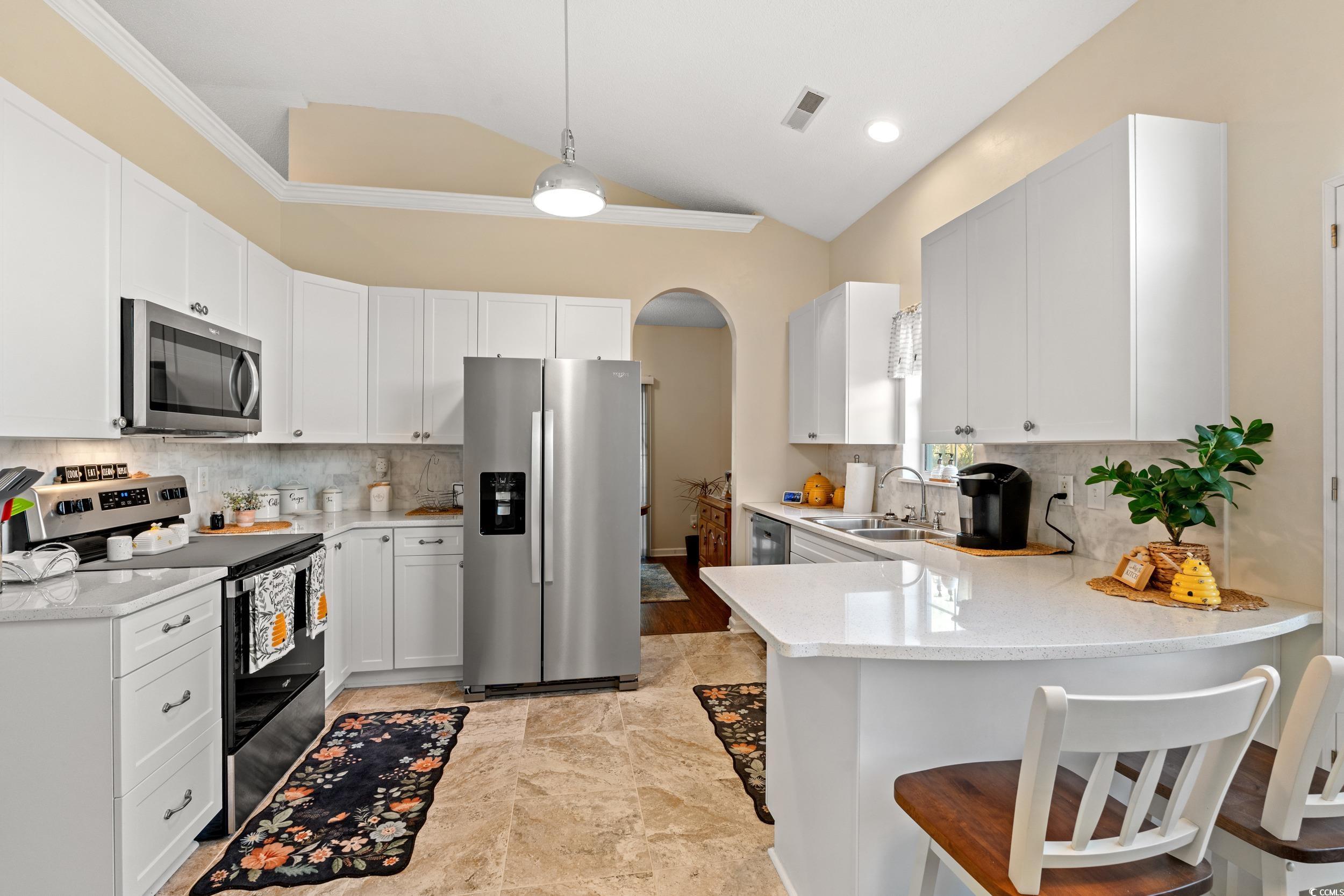 Do not pass up the opportunity to own this beautiful one level living home at a fantastic price. This open floor plan has 3-Bedrooms, 2 full baths in the desirable Tradition Club - Minutes from Litchfield by the Sea. The seller has made several improvements including both bathrooms, kitchen, and flooring remodel. This golf course community is just a short golf cart ride to the oceanfront clubhouse at Litchfield by the Sea. Perfectly positioned on the #8 fairway of The Tradition Club Golf Course, this home offers resort-style living with access to tennis courts, a community pool, and all the exclusive amenities of Litchfield by the Sea. Step inside to a spacious great room with vaulted ceilings and a bright Carolina Room featuring Plantation Shutters. The functional floor plan includes a formal dining room just off the kitchen, an eat-in area, and luxury vinyl plank flooring throughout. The primary suite boasts two walk-in closets and a large en-suite bathroom with dual sinks, walk-in shower, and private water closet. Enjoy an active coastal lifestyleride your bike, walk, or take your golf cart to the beach, nearby restaurants, shops, and the local library. Litchfield by the Sea offers an oceanfront clubhouse with sundeck, beach showers, restrooms, walking and biking trails, a fishing pier, and a marsh overlook with a floating dock. Conveniently located near casual and fine dining, world-class golf, and local attractions: Brookgreen Gardens and Huntington Beach State Park, Myrtle Beach, Georgetown, and Charleston.