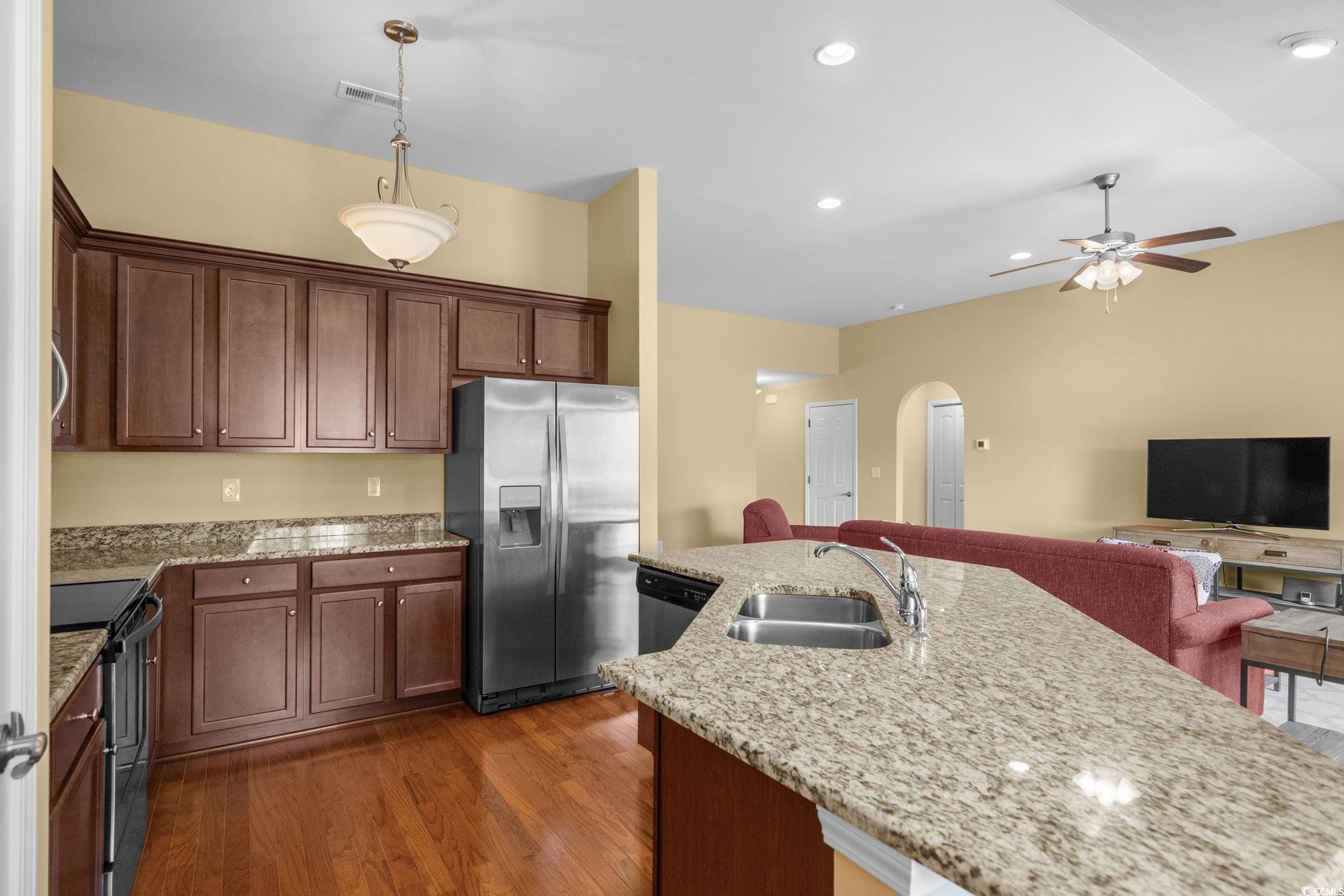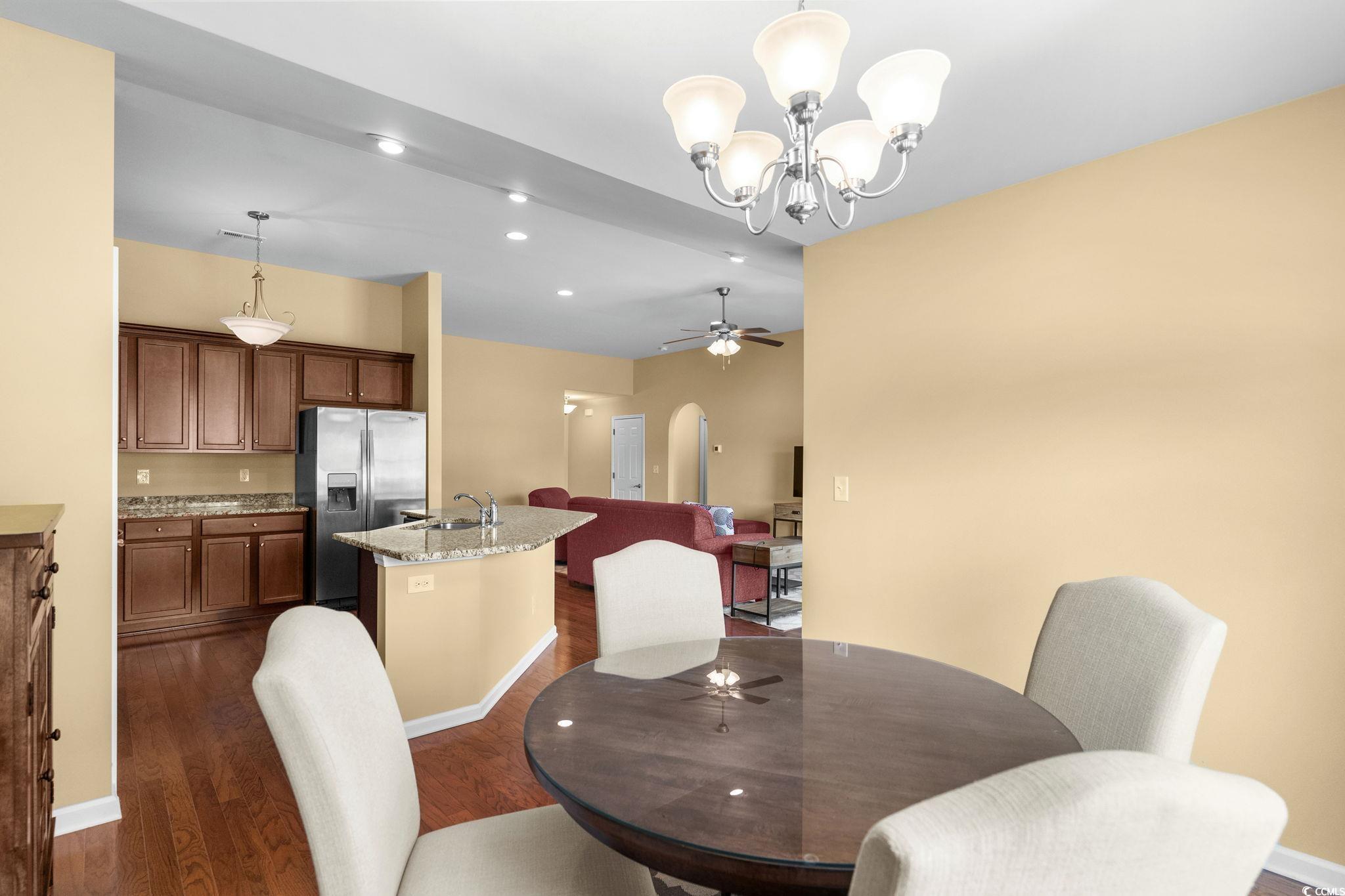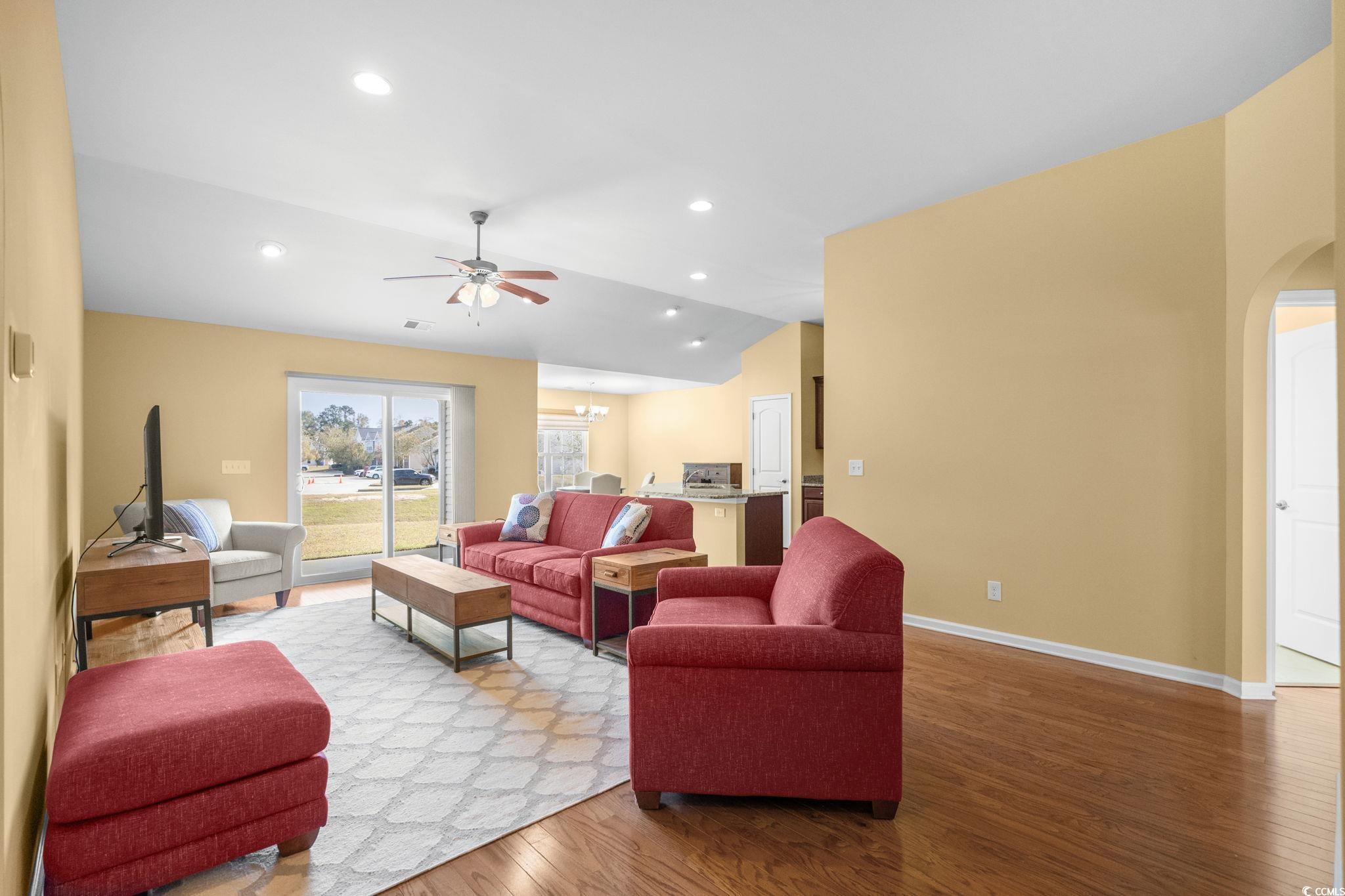 Welcome to this inviting home in the desirable Midtown Village community of Conway, offering a perfect blend of charm, comfort, and convenience. The exterior features a large front porch with columns and brick accents that create a warm, welcoming first impression. Inside, this former model home built by Bill Clark has been used only a handful of times and has been well-maintained. The interior showcases a warm color palette, wood flooring, tall ceilings, and elegant arched openings that enhance the sense of space and flow throughout the main living areas. The kitchen is designed for both function and style, offering abundant cabinet and counter space, granite countertops, a breakfast bar, and a pantry. It opens seamlessly to the dining area and living room, where a vaulted ceiling and plenty of natural light create an airy, comfortable atmosphere. From the common areas, enjoy views of the backyard, complete with a serene water feature and visits from local birds and ducks. The back patio is perfect for grilling, relaxing, and taking in the scenery. The primary bedroom is a true retreat, featuring a tray ceiling, walk-in closet, and a private bathroom with split vanities and a spacious walk-in shower. Each bedroom and the living room are equipped with ceiling fans for added comfort. Midtown Village offers a welcoming community environment with sidewalks and a pool for residents to enjoy. The HOA includes lawn mowing and internet, allowing for a lower-maintenance lifestyle. HVAC replaced in 2025. You surely will find yourself easily and frequently enjoying Conways shopping, restaurants, historic downtown, and Riverwalk! Rest easy knowing you are only a short drive from medical centers, doctors offices, pharmacies, banks, post offices, and grocery stores. Square footage is approximate and not guaranteed. The buyer is responsible for verification.