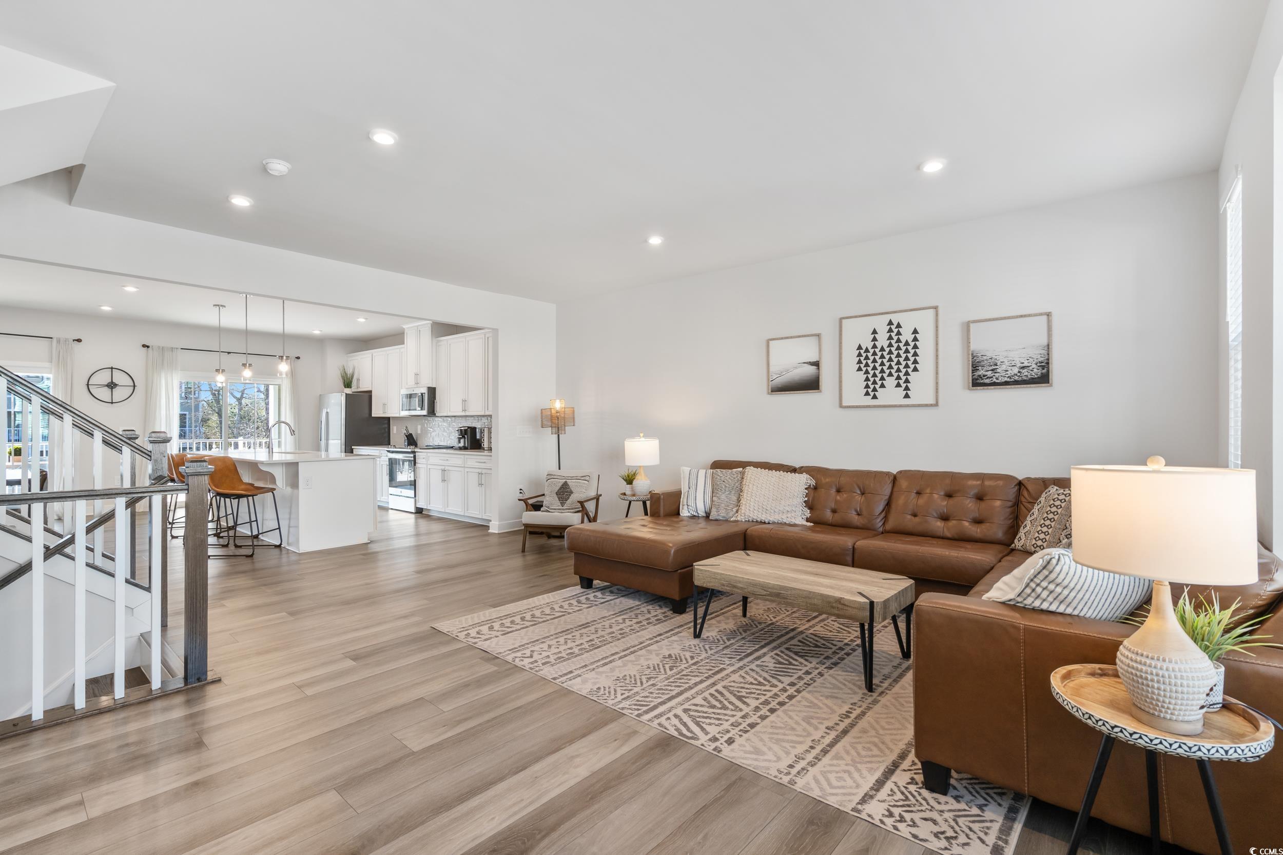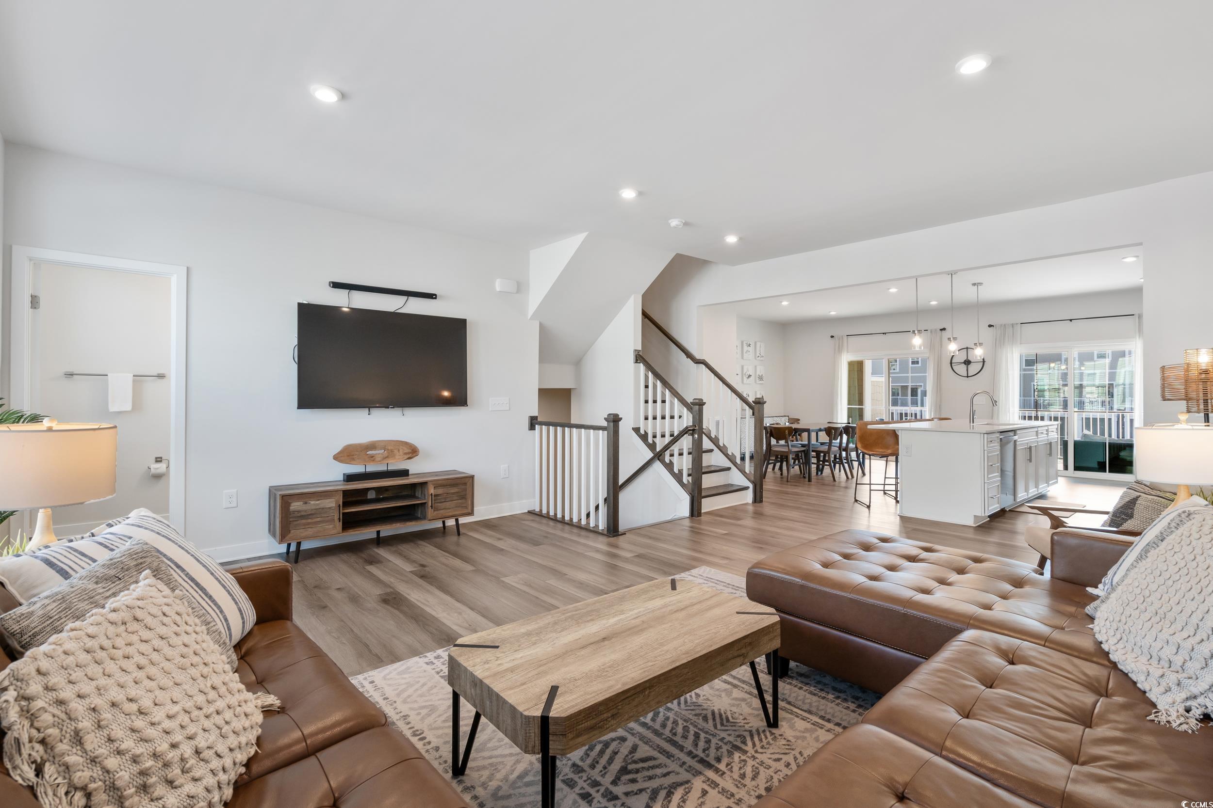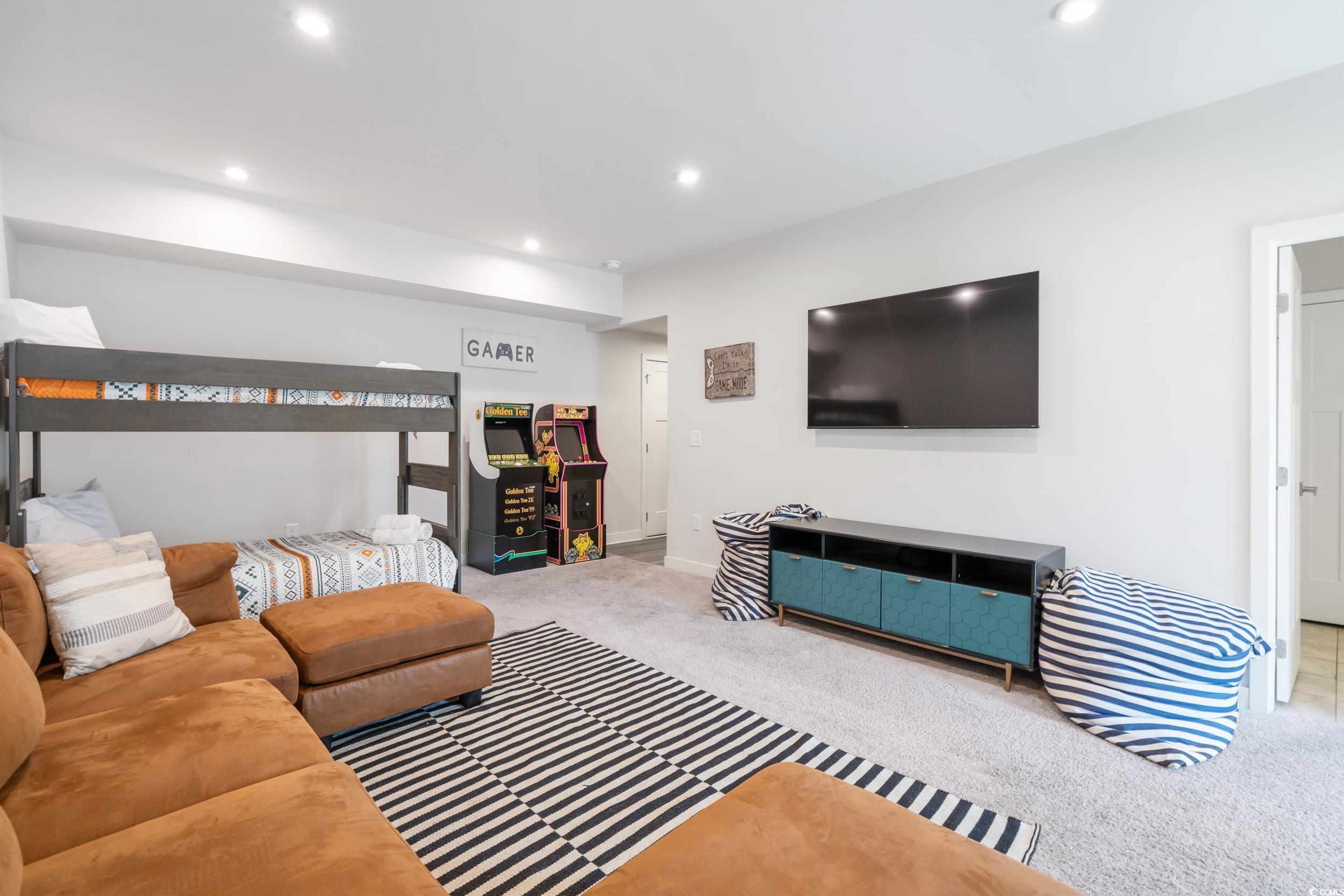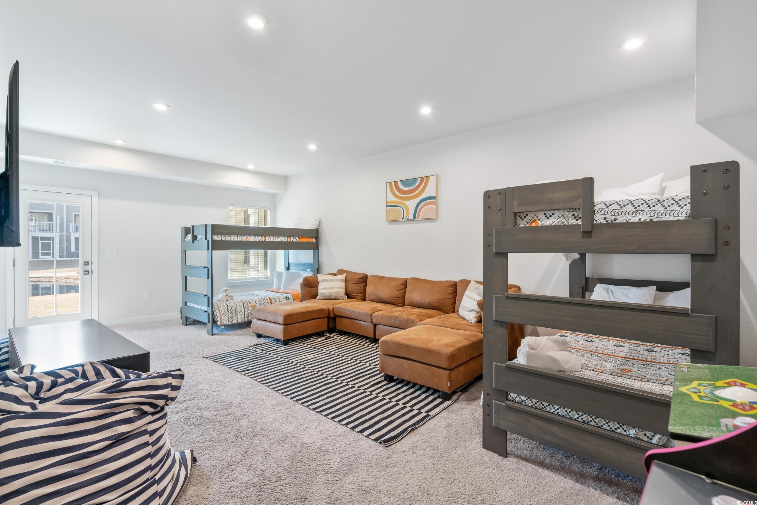 Welcome to Dye Estates Townhomes, a prestigious gated community situated in North Myrtle Beach's Barefoot Resort. This 4-bedroom, 3.5-bathroom townhome-style condo, complete with a bonus room, is ideal for a primary or second home. It's fully furnished with stylish decor, so just bring your suitcase and golf clubs! The condo sits right next to Dye Golf Course, providing golf lovers easy access to their sport. Picture yourself riding your personal golf cart to the course in minutes. Inside, the unit offers over 2600 heated square feet of comfortable living space. The main area features an open floor plan that merges the living room, kitchen, and dining space, perfect for gatherings, with a convenient half bath. The kitchen showcases modern white cabinets, stainless steel appliances, and an elegant tile backsplash. Adjacent to the kitchen is an oversized balcony with serene pond views. The top floor houses the primary suite, two additional bedrooms, a full bathroom with dual vanity sinks, a tiled tub/shower combination, and a laundry room with a full-sized washer and dryer. The primary suite boasts a spacious walk-in closet and an en suite bathroom with dual vanity sinks, a tiled shower, and a separate water closet. The lower level has a bonus room that can serve as a fourth bedroom, equipped with two twin bunk beds, a lounge area, arcade games, and a full bathroom with a tiled shower. This room also opens to a screened-in porch leading to outdoor space with pond views. Additionally, the unit includes a 2-car garage, perfect for storing a golf cart, and a driveway for extra parking. As a resident of Barefoot Resort, you'll have access to a stunning oceanfront cabana and a swimming pool located nearby. This condo is perfectly situated to explore North Myrtle Beachs best attractions including the beautiful Atlantic Ocean, Barefoot Landing, shopping, dining and entertainment. Short Term Rentals Welcome! Schedule your tour today!