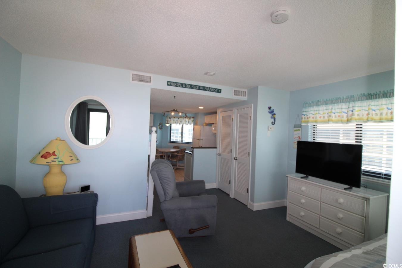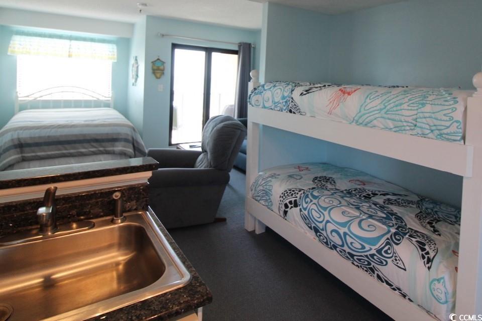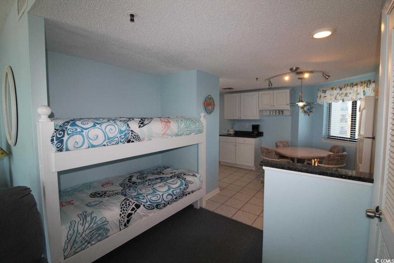 This Direct Oceanfront, end-unit studio at the Renaissance Tower is on the north side of the building. Enjoy the sunrise over the Atlantic Ocean & the cool sea breezes in the evening on the oceanfront balcony. Sleeping accommodations for the entire family, double bed, bunk beds and pull-out sleeper sofa. The kitchen has solid surface countertops, full size refrigerator, stove, microwave & dishwasher. Brand new hurricane rated sliding glass doors and windows. New water heater 2025. The Renaissance Tower is located in Myrtle Beach Resort, a 33-acre gated oceanfront community with many amenities including indoor & outdoor pools, lazy river, hot tubs, saunas, 24-hour security, tennis & pickleball courts, and playgrounds and an oceanfront bar & grill. This beach retreat is close to the airport, Myrtle Beach State Park and all the attractions that make for a great family vacation destination.