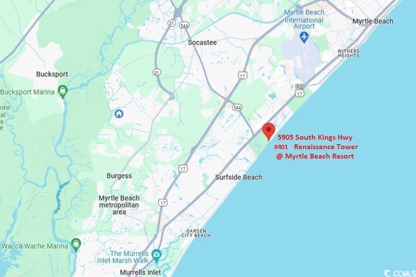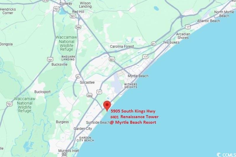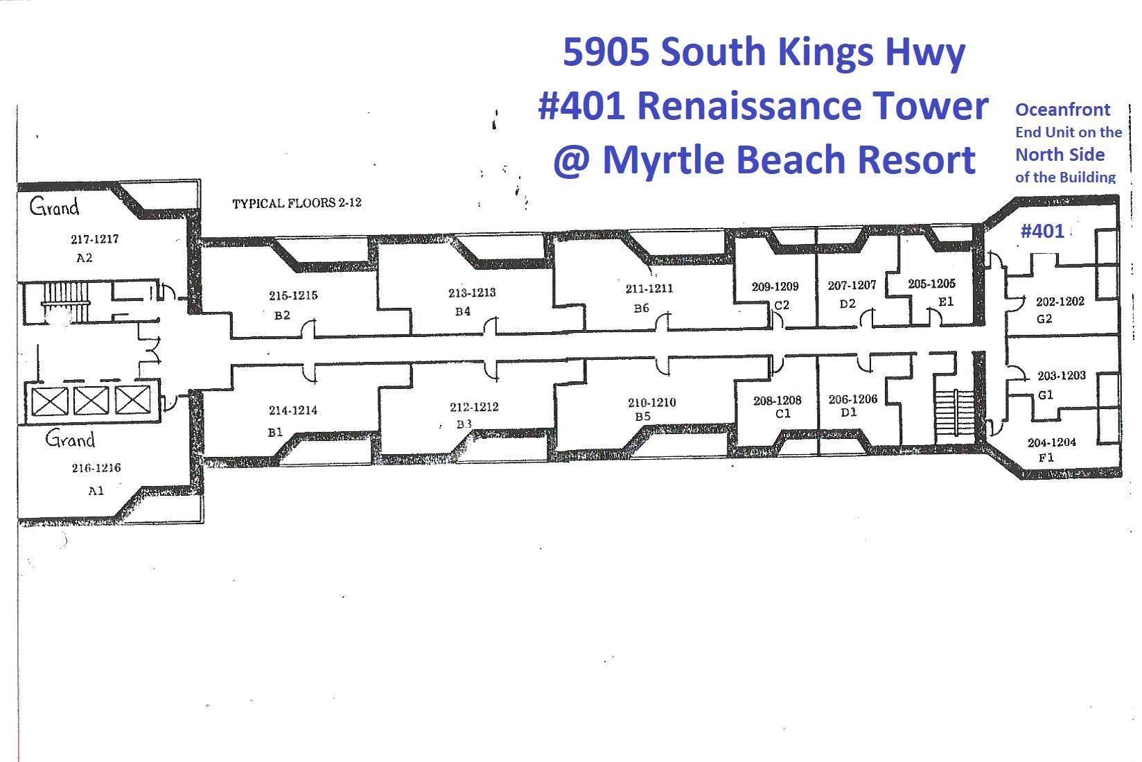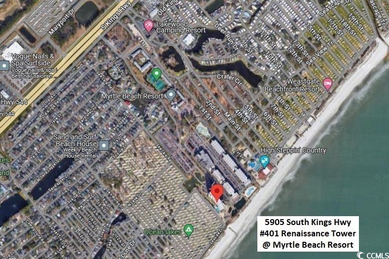 From SC Highway 17 Business (South Kings Highway) between the City of Myrtle Beach & the Town of Surfside Beach turn east to enter Myrtle Beach Resort at 5905 South Kings Highway. Drive to the security gate to get a parking pass for access. Drive toward the beach and follow the signs for the Renaissance Tower. Enter the building and take the elevator to the 4th floor. Direct oceanfront on the north side of the building. Unit #401. GPS 33.627327, -78.952427Courtesy of Re/max Southern Shores Gc - Cell: 843-450-8760