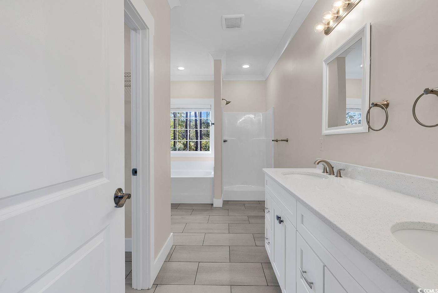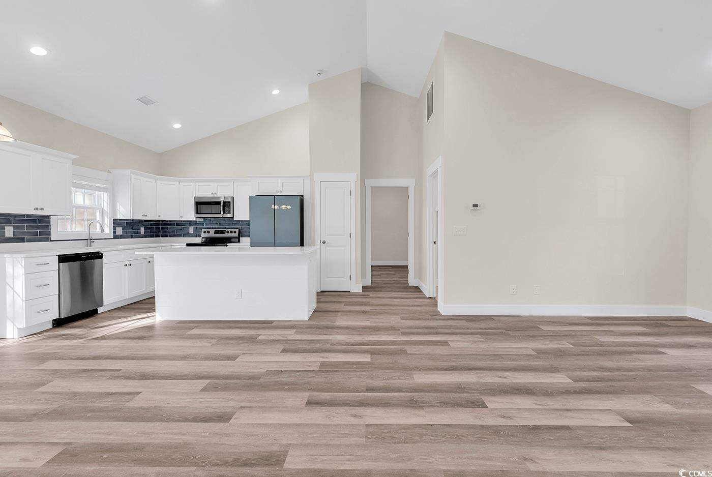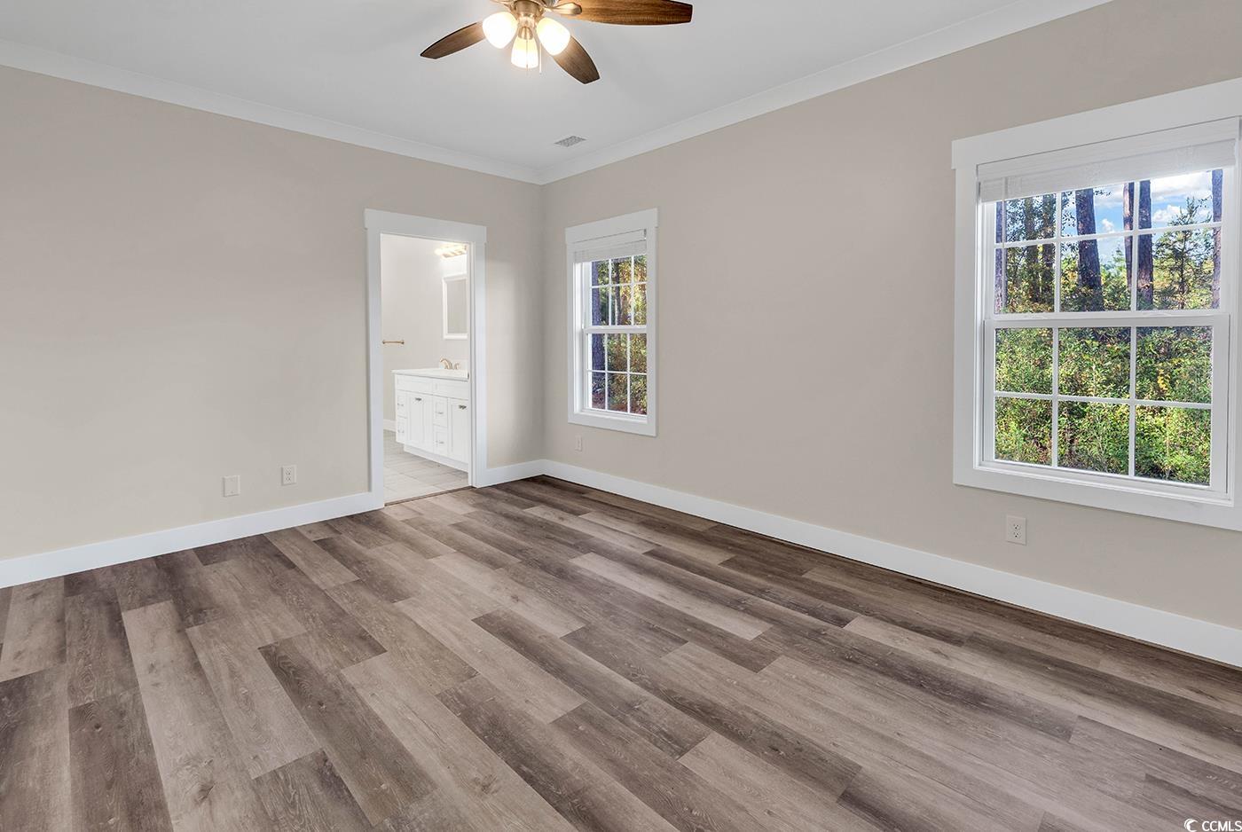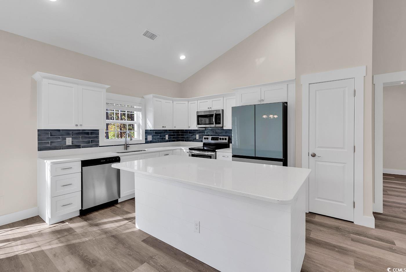 MOVE-IN READY!! Step into modern comfort on nearly three-quarters of an acre in this 2025-built Conway home. With 3 bedrooms, 2 baths, and 1,475 heated sq ft of thoughtfully designed living space, this home balances style and functionality seamlessly. Enjoy stainless steel appliances, granite countertops, white cabinetry, and a striking tile backsplash. LVP and tile flooring extend to throughout the home. Master bedroom offers crown molding, while the master bath includes double vanity, shower and garden tub and large walk-in closet. A back patio with sliding doors, with by mature trees for privacy and natural beauty. This home offers all the upgrades, gutters, blinds throughout, and irrigation system. Exterior is vertical vinyl siding with stone accents. Enjoy the freedom of no HOA, a large lot, and proximity to Conway schools, parks, shopping, and healthcare. Experience the perfect blend of convenience and modern livingschedule your showing today.
