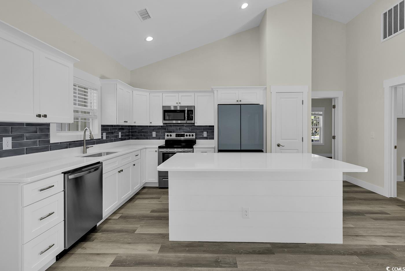 MOVE_IN READY!! Live where modern design meets outdoor space in this 2025-built Conway home. Set on a generous .53-acre lot, this 3-bedroom, 2-bath home offers 1,475 heated sq ft of bright, open living with everything you need for comfort and style. Enjoy stainless steel appliances, granite countertops, white cabinetry, and a stylish tile backsplash. LVP and tile floors flow throughout the home. A back patio with sliding doors, surrounded by mature trees for privacy and natural charm. This home offers a side load garage for convenience and curb appeal. This home offers all the upgrades, gutters, blinds throughout, and irrigation system. Exterior is vertical vinyl siding with stone accents. No HOA, a large lot, and proximity to Conway schools, parks, shopping, and hospitals make this home as practical as it is beautiful. Dont waitbook your showing today and step inside your next home.