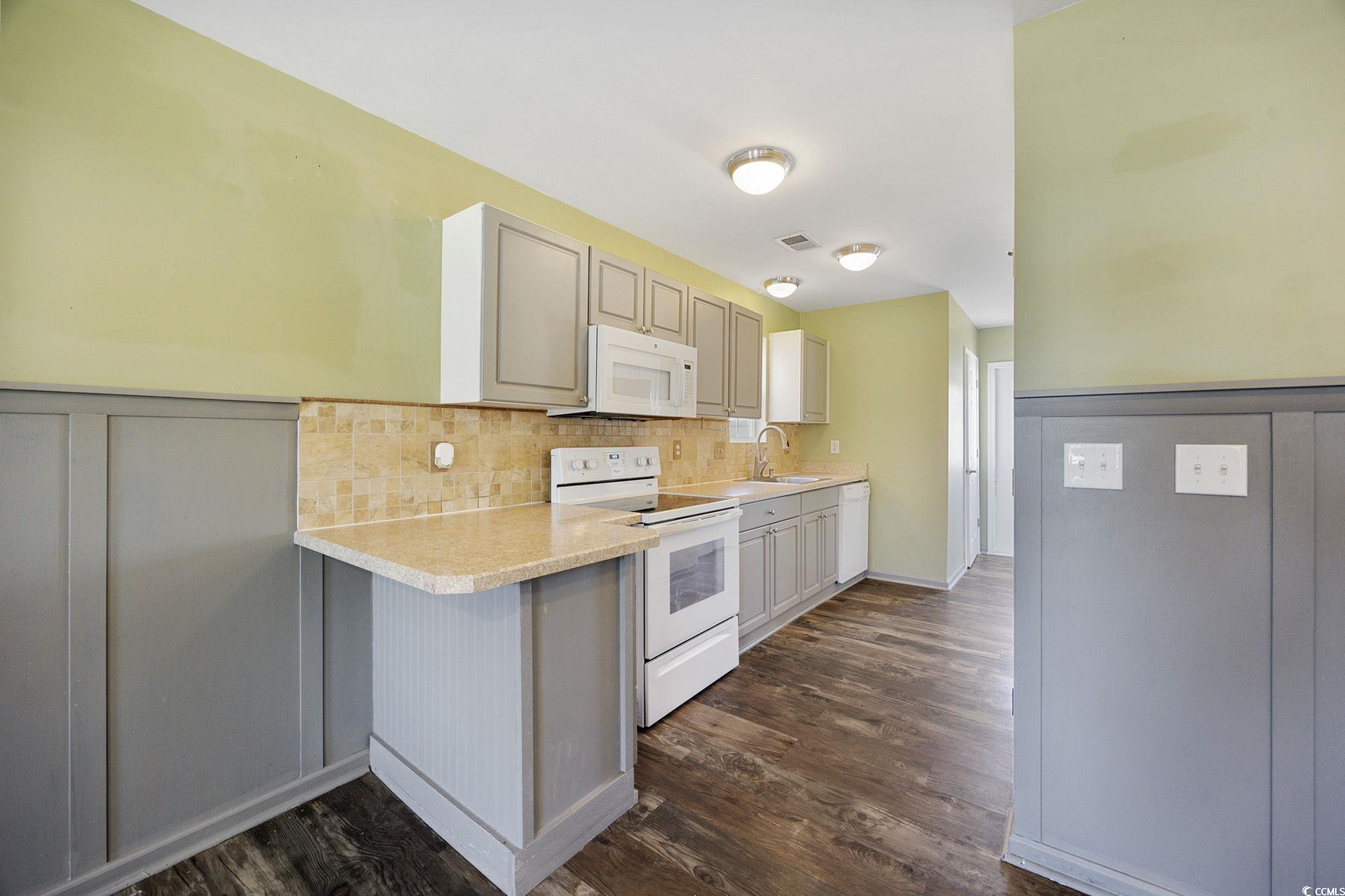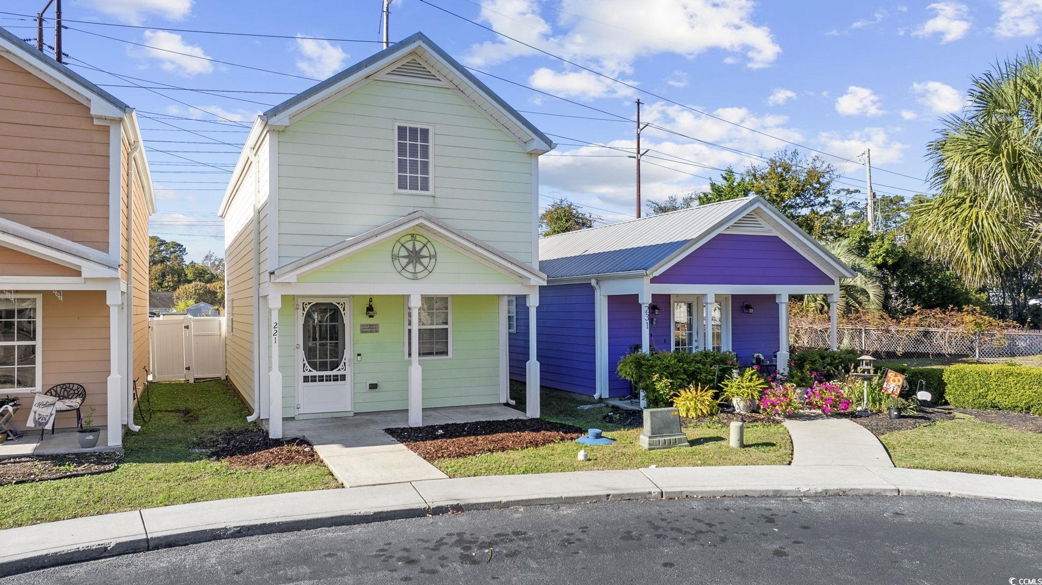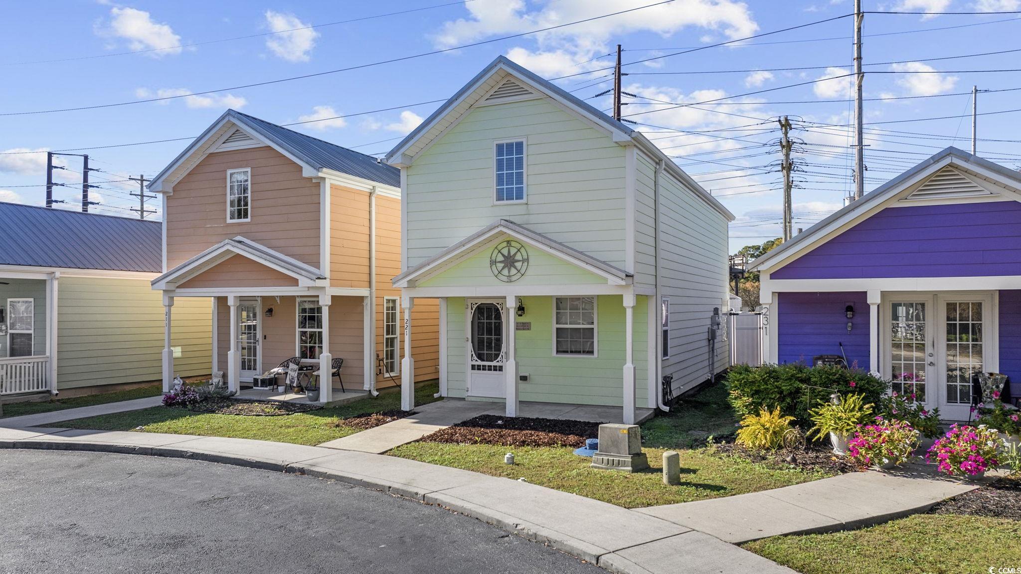 Welcome to coastal cottage living in the heart of the South Strand! This charming two-story home offers 2 bedrooms and 1 baths in the vibrant Cottages at The Addison community. Step inside to find a welcoming front porch, an inviting open floor plan filled with natural light, and beautiful wainscoting in the living room for a touch of coastal elegance. The home features upgraded ceiling fans, extra closet space upstairs, and low-maintenance finishes throughout. Enjoy your peaceful outdoor patio and fenced rear yard, perfect for relaxing or entertaining. Residents also have access to a community pool, and the HOA fees conveniently include water and sewer, basic cable, internet, trash service, lawn care, and common area landscaping. Located within an owner-allowed golf cart zone, you can easily cruise to the beach, grab dinner, or explore local favorites. Just minutes from Garden City Beach, Murrells Inlets dining and nightlife, shopping, and major highways, this home perfectly balances comfort, convenience, and laid-back coastal living.