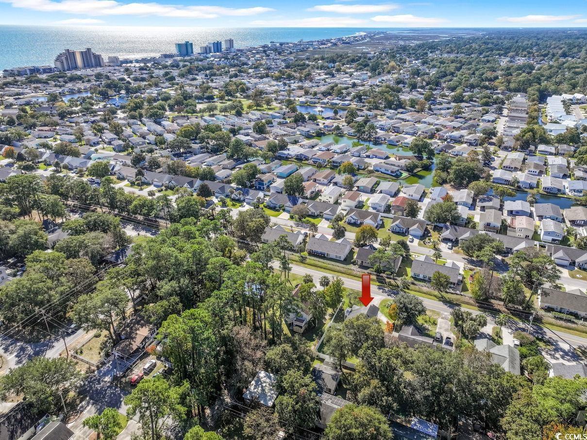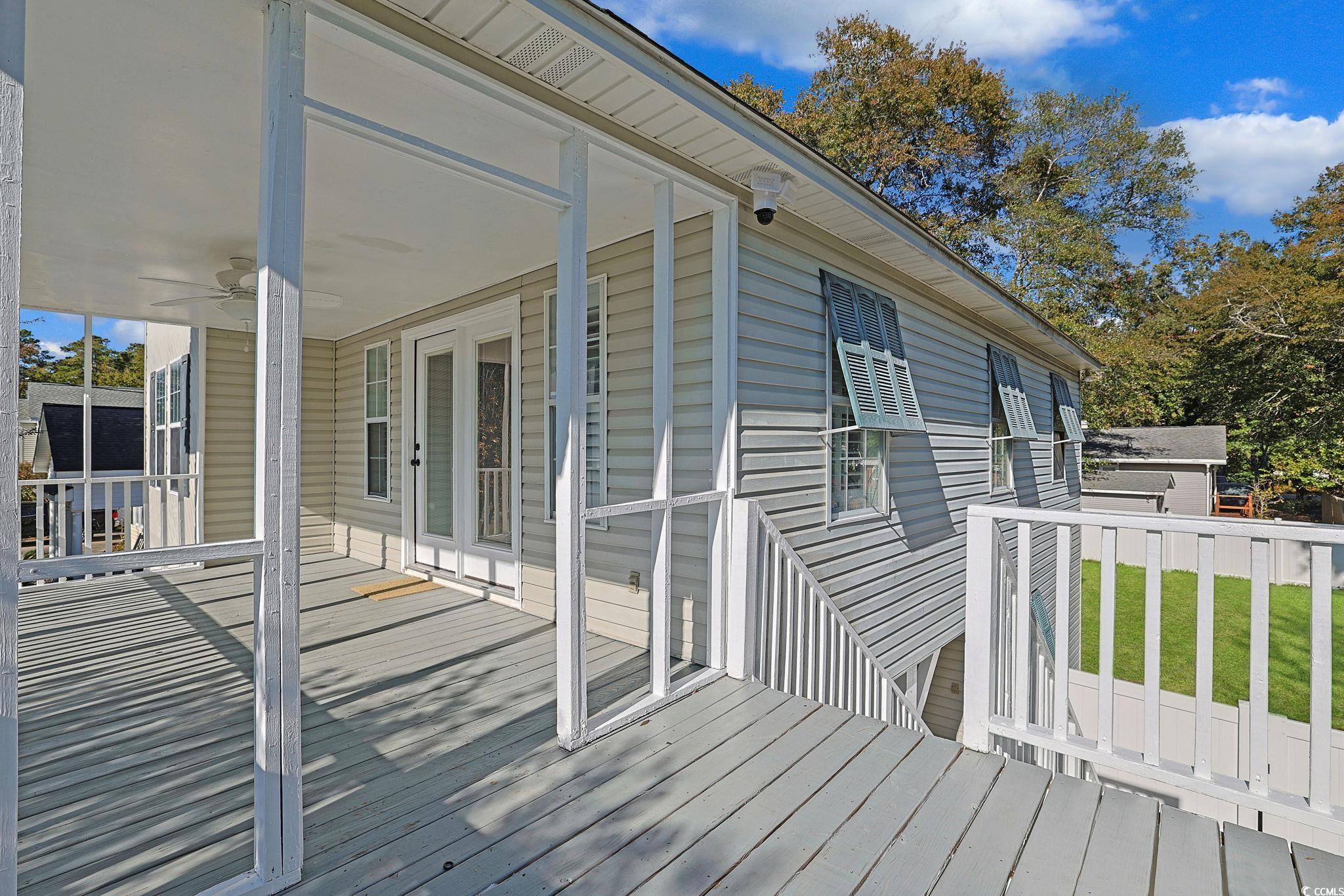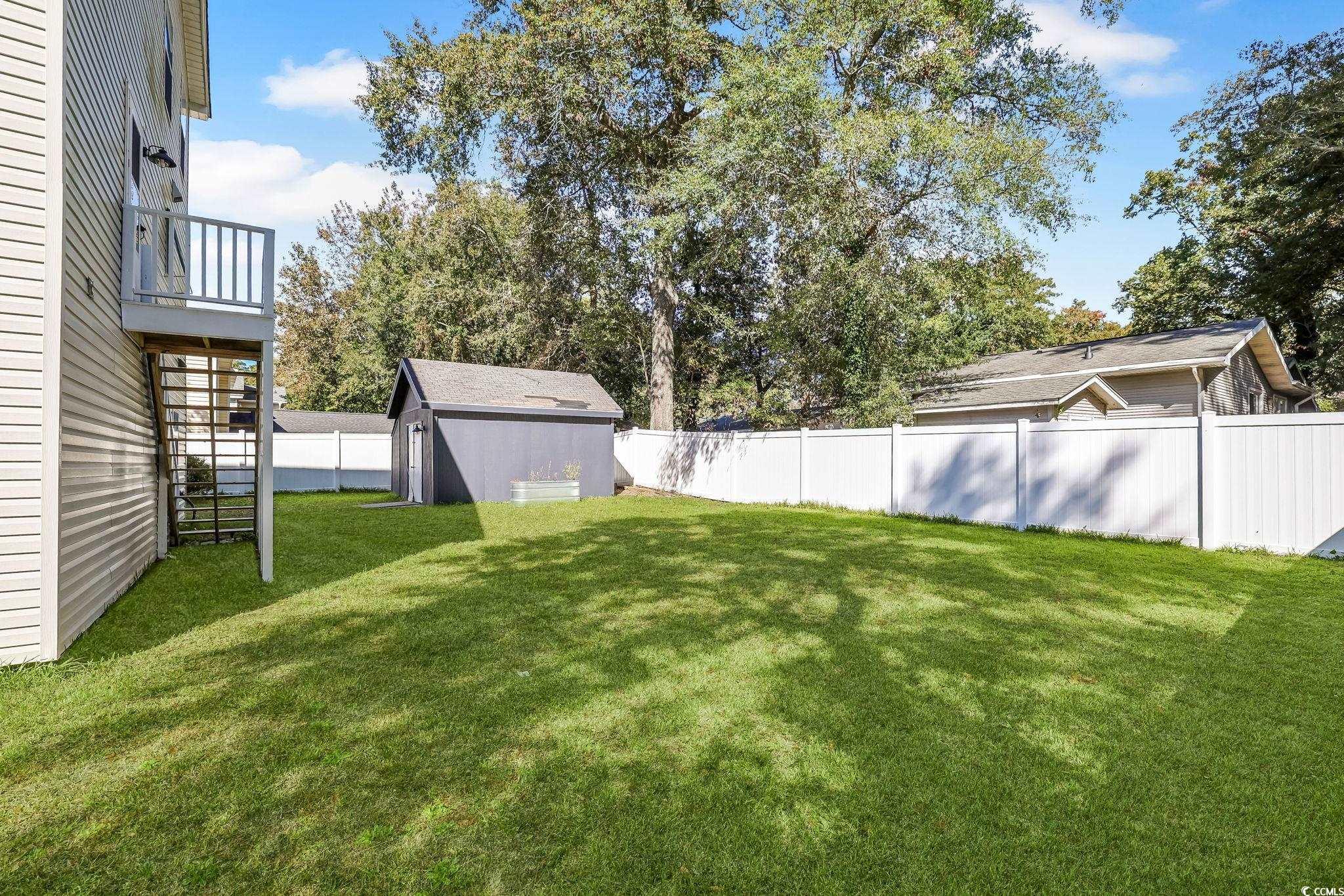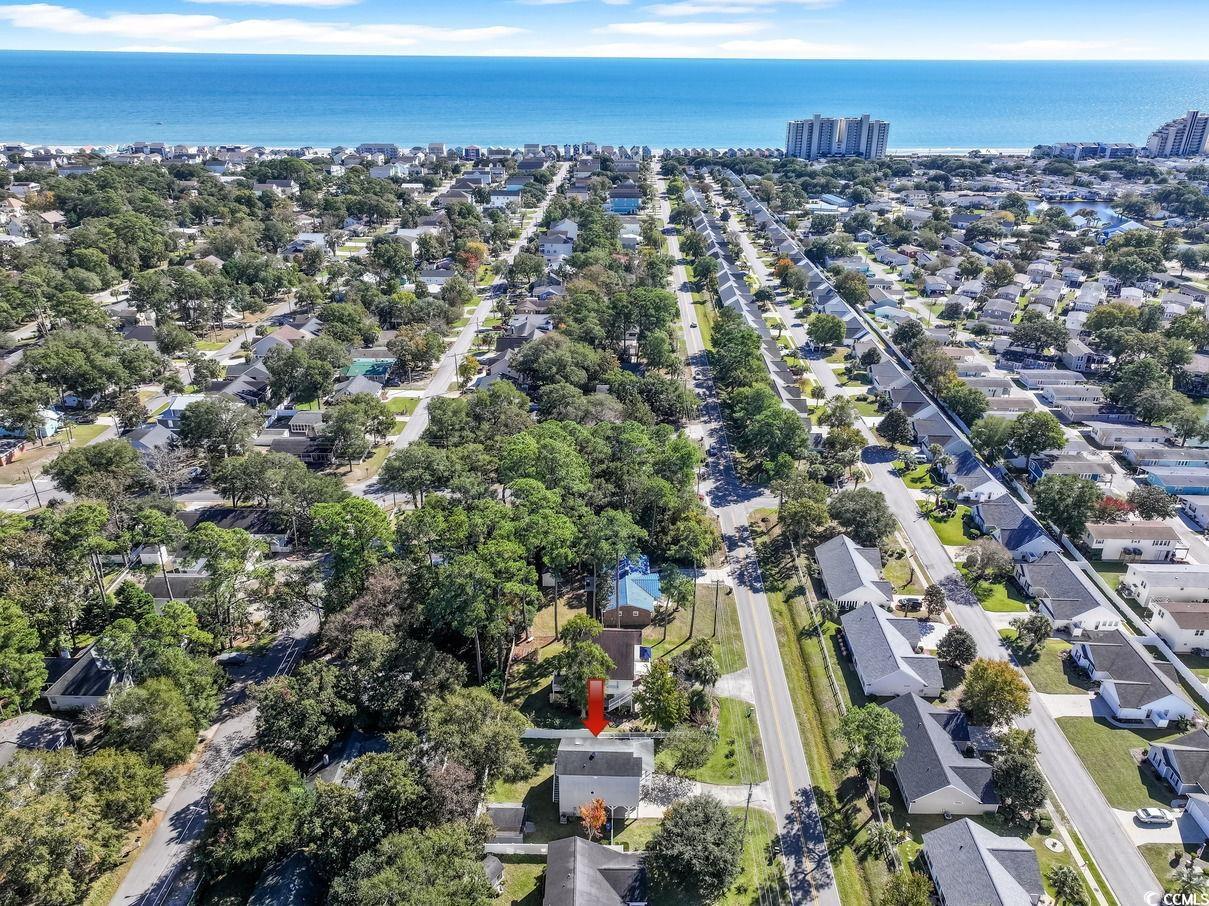 Presenting this vibrant 3 bedroom 2.5 bath raised beach home with an additional ground floor full suite that includes 1 bedroom, 1 full bath and is located within a half mile of the white sandy beach and the sparkling Atlantic Ocean. This bright home has no HOA dues and offers a delightful front porch, hardwood, tile, & carpet flooring, plantation blinds, and a spacious living room with a vaulted ceiling & built-ins. The family-friendly kitchen includes a breakfast bar, a stainless steel range and refrigerator, a white dishwasher, ample cabinet & counter top spaces, a large kitchen pantry/laundry closet, and an inviting dining area. The stylish primary bedroom features ceiling fan, a walk-in closet, private access to the primary bath hosting a vanity with a single sink, a comfort station, and a deluxe step-in shower. Venture up to the third level and you will find three additional comfortable bedrooms, and a full guest bath. This piece of paradise is finished with a detached shed plumbed for a washer/dryer connection, and under house parking. This home affords you easy access to the beach and golfing along with all of the other activities and happenings in Myrtle Beach and the new Surfside Beach Entertainment District including fun eateries, award winning off-Broadway shows, public fishing piers, Marsh Walk, and intriguing shopping adventures along the Grand Strand. Conveniently located to your everyday needs, including grocery stores, banks, post offices, medical centers, doctors offices, and pharmacies. Check out our state of the art 3-D Virtual Tour. Some photos have been virtually staged.