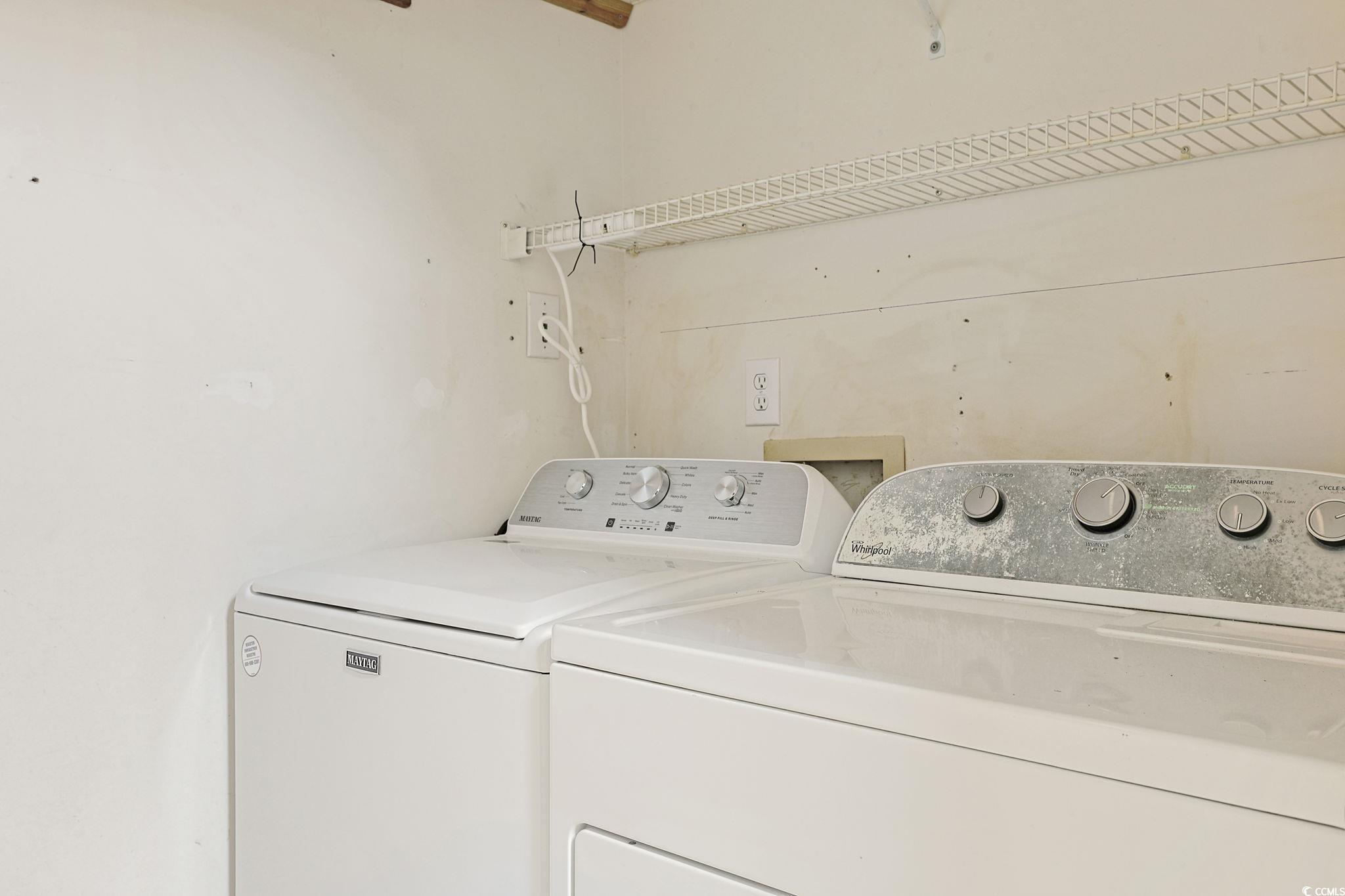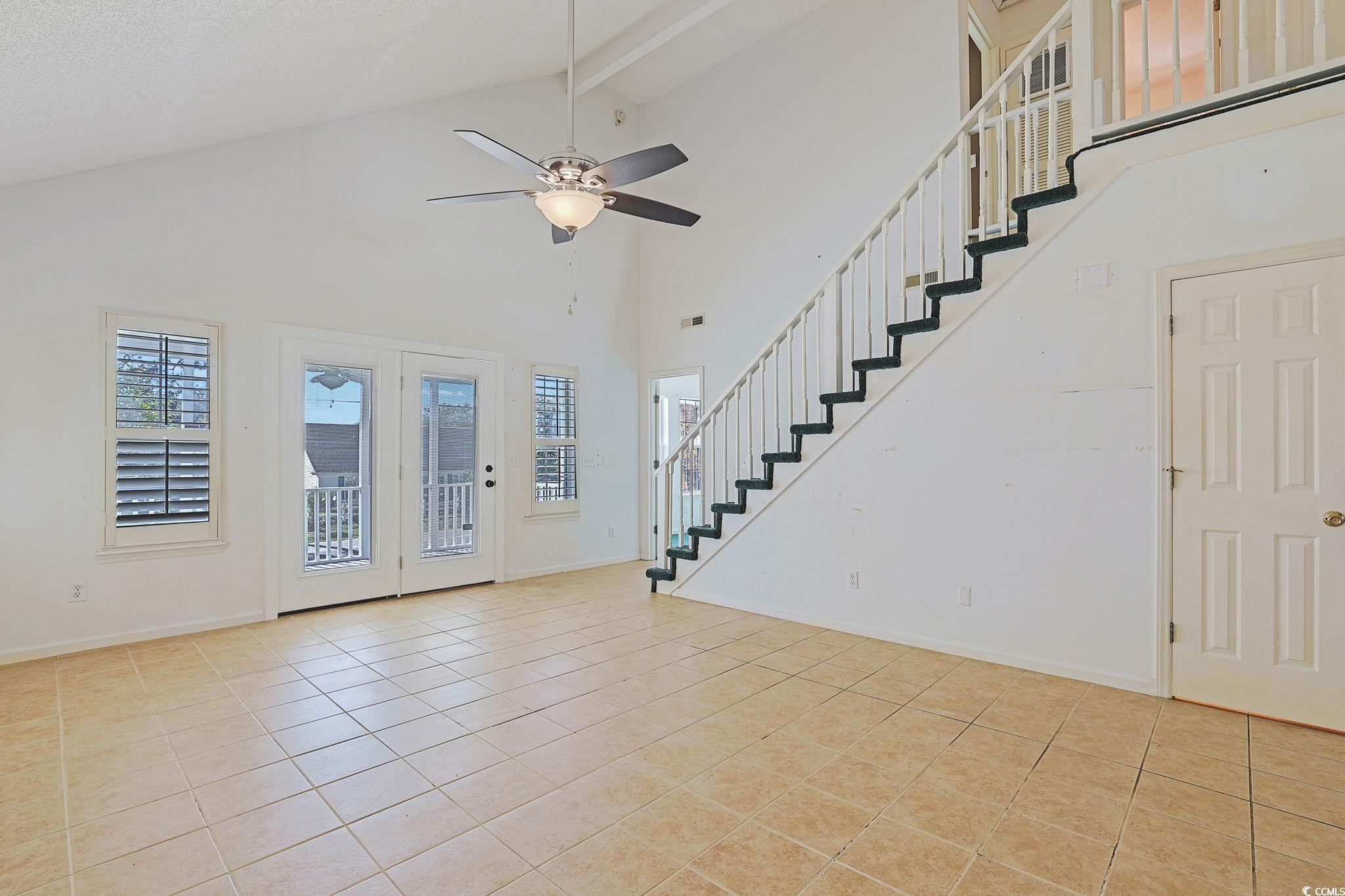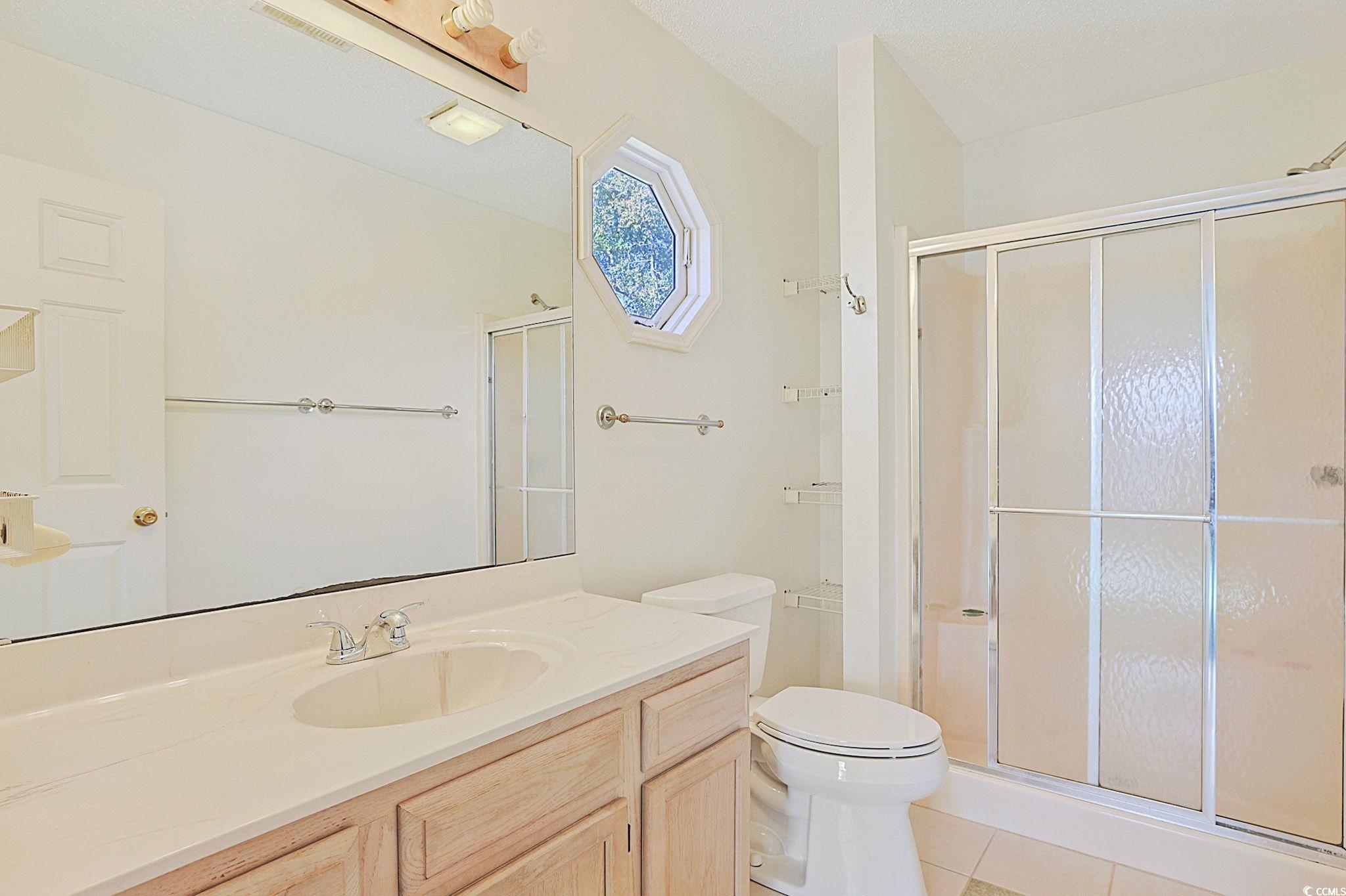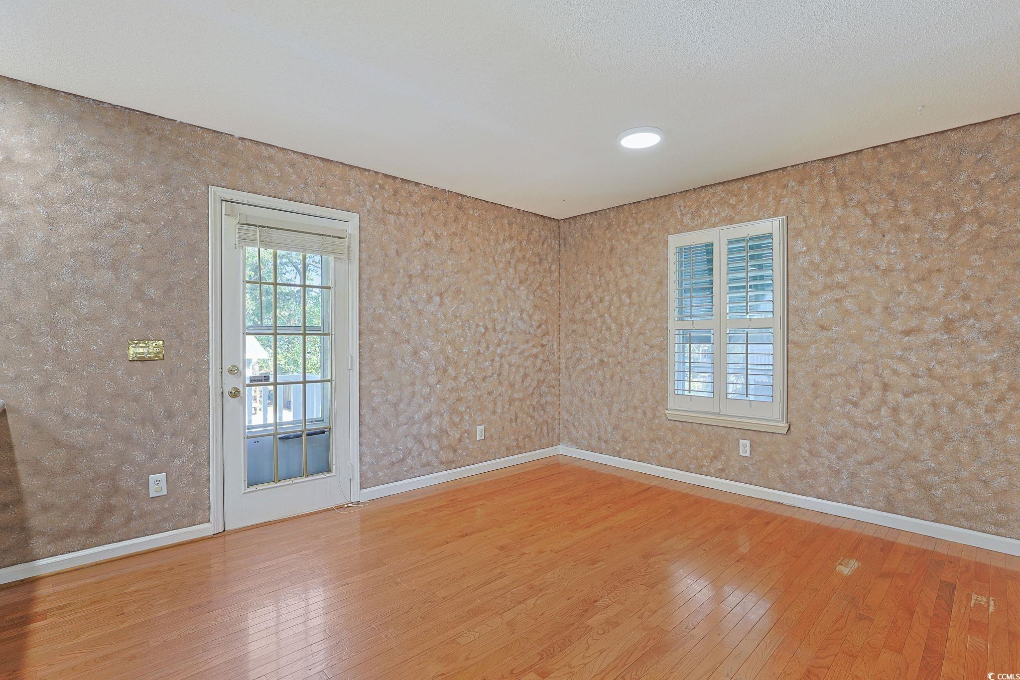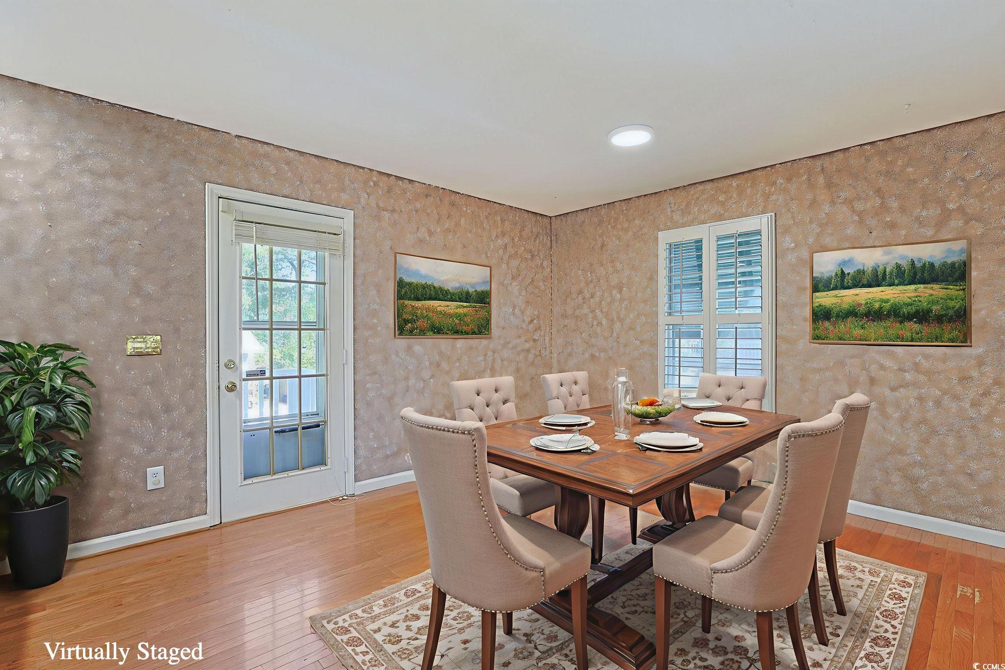 Presenting this vibrant 3 bedroom 2.5 bath raised beach home with an additional ground floor full suite that includes 1 bedroom, 1 full bath and is located within a half mile of the white sandy beach and the sparkling Atlantic Ocean. This bright home has no HOA dues and offers a delightful front porch, hardwood, tile, & carpet flooring, plantation blinds, and a spacious living room with a vaulted ceiling & built-ins. The family-friendly kitchen includes a breakfast bar, a stainless steel range and refrigerator, a white dishwasher, ample cabinet & counter top spaces, a large kitchen pantry/laundry closet, and an inviting dining area. The stylish primary bedroom features ceiling fan, a walk-in closet, private access to the primary bath hosting a vanity with a single sink, a comfort station, and a deluxe step-in shower. Venture up to the third level and you will find three additional comfortable bedrooms, and a full guest bath. This piece of paradise is finished with a detached shed plumbed for a washer/dryer connection, and under house parking. This home affords you easy access to the beach and golfing along with all of the other activities and happenings in Myrtle Beach and the new Surfside Beach Entertainment District including fun eateries, award winning off-Broadway shows, public fishing piers, Marsh Walk, and intriguing shopping adventures along the Grand Strand. Conveniently located to your everyday needs, including grocery stores, banks, post offices, medical centers, doctors offices, and pharmacies. Check out our state of the art 3-D Virtual Tour. Some photos have been virtually staged.