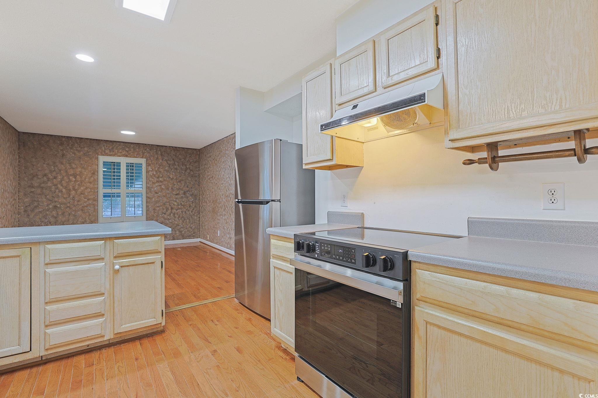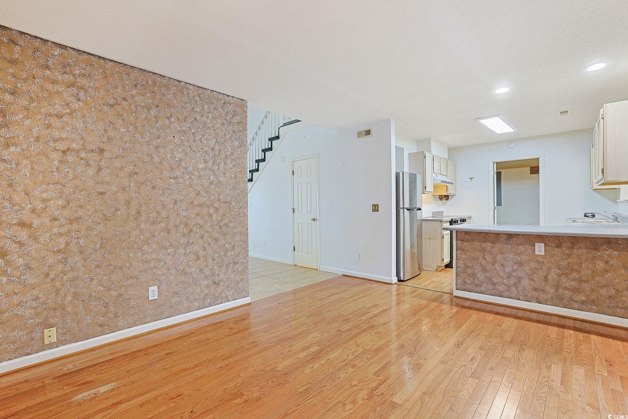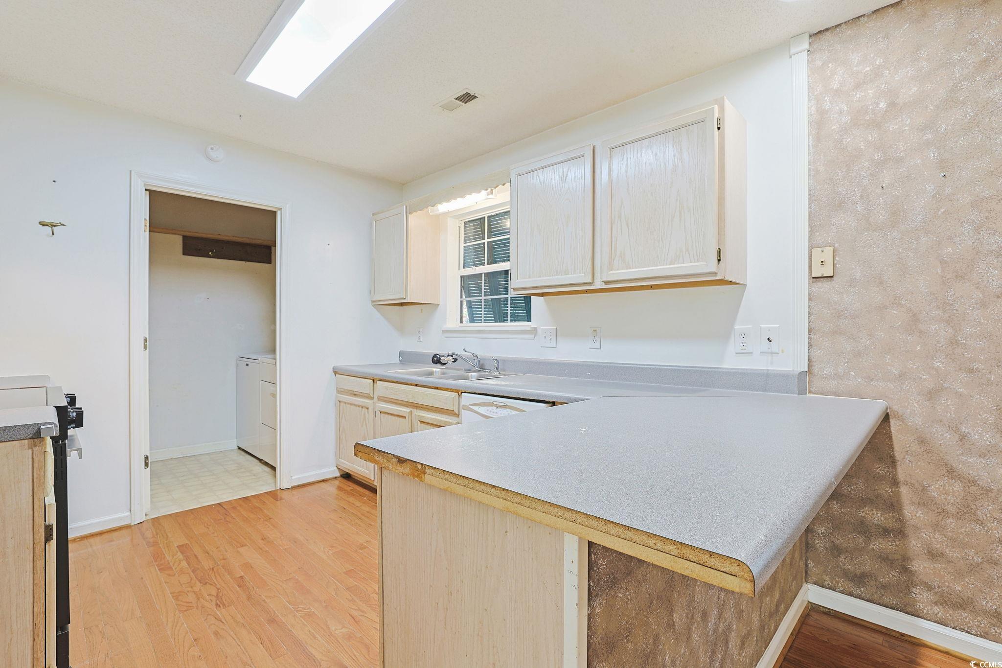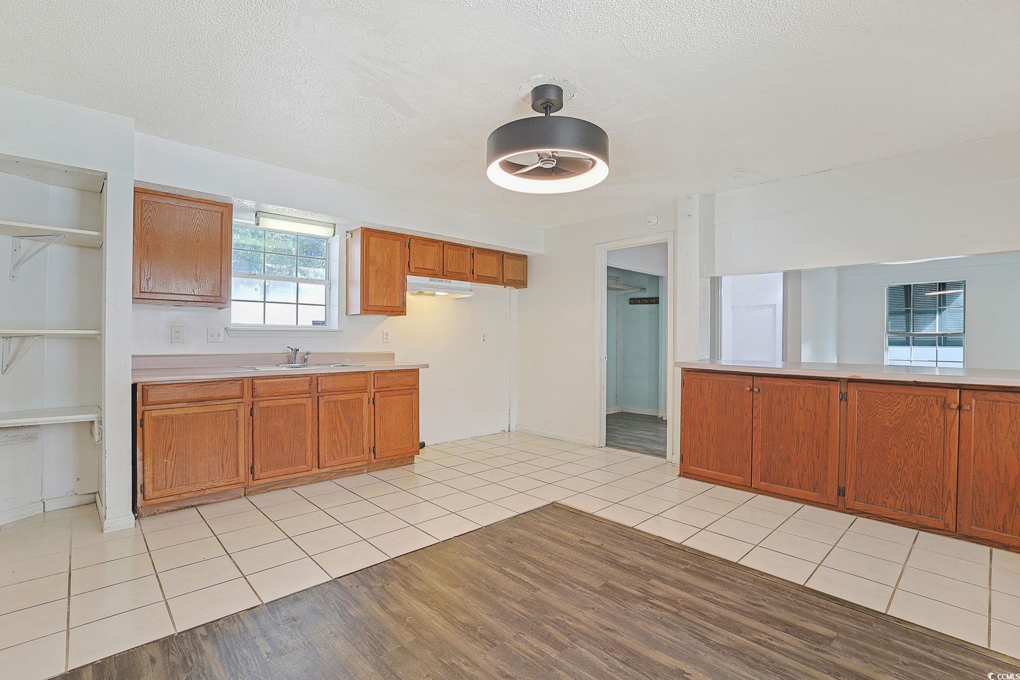 Presenting this vibrant 3 bedroom 2.5 bath raised beach home with an additional ground floor full suite that includes 1 bedroom, 1 full bath and is located within a half mile of the white sandy beach and the sparkling Atlantic Ocean. This bright home has no HOA dues and offers a delightful front porch, hardwood, tile, & carpet flooring, plantation blinds, and a spacious living room with a vaulted ceiling & built-ins. The family-friendly kitchen includes a breakfast bar, a stainless steel range and refrigerator, a white dishwasher, ample cabinet & counter top spaces, a large kitchen pantry/laundry closet, and an inviting dining area. The stylish primary bedroom features ceiling fan, a walk-in closet, private access to the primary bath hosting a vanity with a single sink, a comfort station, and a deluxe step-in shower. Venture up to the third level and you will find three additional comfortable bedrooms, and a full guest bath. This piece of paradise is finished with a detached shed plumbed for a washer/dryer connection, and under house parking. This home affords you easy access to the beach and golfing along with all of the other activities and happenings in Myrtle Beach and the new Surfside Beach Entertainment District including fun eateries, award winning off-Broadway shows, public fishing piers, Marsh Walk, and intriguing shopping adventures along the Grand Strand. Conveniently located to your everyday needs, including grocery stores, banks, post offices, medical centers, doctors offices, and pharmacies. Check out our state of the art 3-D Virtual Tour. Some photos have been virtually staged.