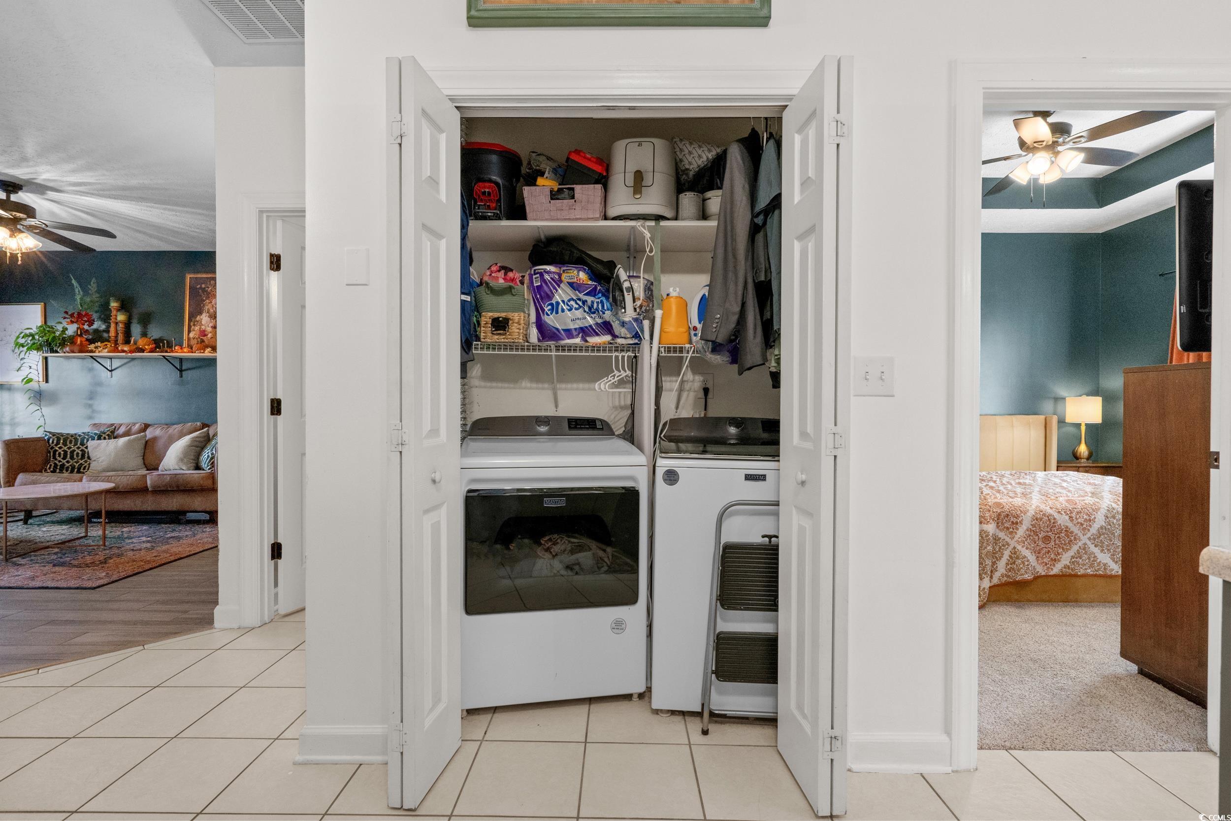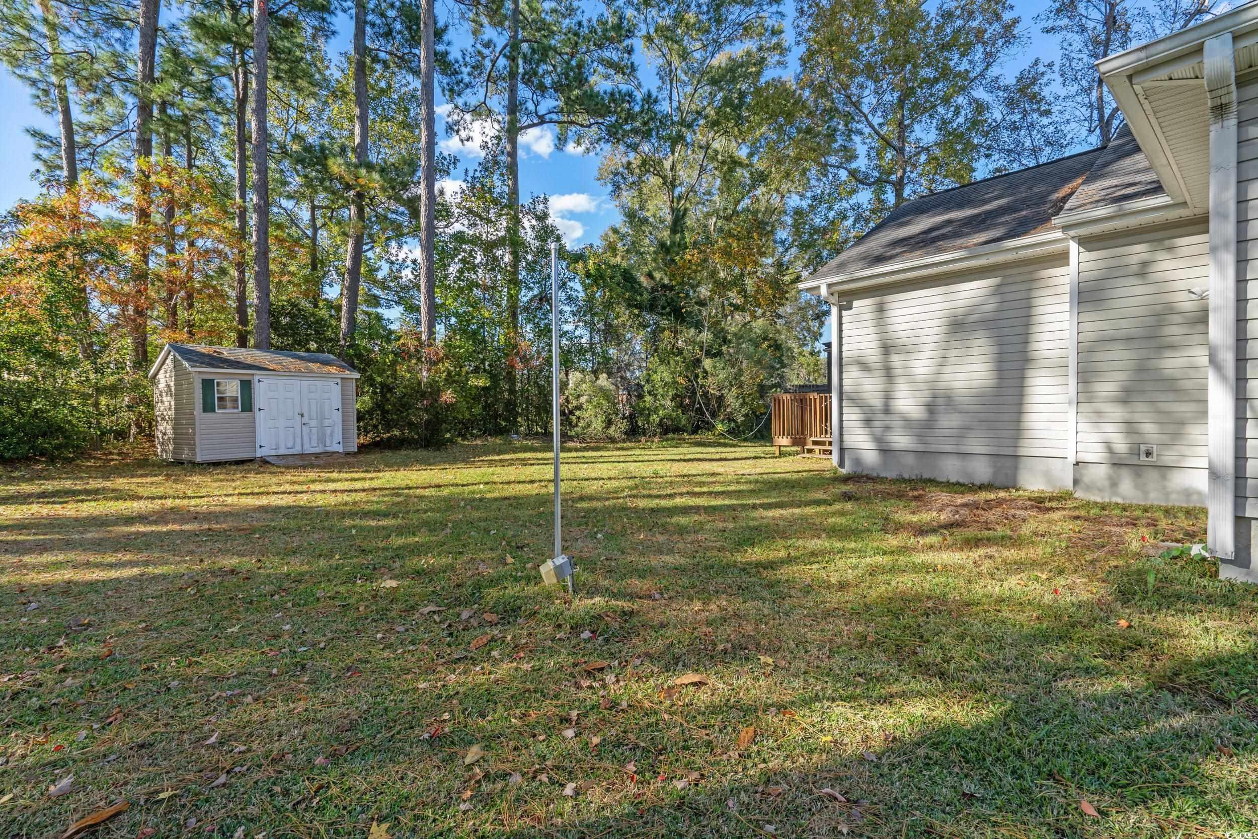 Bring your buyers to see this charming 3-bedroom, 2-bath home located on a cul-de-sac in the desirable Stonebridge subdivision! This lovely property offers a split-bedroom floor plan with ceiling fans in all bedrooms, the dining room, and the living room. The kitchen features tile flooring that continues through the bathrooms, and the living room boasts new wood-look tile flooring, giving the home a fresh, modern touch. Additional updates include a new stove August 2024 and a new HVAC compressor installed July 2025. The spacious, wooded backyard is perfect for entertaining family and friends. An outdoor storage shed conveys with the home, and the attached 11x23 one-car garage offers built-in wood shelving for extra storage. Enjoy the convenience of being close to Market Common, fine dining, shopping, and just minutes from the beach all with NO HOA fees!