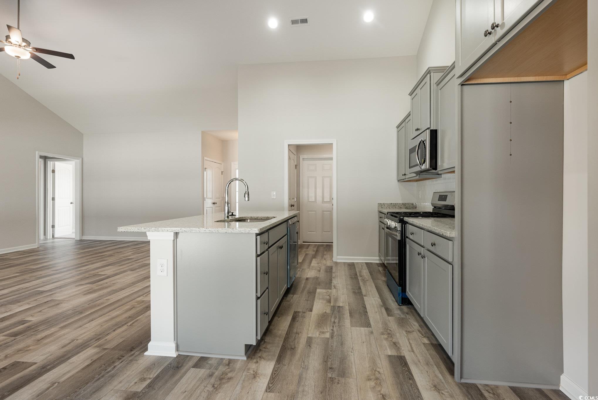 Quick Move In! Welcome to Rivertown Row North, the most anticipated new development in the heart of Conway. Enjoy the comfort of Natural Gas heat, cooking & tankless hot water in this single level 1535 sq ft Kokomo model with 3 bedrooms and 2 full Baths, and attached rear storage shed. This split bedroom floor plan on a Corner lot features a rear Master suite, vaulted great room ceilings, Granite counter tops, subway tile backsplash, and a kitchen island w/ seating. The Living area, baths, kitchen and Master bedroom have waterproof luxury vinyl plank. There is also a Painted and trimmed 2-car garage featuring a steel-reinforced garage door with LiftMaster 3/4 HP chain-drive opener, built-in camera, and MyQ Wi-Fi connectivity for mobile operation, attached rear 10x8 exterior attached storage, Laundry room, pantry, Irrigation, covered front porch, rear covered porch and additional concrete patio to double your outdoor entertaining area. All homes in Rivertown Row North feature wider than average lots, open floor plans, Hardie Plank Exterior, 9' ceilings, painted garage interiors, fully cased windows, GAF high performance architectural shingles, 12"" roof overhang, Aristokraft painted Birch shaker cabinets, Rinnai tankless water heater, Frigidaire stainless appliances, Ion Gray Smart Thermostat, many other upgraded architectural details. The neighborhood features sidewalks, street lighting and a community pool with pavilion. Building lifestyles for over 40 years, we remain the premier home builder along the Grand Strand. Were proud to be the 2021, 2022, 2023, and 2024 winners of both WMBF News and The Sun News Best Home Builder awards, and the 2025 winner of The Sun News Best Home Builder. 2023, 2024, 2025, & 2026 winners of the Myrtle Beach Herald's Best Residential Real Estate Developer award, and 2024, 2025, & 2026 winners of The Horry Independents Best Residential Real Estate Developer and Best New Home Builder award. We began and remain in the Grand Strand, and we want you to experience the local pride we build today and every day in Horry and Georgetown Counties. Pics are from similar home and not actual pics of this house.