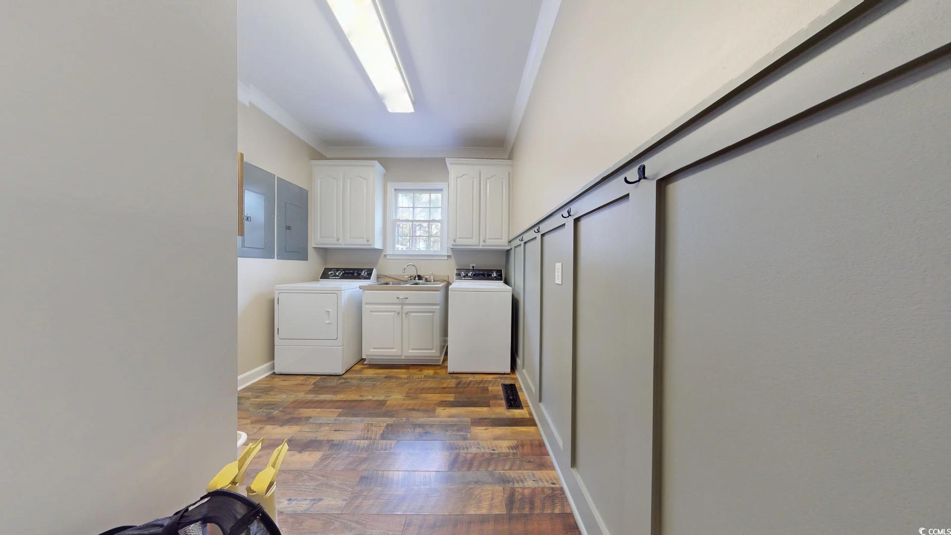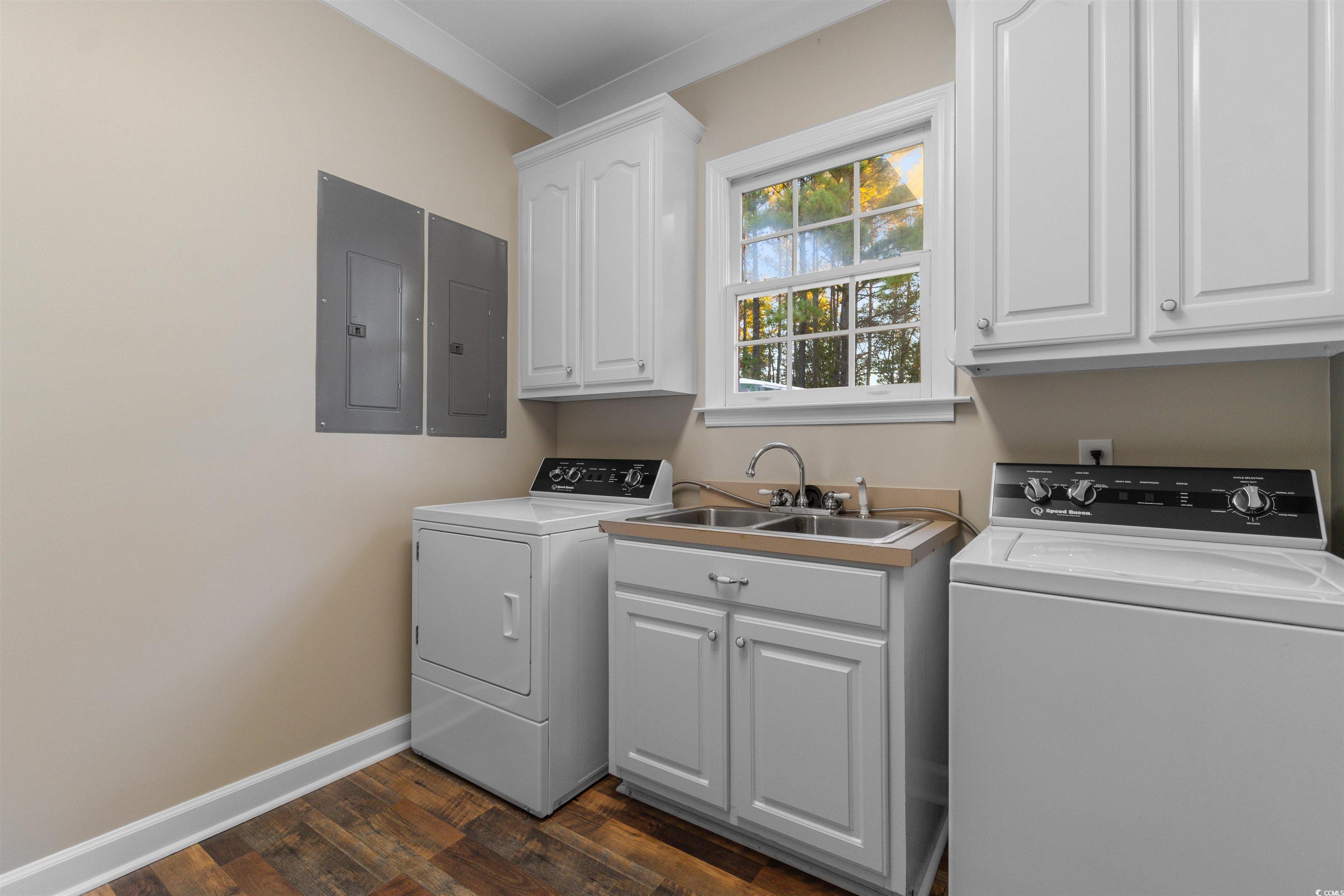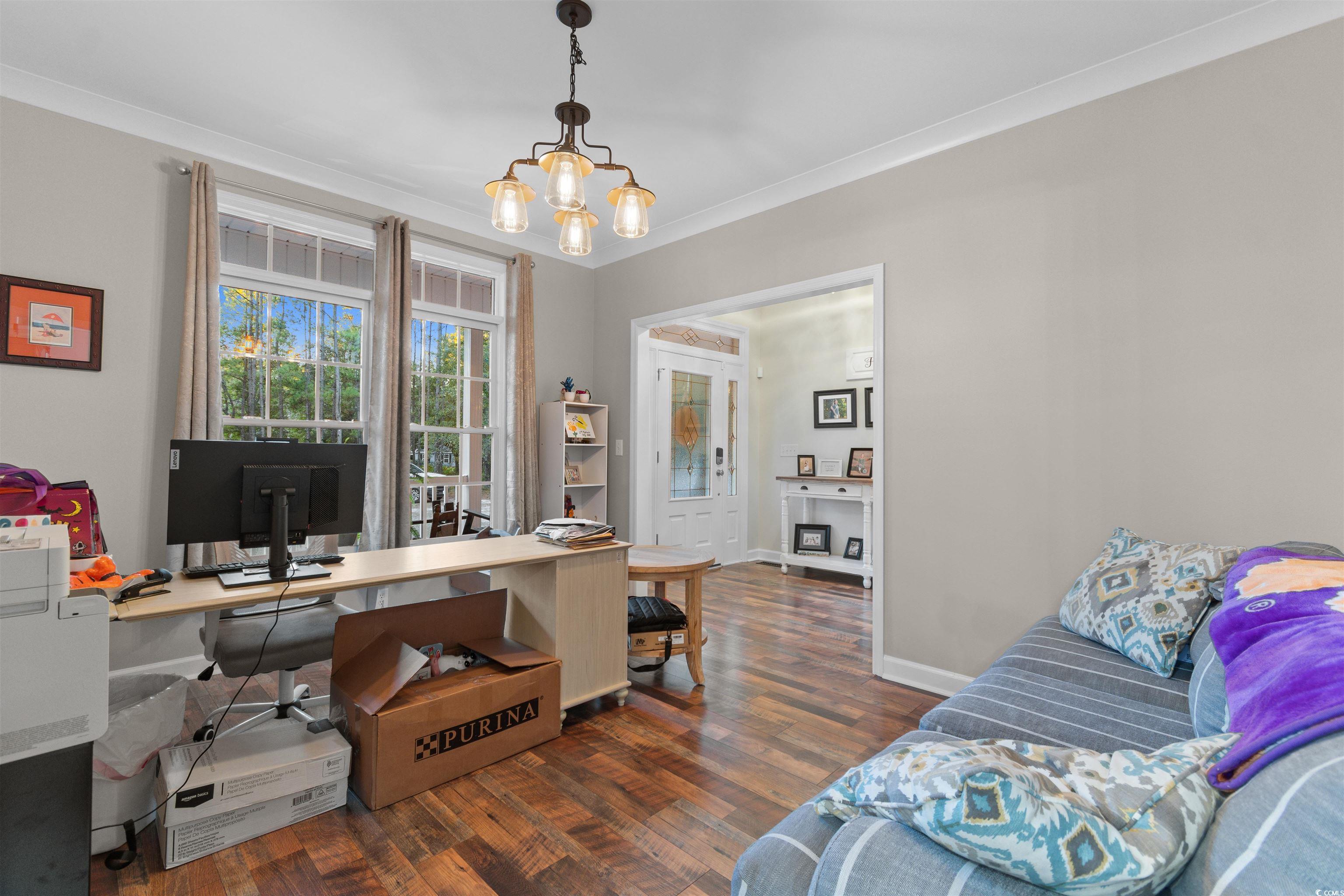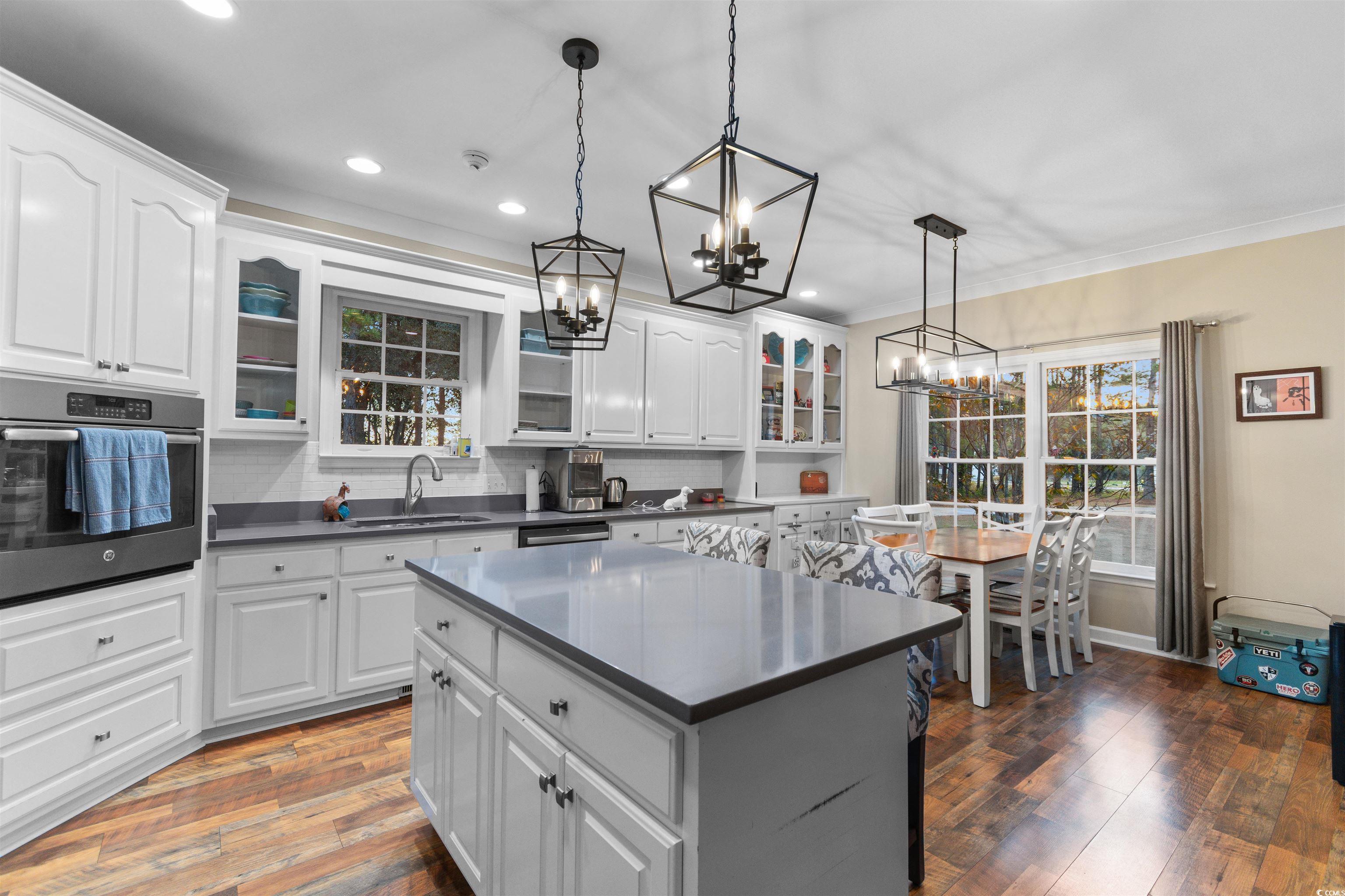 Welcome to this beautifully updated 4-bedroom, 2.5-bath home nestled on 3.84 peaceful acres in the desirable Aynor area. This property offers the perfect combination of comfort, privacy, and modern convenience, featuring an oversized 3-car garage with a workshop, a fenced yard, and extensive upgrades inside and out. Inside, youll immediately appreciate the craftsmanship and attention to detail. Every room has been freshly painted, complemented by LVP flooring that extends throughout the home for a clean, seamless look. Elegant crown molding and recessed lighting have been added to every room, including the bedrooms and bathrooms, creating a bright and cohesive style. The kitchen is both functional and inviting, featuring stainless steel appliances, solid surface countertops, a tile backsplash, garbage disposal, breakfast nook, and two spacious pantries for ample storage. Just off the kitchen is a formal dining room that can also serve as a home office or flex spaceideal for todays versatile lifestyles. The nearby laundry room includes wainscoting, built-in cabinetry, a utility sink, and convenient access to a half bath. The open living area provides a comfortable space for relaxing or entertaining. The living room features a shiplap accent wall and flows effortlessly into the Carolina room, which leads to the back porch overlooking the private, wooded property. The fenced yard provides a safe and spacious area for outdoor enjoyment, while the acreage beyond the fence invites exploration, gardening, or simply enjoying the peaceful surroundings. The primary suite is a private retreat, featuring two ceiling fans, a decorative accent wall, and barn doors leading into the completely remodeled en-suite bath. The primary bathroom showcases a double vanity, a freestanding soaking tub beneath an elegant chandelier, and a walk-in shower with dual shower heads. His-and-hers walk-in closets offer exceptional storage and organization. Each of the three guest bedrooms is generously sized, each featuring a large walk-in closet. The shared guest bath has been fully remodeled with updated fixtures and finishes, adding to the homes modern feel. Additional improvements include two new HVAC units, a tankless water heater, new gutters with gutter guards, a new dishwasher, and upgraded recessed lighting throughout. Multiple storage closets throughout the home provide ample organization, along with the oversized garage and workshop area. Surrounded by mature trees, this property offers both privacy and space while remaining close to shopping, and local amenities. With nearly four acres of land, theres plenty of room to expand, garden, or simply enjoy the tranquility of country living. Combining quality upgrades, thoughtful design, and a peaceful setting, this home is truly one of a kind. Schedule your private showing today and see all that this beautifully updated Aynor property has to offer. Not local? Check out the virtual tour to see this stunning home from the comfort of your current home!