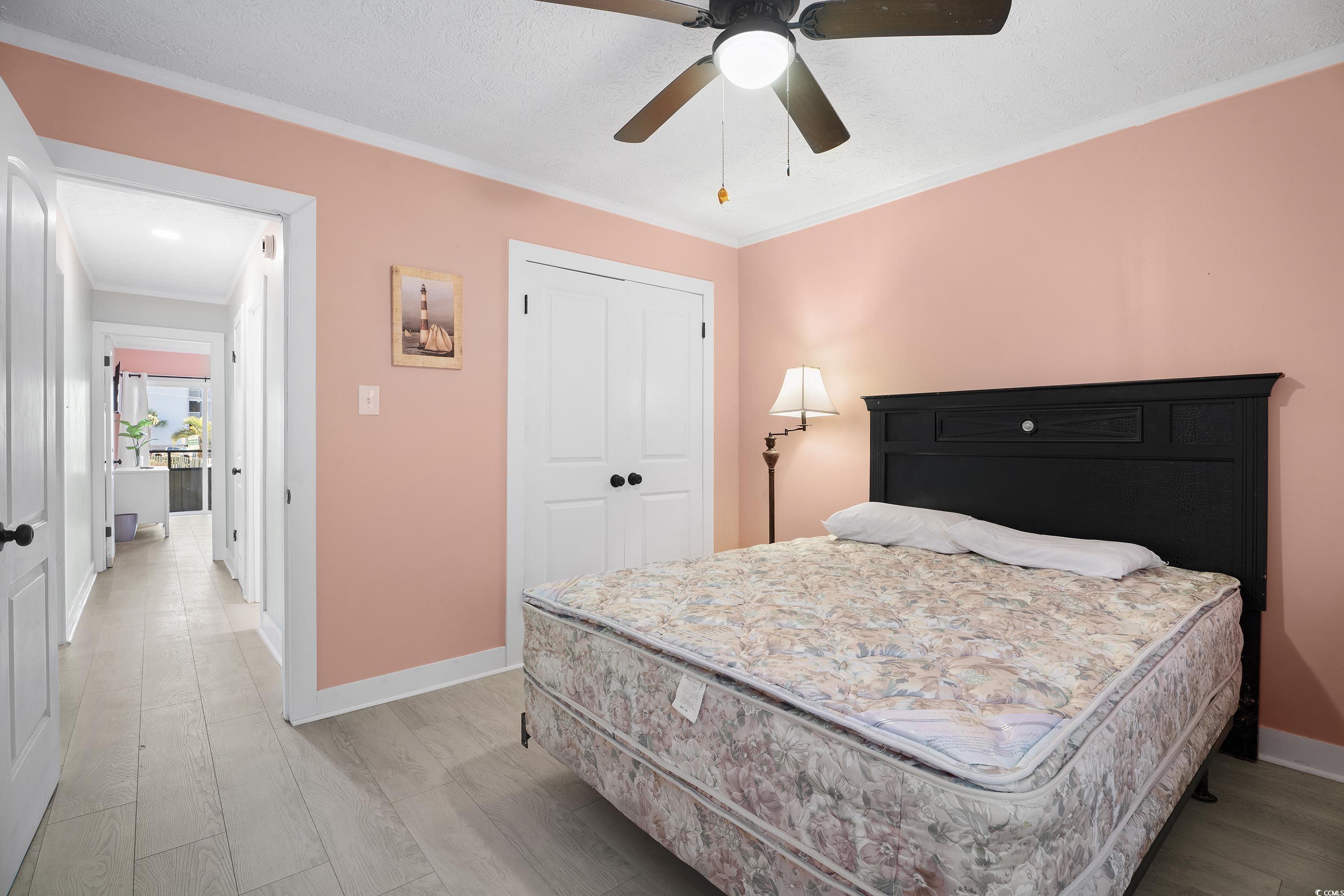 This easily accessible, first-floor condo offers convenience and modern upgrades. The unit features two bedrooms and two bathrooms, and has been fully renovated with fresh paint, new luxury vinyl flooring, and updated bathrooms. The bright living room opens directly onto a screened-in porch, providing a perfect spot to relax in the evenings and enjoy music from nearby Ocean Annie's. This property presents an excellent opportunity for either a full-time residence or an investment property. Located just a short walk from the beach and popular spot Ocean Annie's, Mariners Cove is a highly desirable community. Residents and guests can enjoy amenities such as a spacious outdoor pool, a sun deck, and a clubhouse. The community is conveniently situated near numerous bars and restaurants and is only a few minutes' drive from some of the best dining, shopping, golf, and entertainment options the Grand Strand has to offer. Both short- and long-term rentals are permitted.