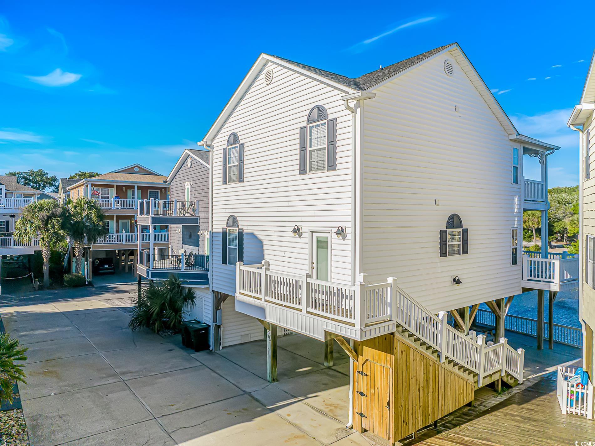 This LAKE FRONT 5 bedroom 3.5 bath raised beach house with amazing views of the lake, ocean, and campground has granite stainless steel appliances, crown molding, a great porch to sit and listen to the ocean or watch the world drive by on their golf carts while your drink your morning coffee or afternoon cocktails. This home is already setup for weekly beach vacationers and earns excellent rental income. Located in the private gated Ocean Lakes community featuring award winning amenities that focuses on being family-oriented. This home is being sold fully furnished! Call today to schedule your private showing. Make your dream of owning a house at the Beach come true today!!!!