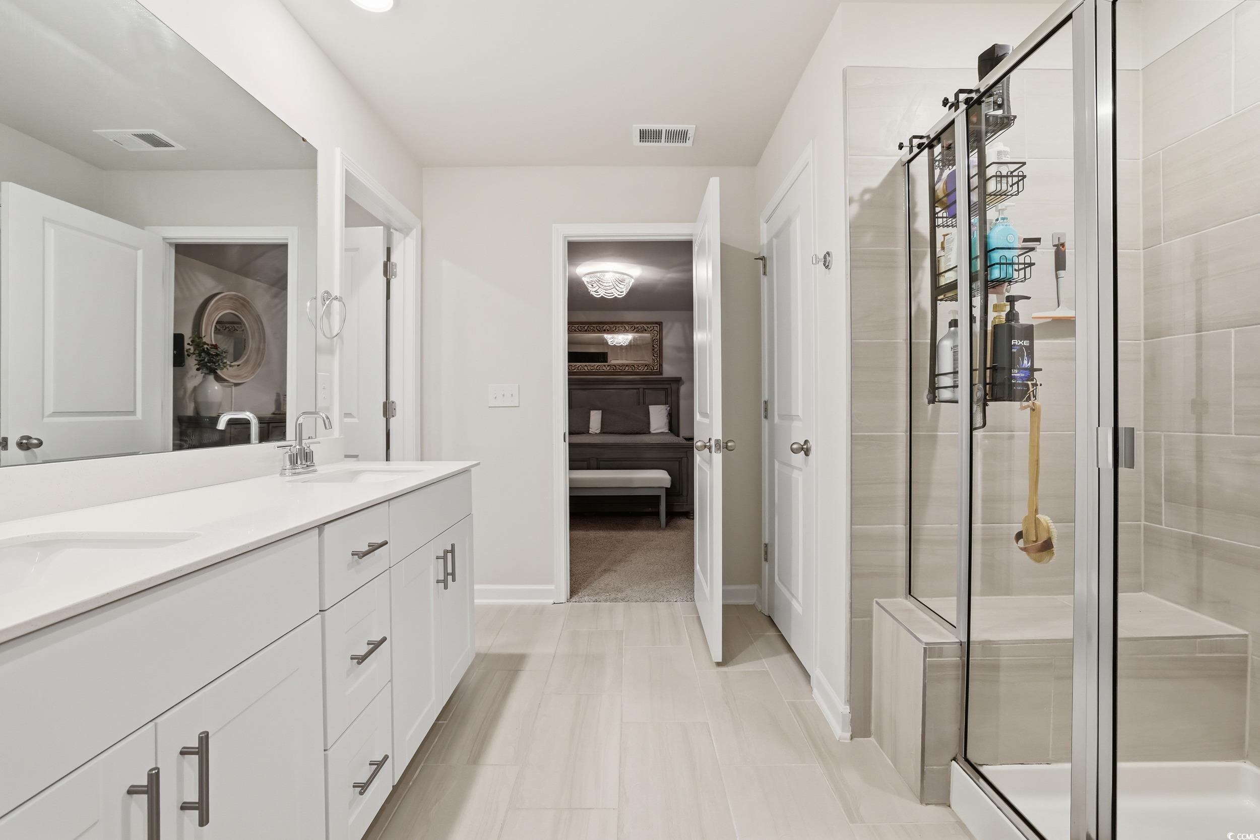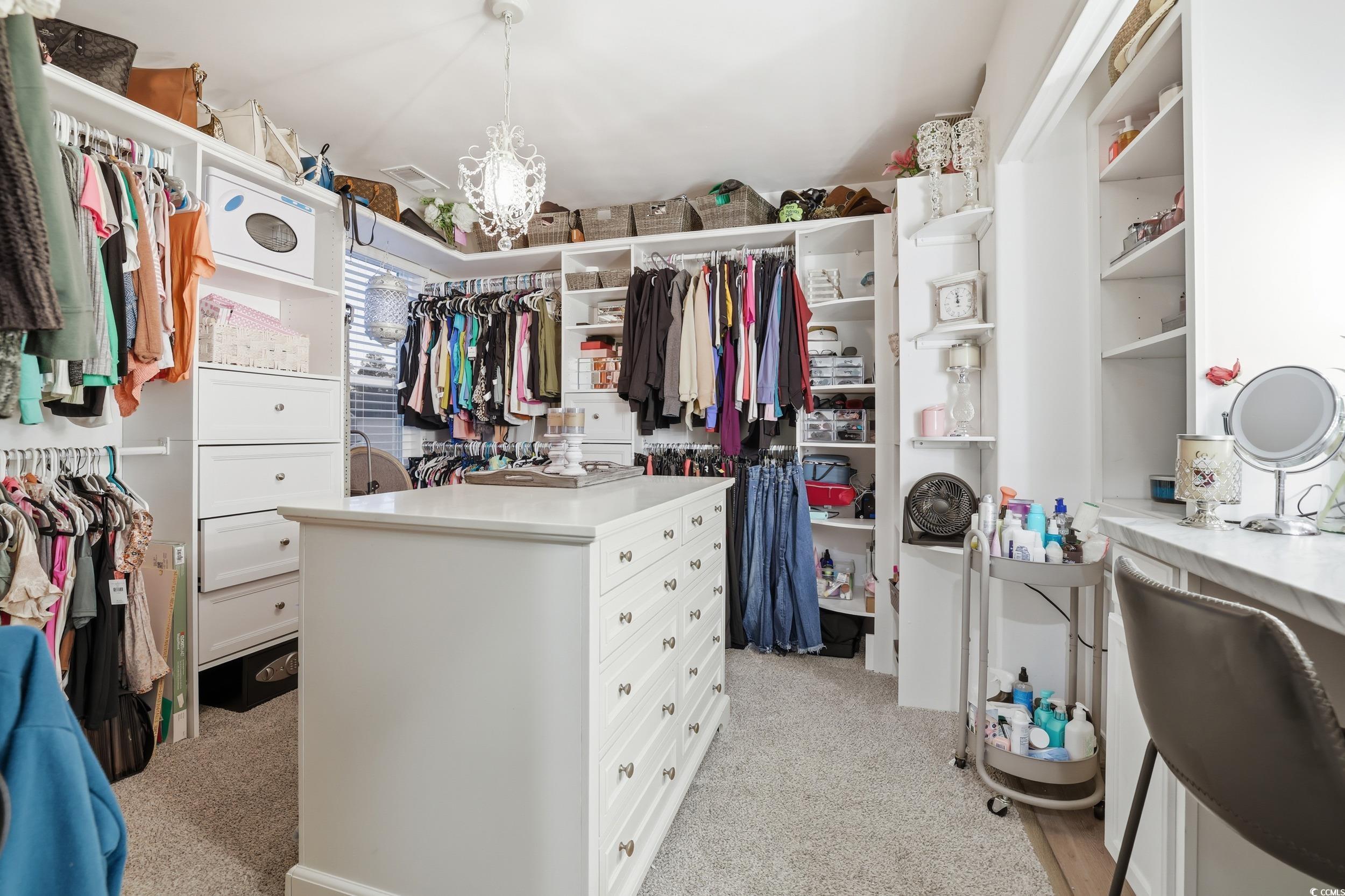 OPEN HOUSE WEEKEND - SATURDAY, MARCH 7th from 12:00 - 2:00 PM AND SUNDAY, March 8th from 12:30 - 3:30 PM This Myrtle Beach location has Carolina Forest Schools, not Conway! This 4-bedroom, 3-bath energy-efficient home in the sought-after Clear Pond community of Myrtle Beach offers 2,352 sq. ft. of modern comfort, space, and style. 1 year home warranty available to seller with accepted offer. Built in 2023, this home feels brand new and showcases an open-concept layout designed for both entertaining and everyday living. The spacious living room flows seamlessly into a bright, upgraded kitchen featuring pendant lighting, a large island, smart black stainless appliances, a walk-in pantry, and ample cabinetry, the perfect setting for family gatherings. On the main level, youll also find a guest bedroom and full bath, ideal for visitors, home office or even Mom! Built by Meritage Homes, the residence includes energy-efficient features such as spray foam insulation and ENERGY STAR appliances, providing year-round comfort and lower utility costs. Upstairs, the primary suite serves as a luxurious retreat. The highlight is an impressive custom walk-in closet with floor-to-ceiling shelving, a dressing table, and a chandelier, a beautifully converted fifth bedroom offering both elegance and functionality. There's even room for the shoes! The primary bath includes a tiled shower and dual vanities for added comfort with a private commode. Two additional bedrooms and a second full bath, also with dual sinks provide plenty of space for family or guests. The laundry room is conveniently located upstairs, eliminating the need to carry clothes up and down the stairs. A large loft area overlooking the front of the home offers flexibility as a playroom, sitting area, or home office. Additional upgrades include fresh interior paint, ceiling fans with lights throughout, three additional closets, climate-controlled attic storage with spray foam, garage shelving, and a white privacy fence enclosing a backyard with no homes directly behind for added privacy. A 2-car garage and smart home features, including a smart pet door and smart kitchen appliances, provide added convenience. The Clear Pond community offers resort-style amenities including two swimming pools, a fitness center, sidewalks, playgrounds, and walking trails. Conveniently located near top-rated schools, shopping, dining, medical facilities, the airport, and beautiful Myrtle Beach beaches, this home blends lifestyle, comfort, and location. Move-in ready and priced below market value - skip the wait for new construction and start enjoying your new home today...just in time for the summer! Ladies, this is a dream come true!