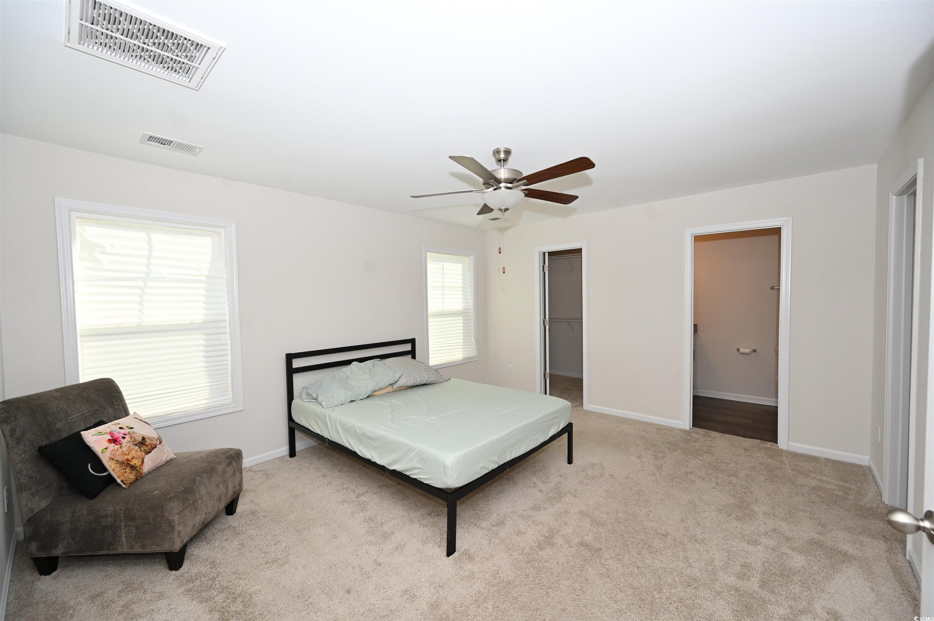 Beautiful three bedrooms, two full bathrooms, and one half bathroom, home with a fantastic layout! The primary suite is conveniently located on the first floor and features two spacious walk-in closets and a well-appointed bathroom with double sinks and granite countertops. The kitchen offers plenty of cabinet space, granite countertops, and a pantry, making it perfect for everyday living and entertaining. A half bath for guests and a large laundry room complete the downstairs level. Upstairs youll find two additional bedrooms, a full bathroom, and a walk-in attic that provides easy access and excellent storage options. There is no shortage of storage throughout this home! Large backyard! Located just approximately 19 minutes from the beach, and close to shopping, dining, golf, and all the entertainment that North Myrtle Beach, SC has to offer. Buyer is responsible for all measurement verifications.