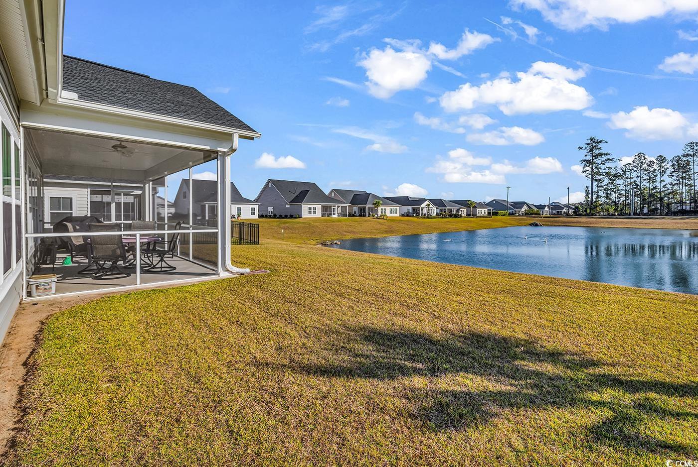 MUST SEE TO APPRECIATE SCHEDULE TODAY !!! Constructed in 2022 and meticulously maintained, this nearly new single-level residence encompasses three bedrooms, two full bathrooms, and a two-car garage with additional storage, situated on a desirable dead-end street within The Isle of Bella Vita community. This property boasts a scenic pond view, a versatile layout, and numerous upgrades throughout, making it move-in ready and designed for both comfort and contemporary style. Upon arrival, one is welcomed by an inviting front porch accompanied by well-maintained landscaping. A newly installed storm door provides access to the entryway. The two guest bedrooms are conveniently located at the front of the residence and share a full bathroom accessible from the main hallway. The primary suite, characterized by its elegant tray ceiling, includes a spacious walk-in closet and an en-suite bathroom featuring a large, tiled, glass-enclosed shower. Abundant windows in the primary bedroom and the main living area allow for natural light and provide a picturesque view of the pond at the rear of the property. The upgraded kitchen features white cabinetry, high-quality quartz countertops, stainless steel appliances, a walk-in pantry, and an oversized center island. Luxury vinyl plank flooring extends throughout the primary living areas, including several of the bedrooms. The home is fitted with fifteen window blinds and ceiling fans installed in each room, as well as both porches. Additionally, new lighting fixtures have been incorporated in the central hallway and above the kitchen island, enhancing the home's open-concept design. Located just beyond the main living area, the extra-large extended screened-in back porch creates a pleasant atmosphere, particularly during warm summer days. This property reflects a significant pride of ownership. It includes various features that simplify the purchasing process, such as a tankless water heater, gutters, a landscaped yard with white stone, an automatic irrigation system, and a finished and painted garage with pull-down stairs for attic access, providing extra storage space. The attic also contains essential items for hurricane protection. Set within a natural gas community that imposes a low homeowners' association fee, which includes access to a pool and cabana, The Isle of Bella Vita offers a prime location just minutes from shopping, dining, championship golf courses, and highly rated educational institutions. Myrtle Beach International Airport and local beaches are located approximately 15 minutes away.