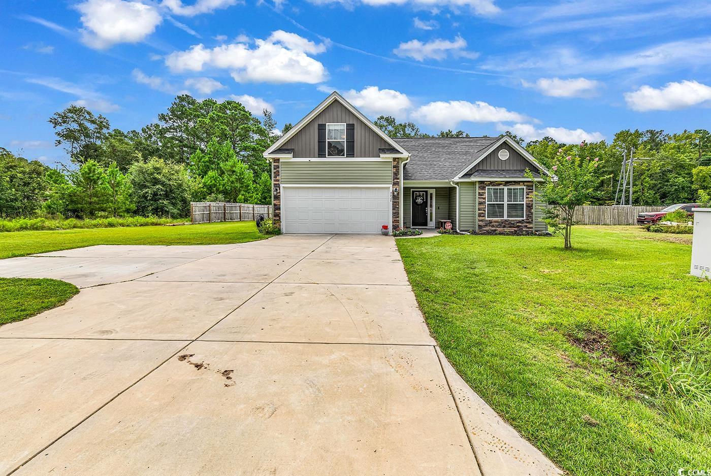 Nestled just beyond the city limits, this Conway beauty offers the best of country comfort and coastal convenience. Set on a generous half acre with no HOA, this move in ready four bedroom three bath home delivers more than two thousand three hundred square feet of easy living and an open floor plan designed for real life. Vaulted ceilings and wood toned laminate flooring welcome you into a bright central living area that feels warm, relaxed, and comfortable from the moment you step inside. The kitchen blends style with everyday function. Stainless steel appliances, solid surface countertops, and a spacious pantry create a layout that works whether you are dashing through breakfast or winding down after a long day. The first floor primary suite is a peaceful retreat with a vaulted ceiling, a roomy walk in closet, and a spa inspired bath designed for comfort. The large bonus room above the garage provides a flexible fourth bedroom option and can serve beautifully as a playroom, guest suite, media room, or home office. The flow of the home gives families, guests, and work from home lifestyles plenty of room to settle in. Step out back to a wide open yard with a covered rear porch and large back yard. The half acre gives you freedom to dream. Plan a pool, add an RV or boat pad, build a garden, create a play area, or design a private outdoor oasis under Carolina skies. Location keeps life simple. Highway 90 connects quickly to Highway 22, International Drive, and Highway 501, making commutes, CCU events, beach days, and downtown Conway outings easy. You gain the serenity of county living while staying only minutes from Myrtle Beach recreation, shopping, and dining. This Conway property brings together space, flexibility, and the freedom to live your way. Come see how effortless life can feel when you have room to breathe and every convenience close by.