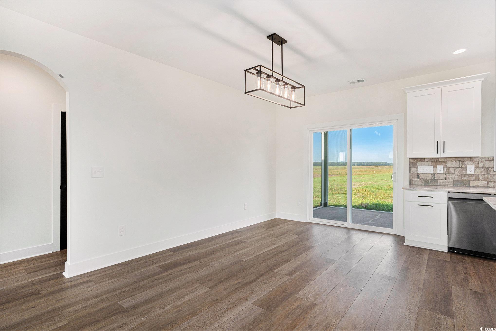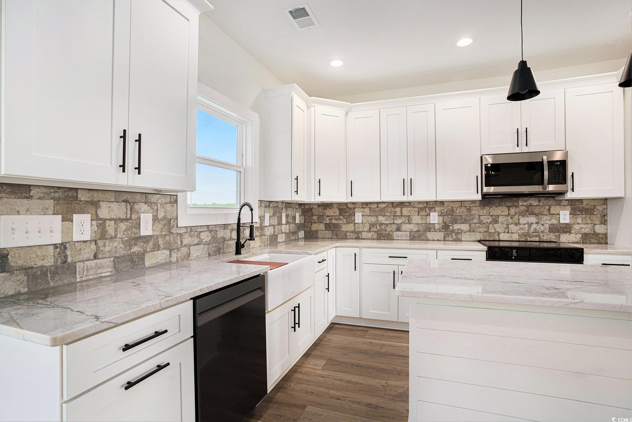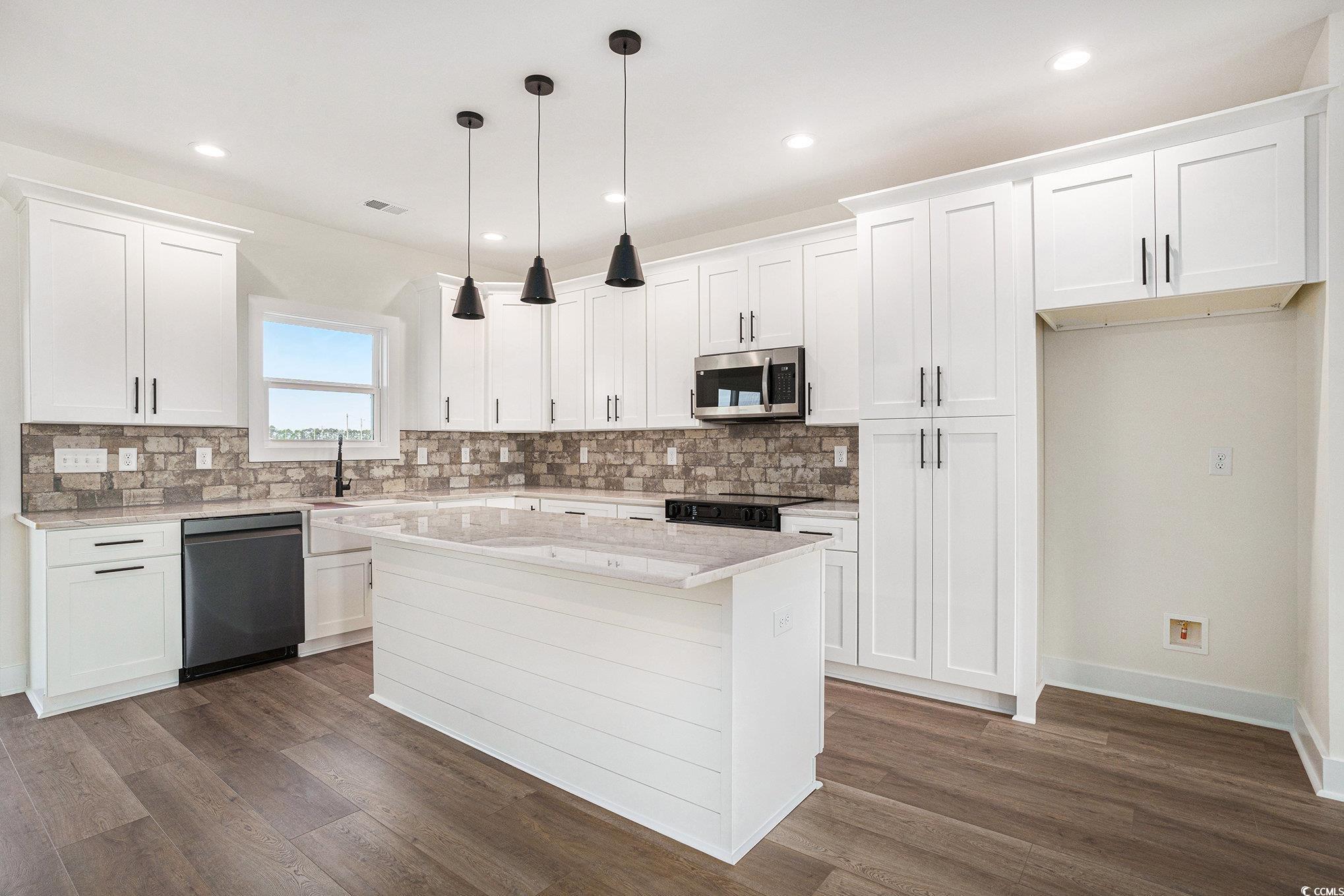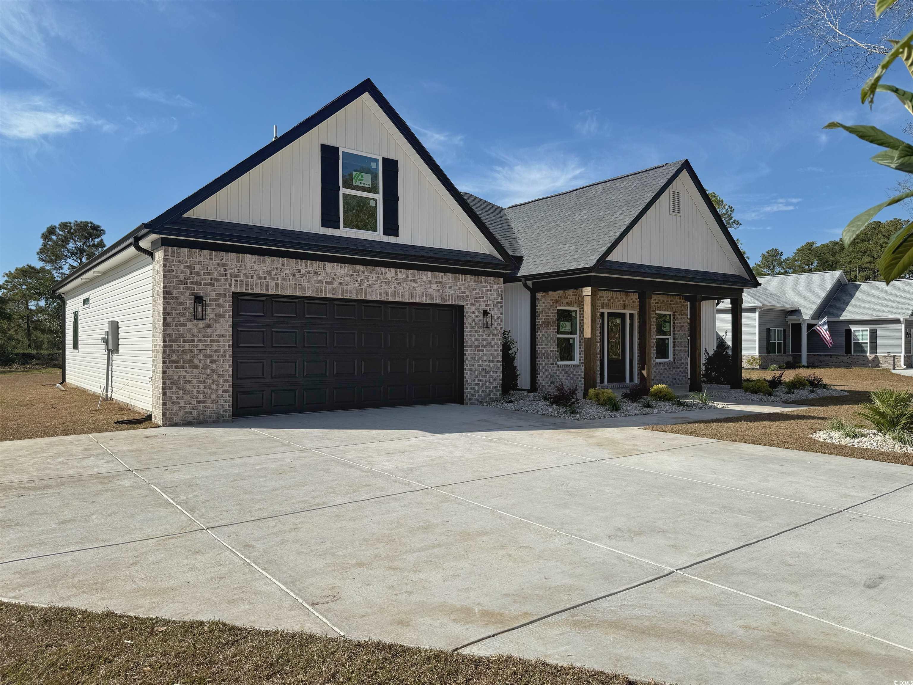 Brand-New Construction on 0.59 Acres - Prime Location & Modern Style! No HOA! This stunning 4-bedroom, 3-bathroom newly built home is perfectly situated on 0.59 acres and centrally located on Highway 90. Only minutes from Historic Downtown Conway, International Drive, and Coastal Carolina University. Enjoy the convenience of nearby shopping, dining, schools, and beaches while living in a peaceful setting. The inviting open floor plan is highlighted by recessed LED lighting, LVP flooring throughout the main living areas, and an impressive electric fireplace with shiplap accents. Ceiling fans are in every bedroom, the great room, and the screened back porch! The gorgeous kitchen features Ice White shaker cabinetry with black hardware, a white farmhouse sink, and black stainless steel appliances, including an electric range, dishwasher, and microwave. Retreat to the luxurious primary suite with beautiful shiplap accents, a spacious walk-in closet, and a spa-style bathroom with tile flooring and a large tiled shower featuring a rain head and handheld sprayer. Additional bedrooms offer comfortable space for guests or family, and the upstairs bonus room with carpeting adds flexibility for a media room, office, or playroom. Exterior features include classic Heritage Linen vinyl siding with modern black accents, creating timeless curb appeal. This home blends style, comfort, and convenience in a sought-after locationschedule your showing today! **Some photos are of previously built and sold homes. Features and selections may vary**