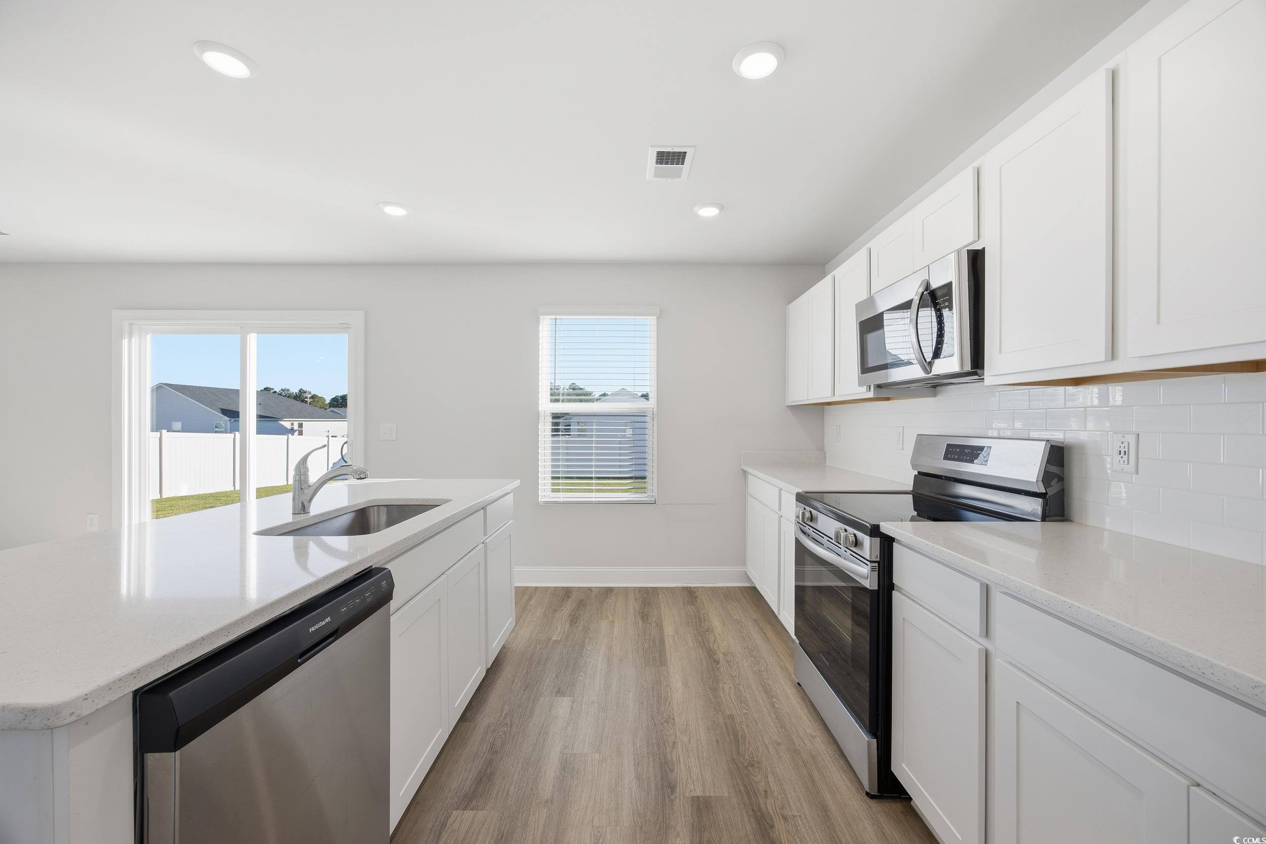 Discover a rare opportunity in Rivertown Landinga truly custom-built home in a community known for its standard production floor plans. Designed and constructed personally for its current owner, this residence stands apart offering features and finishes you simply wont find in any other home in the neighborhood. This spacious 4-bedroom, 4-bath property welcomes you with an airy, open-concept layout filled with natural light and thoughtfully selected upgrades throughout. Luxury vinyl plank flooring grounds the main living areas, while the gourmet kitchen takes center stage with sleek quartz countertops, a designer tile backsplash, upgraded cabinetry, and generous workspace perfect for everyday meals or hosting friends and family. The first-floor guest suite offers versatilityideal for an office, flex room, or multigenerational livingwith a full bath conveniently nearby. Upstairs, a bright and oversized loft provides endless options for a second living room, media space, play area, or home studio. Each bedroom is well-appointed with comfort in mind, while the four full bathrooms ensure privacy and convenience for all. Out back, step into your fully privacy-fenced yarda rare upgrade in the communityoffering ample space for pets, gardening, play, or outdoor entertaining. The three-car garage provides exceptional storage and parking, adding to the homes already impressive functionality. Rivertown Landing is loved for its walkable streets, low HOA fees, and friendly atmosphere where neighbors enjoy biking, jogging, and golf cart cruising. Just minutes away, youll find the charm of historic downtown Conway, offering boutique shopping, local dining, and the scenic Riverwalk along the Waccamaw Riverperfect for sunset strolls and weekend adventures. If youve been searching for something truly special, this one-of-a-kind, custom-owner-built property delivers the perfect blend of upgraded modern living, small-town charm, and thoughtful craftsmanship. Homes like this rarely hit the marketdont miss your chance to make it yours. Schedule your private showing today!