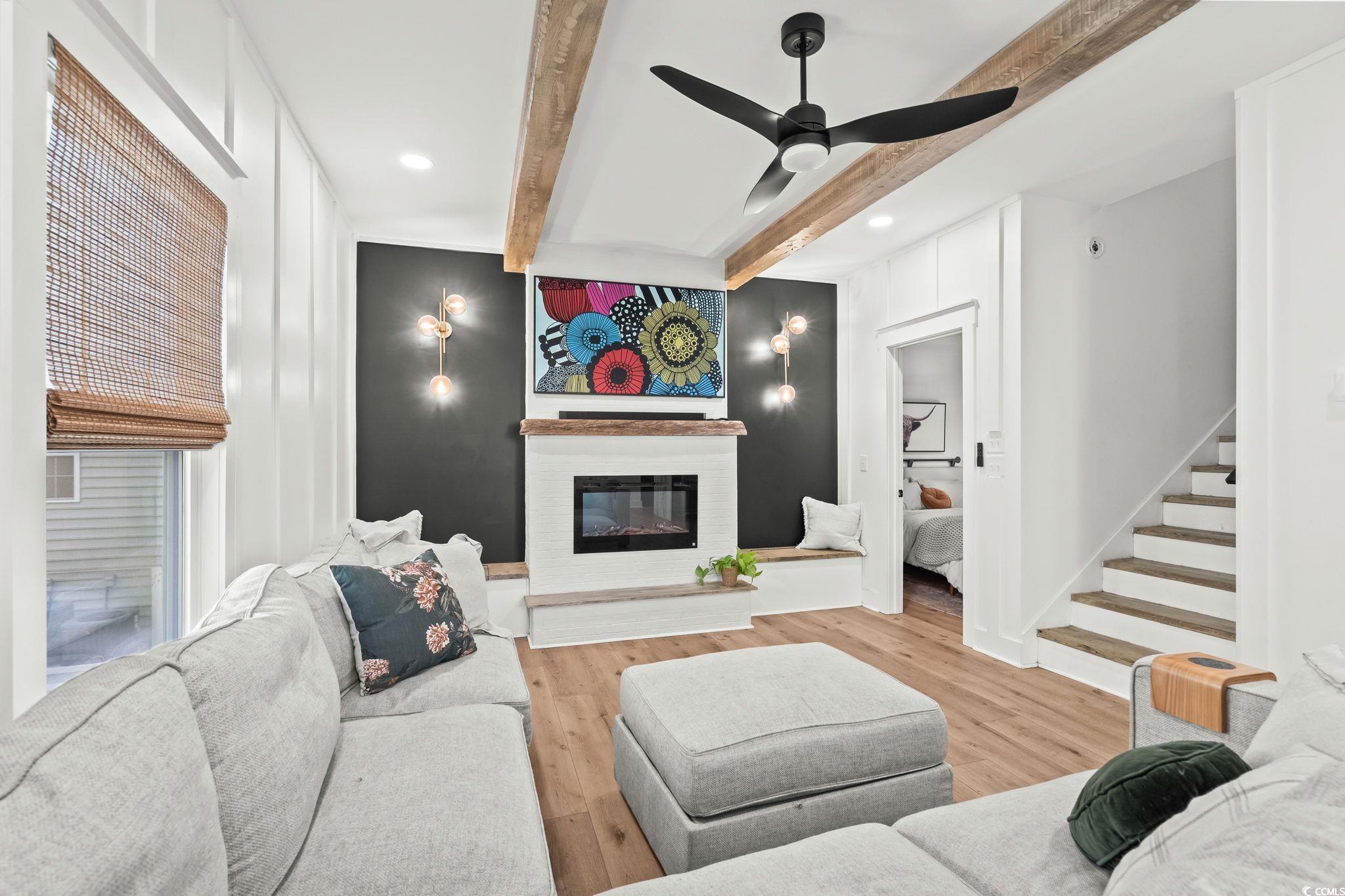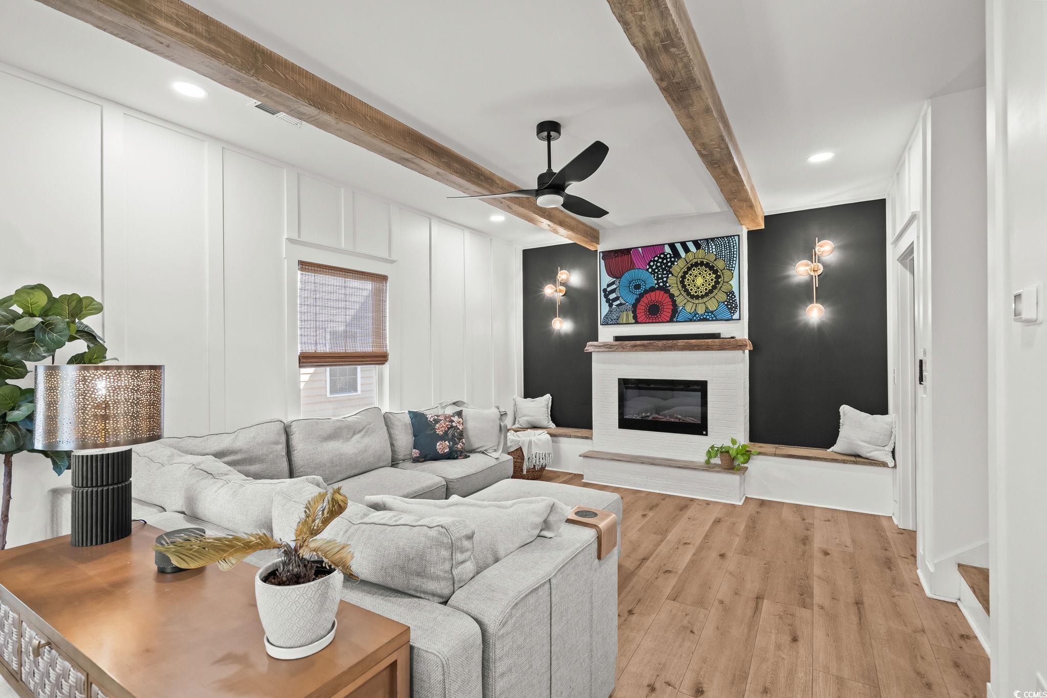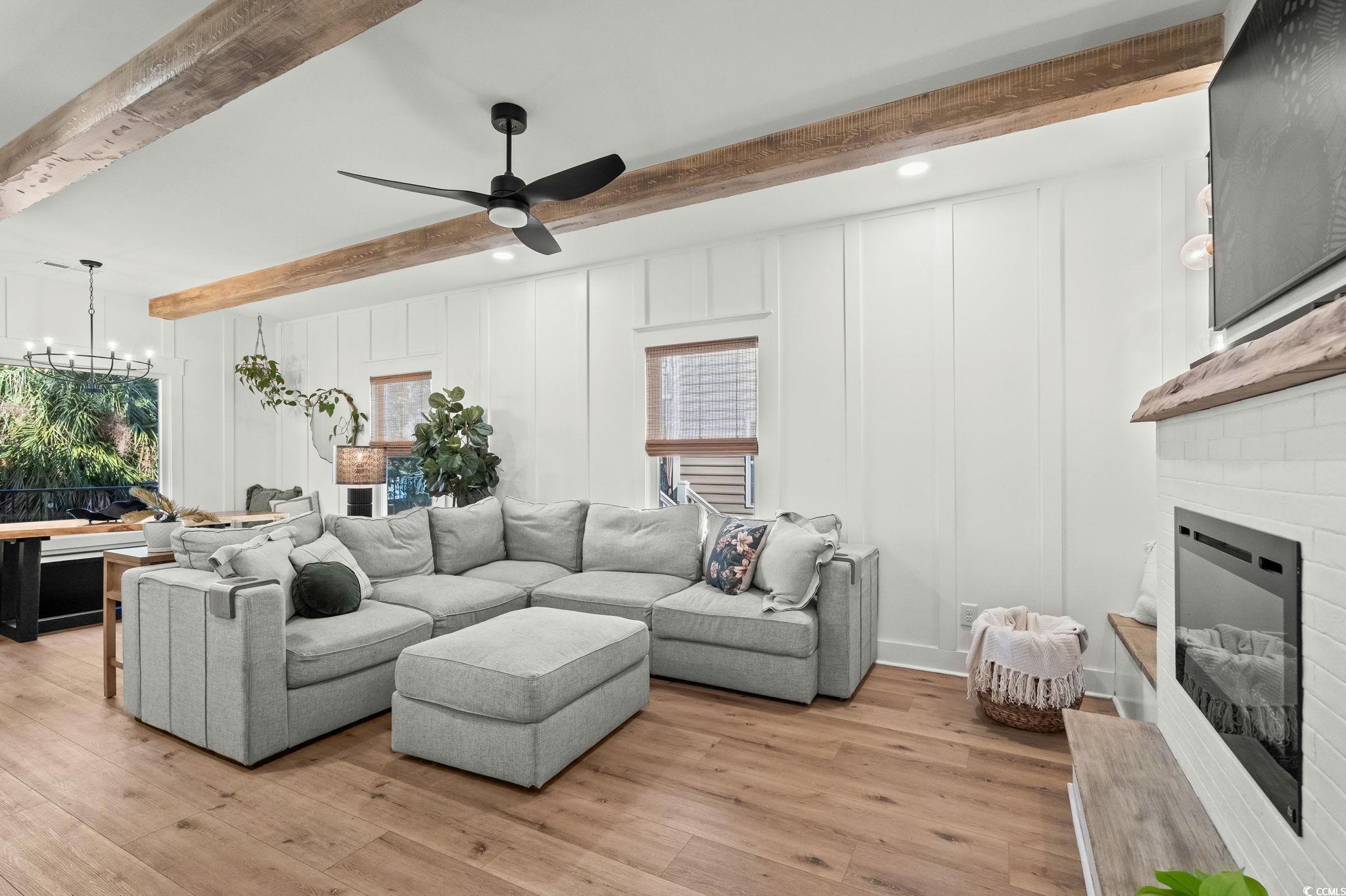 LivingRoom: BeamedCeilings, CeilingFans, Fireplace