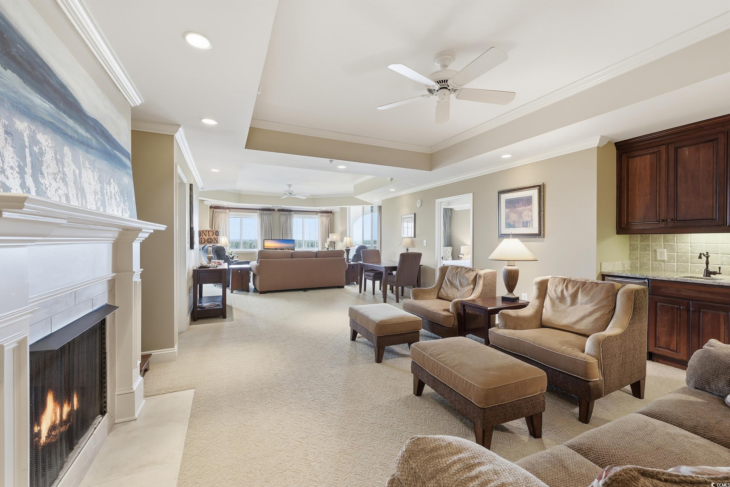 LivingRoom: TrayCeilings, CeilingFans, Fireplace, Bar