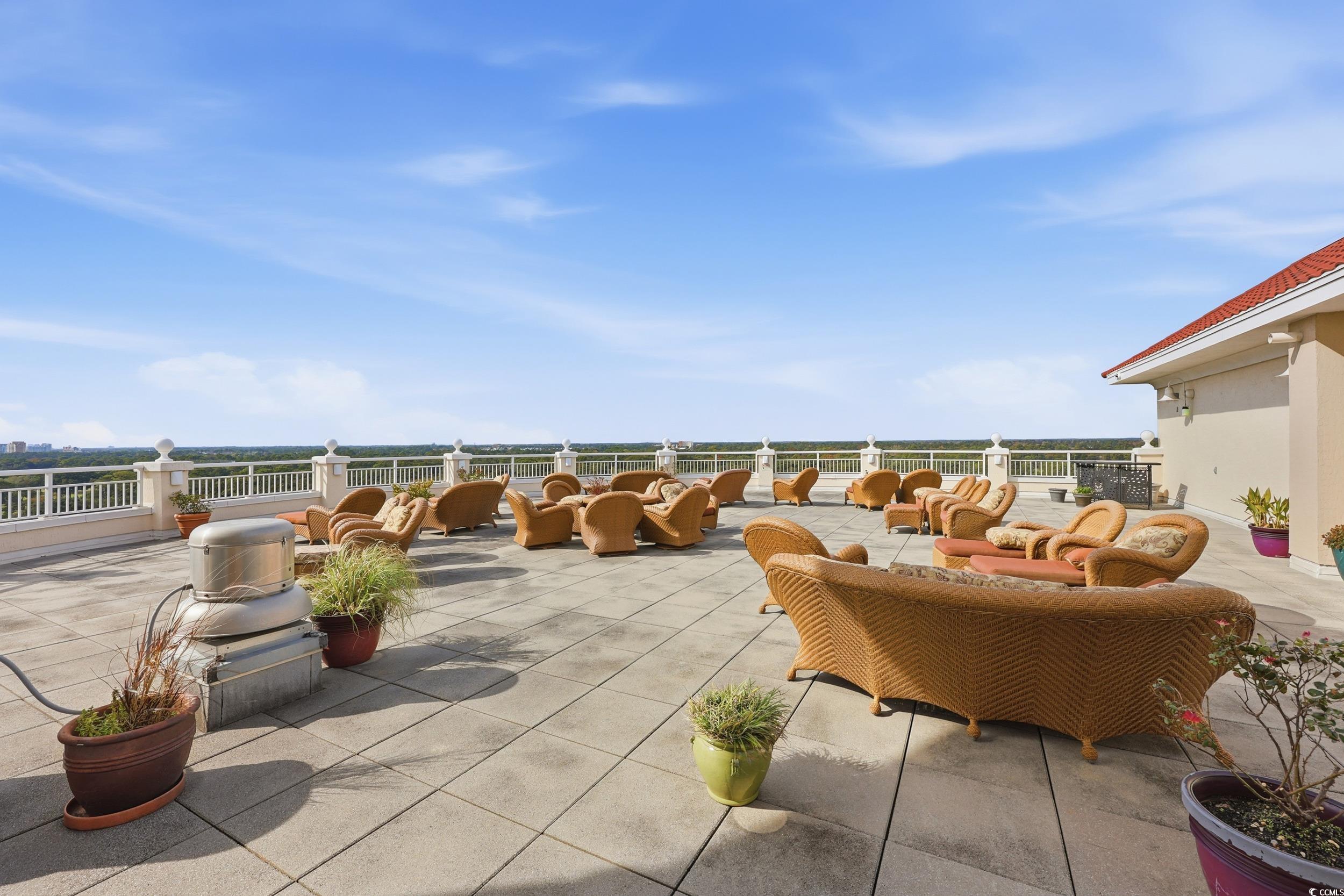 Experience coastal luxury from this beautiful penthouse residence at The Pointe, offering unmatched panoramic views of the marsh, Dunes Lake, and the prestigious Dunes Golf Course. The Pointe is a secure, gated luxury high-rise offering 24-hour lobby access, private parking, individual storage rooms, an indoor pool, fitness center, and an elegant owners lounge with full kitchen and billiards. Long-term rental restrictions ensure a quiet, residential feel. This 3BR/3.5BA condo features an open, spacious layout with two waterfront ensuite bedrooms, each with private balconies overlooking the water, plus a generous third guest suite. The updated gourmet kitchen is equipped with Viking professional appliances, including a 6-burner gas range, oversized refrigerator/freezer, wine cooler, and custom range hood, perfect for those who love to cook or entertain. A standout feature is the private rooftop terrace, boasting sweeping views of the ocean, marsh, and golf course, ideal for sunsets, relaxing, or stargazing. All of this is just a short walk to the beach and minutes from everything Myrtle Beach and North Myrtle Beach have to offer.