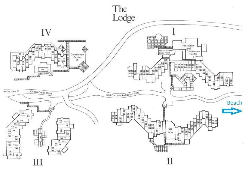 Ocean Creek is located on the north end of Myrtle Beach situated directly across from the south entrance to Barefoot Landing and shares an entrance with Cracker Barrel. Once you enter the OC property, Lodge 3 is located just behind the Greens townhomes. When on Ocean Creek Dr, take the 4th turn to the right. Condo is on the 3rd floor, there are stairs at either end of the building, elevator is at the south end of the building.Courtesy of Leonard Call- Ocean Creek