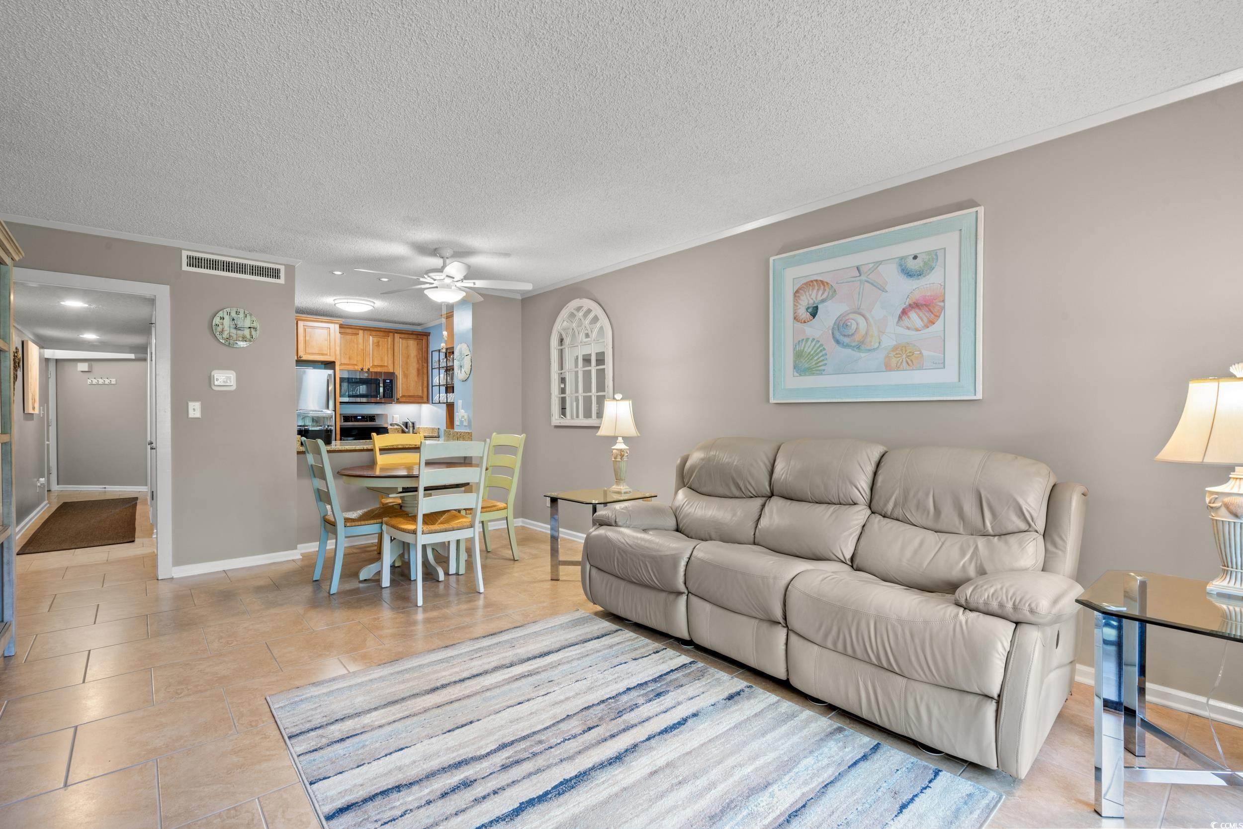 This loved and cared for second home is a beautiful turn key property with many recent renovations. Kitchen, baths and flooring updated. Much of the furniture is new or like new. All furniture, appliances, window treatments, accessories and housewares are included. The screened porch is nestled in the tress and has a delightful pool view. Come and enjoy the wonderful amenities and ambiance that Ocean Creek offers. The Beach Club boasts wonderful ocean front views, a snack bar and grill open in season, sand volleyball court, outdoor pool, playground, lockers, and restrooms. Other amenities in Ocean Creek include 24 hour security, Tennis center, Putting Green. If fine dining, live entertainment and night life are of interest, then Barefoot Landing is just across the street. All figs & sq. ft. approximate.