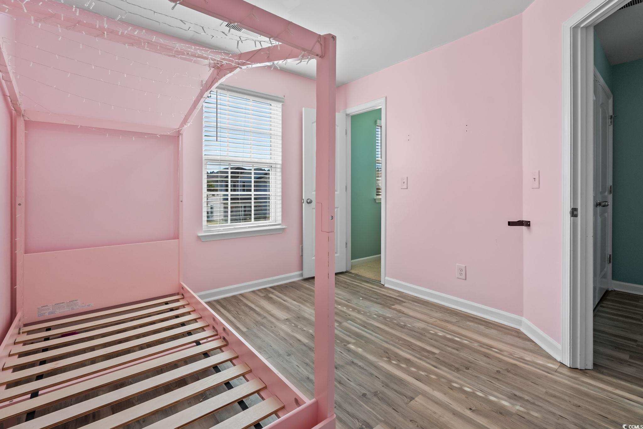 Welcome home! This beautiful 3-bedroom, 2.5-bathroom property is located in the desirable Myrtle Grove Plantation. Step through the front door into a bright living area featuring porcelain tile flooring and a convenient guest bath. The kitchen offers large granite countertops, stainless steel appliances and a spacious pantry. Upstairs you will find two additional bedrooms, a full bathroom and the primary suite complete with its own bathroom and generous closet space. A linen closet is also located in the hallway for added convenience, and the laundry room is situated upstairs as well. The attached 1-car garage includes built-in shelving to maximize storage. Enjoy the large, fully fenced backyard with vinyl privacy fencing- an ideal space for entertaining, grilling or simply relaxing!