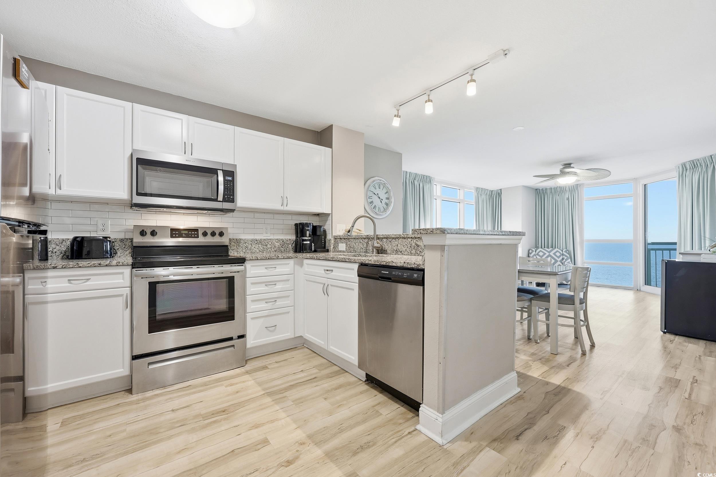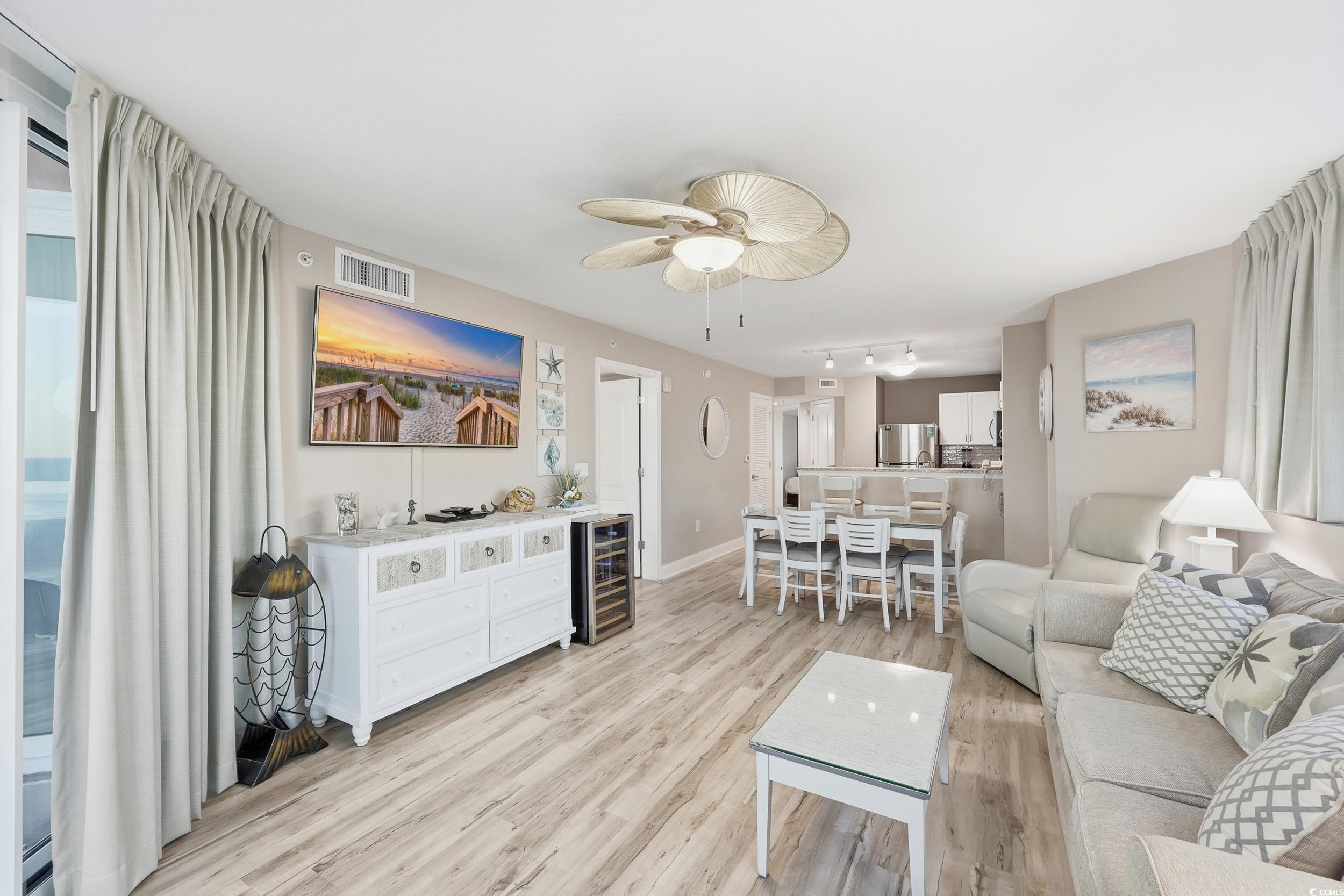 Come see this gorgeous unit located at Prince Resort at Cherry Grove Pier with some of the most gorgeous views of the ocean and marsh in North Myrtle Beach! This end unit sleeps up to 8 people and has tremendous rental income potential as a top-tier, gold level rental for the onsite program. Featuring an open floor plan with lots of windows and a fully stocked kitchen that makes meal prep easy and convenient! Relax on the sofa and enjoy the ocean views from the spacious living area, or step out onto the balcony and breathe in the salt air breeze. The primary suite features a king bed and also allows for incredible views of the sunrise. The on-suite bath is modern and updated. The guest room accommodates friends or family comfortably with two queen beds and more incredible views and the guest bath is spacious and conveniently located right outside the guest bedroom door. A washer/dryer unit is located inside the unit for your convenience. Updates include new kitchen tile backsplash, new fridge, new washer/dryer, new king mattress, new custom curtains in living room, new Adirondack balcony furniture, new lamps and wall decor in bedrooms and living room, new air fryer and Keurig, new shower heads in both baths, new smart tv's, new tv cabinet, and fresh coat of paint on wood furniture. Prince Resort is rich in amenities with a gym, lazy river, hot tub, pools, onsite check-in desk, bar and grill, and the onsite restaurant. Access to the pier with purchase of pass. Prince Resort is located close to shopping, restaurants, entertainment, and more. Call for your showing today!