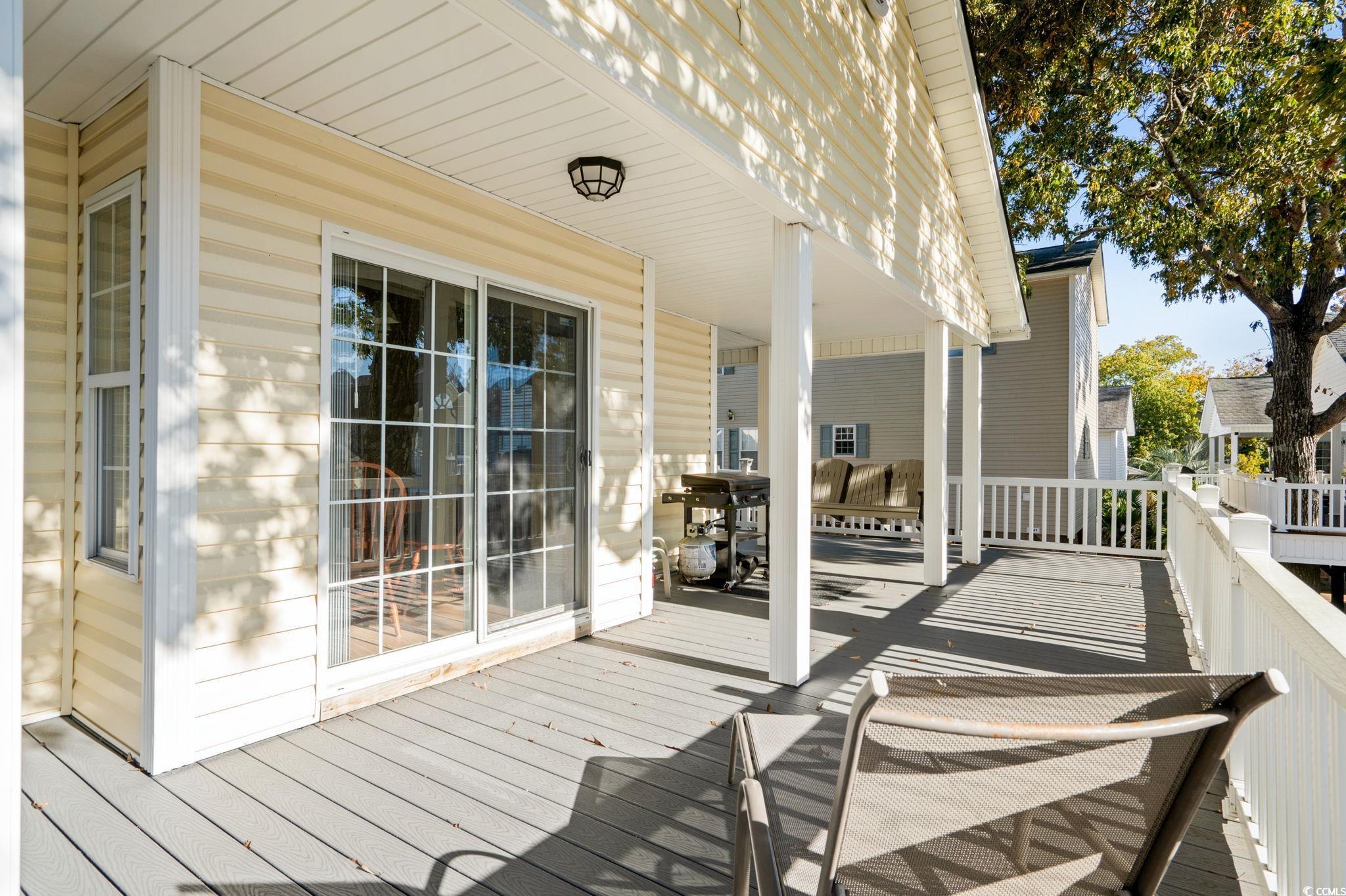 Charming raised beach home featuring 2 bedrooms and 2 baths in the award-winning Ocean Lakes Family Campground. This home offers an open floor plan with a spacious living, dining, and kitchen areagreat for gatherings and everyday comfort. Enjoy an expansive composite deck with low-maintenance vinyl railing, perfect for morning coffee, relaxing after a beach day, or hosting gatherings and parties. The large area underneath provides plenty of room for entertaining, grilling, and fun tailgate-style games with family and friends. Great for full-time beach living, a vacation getaway, or a fantastic rental opportunity!