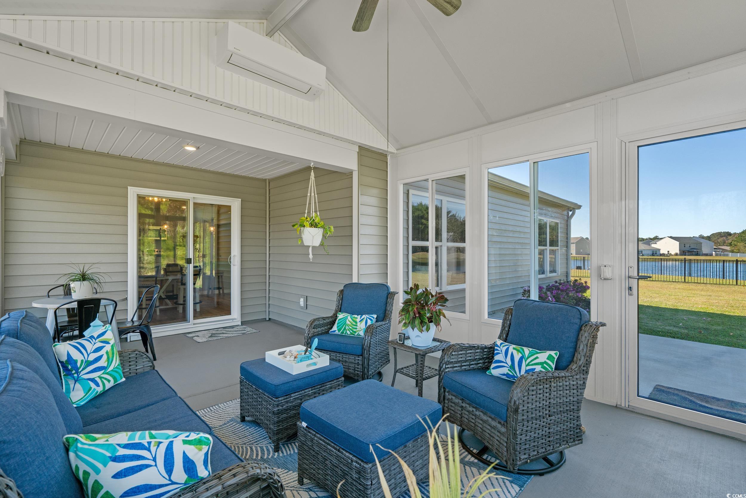 Welcome to 1803 Promise Place, a beautifully maintained home in the sought-after Harmony @ St. James community. This is the very popular Cali floor plan. Perfectly situated on one of the largest lots in the neighborhood at the end of a quiet cul-de-sac, this property offers rare privacy with tranquil views of the wooded area and pond behind the home. Step inside to discover a thoughtfully designed layout that combines comfort and style. The newly added sunroom adds 245 square feet of versatile living space the perfect place to relax and enjoy the peaceful natural setting year-round. NOTE that all sunroom furniture to convey! The home features plantation shutters, Wi-Fi-enabled ceiling fans and lighting, and a remote-controlled shade in the primary suite for modern convenience. Additional upgrades include a CPI security system with cameras, storm door, LeafGuard gutters, Rain Bird 5-zone irrigation system, and a new roof for total peace of mind. The HVAC system has been enhanced with a UV light air purifier and larger filter system for cleaner air, and a mini-split keeps the sunroom perfectly comfortable year-round. Fresh landscaping with new trees, rose bushes, and flowerbeds adds to the homes curb appeal. A bonded termite prevention system was recently installed for added protection. Enjoy the privacy, space, and upgrades that make this home stand out in Harmony @ St. James just minutes from shopping, dining, and the beautiful beaches of Myrtle Beach.