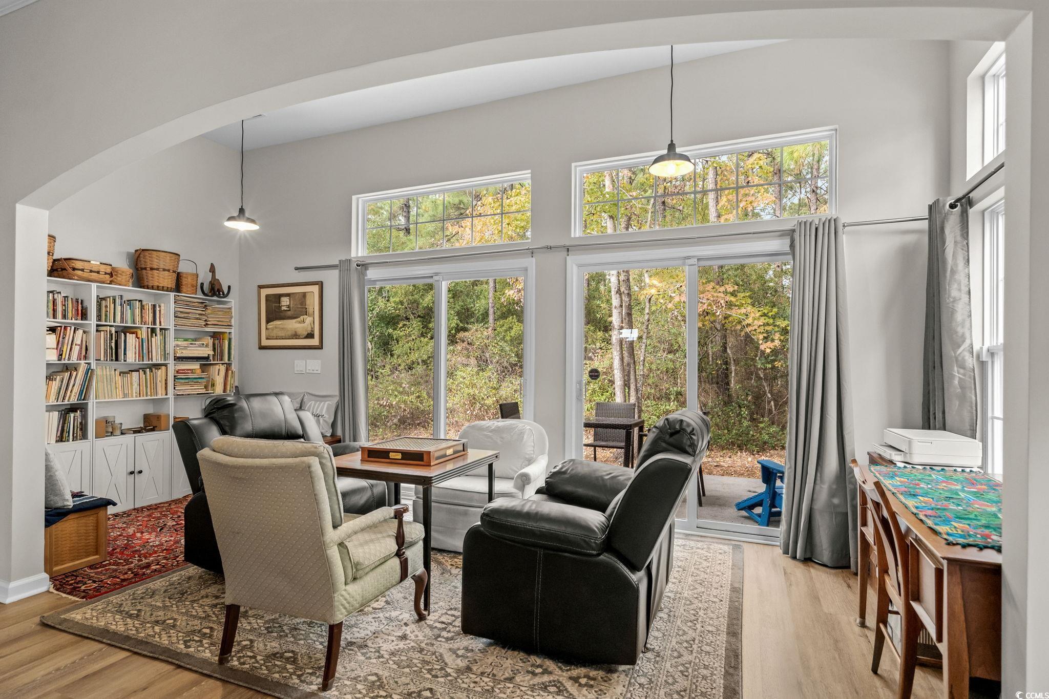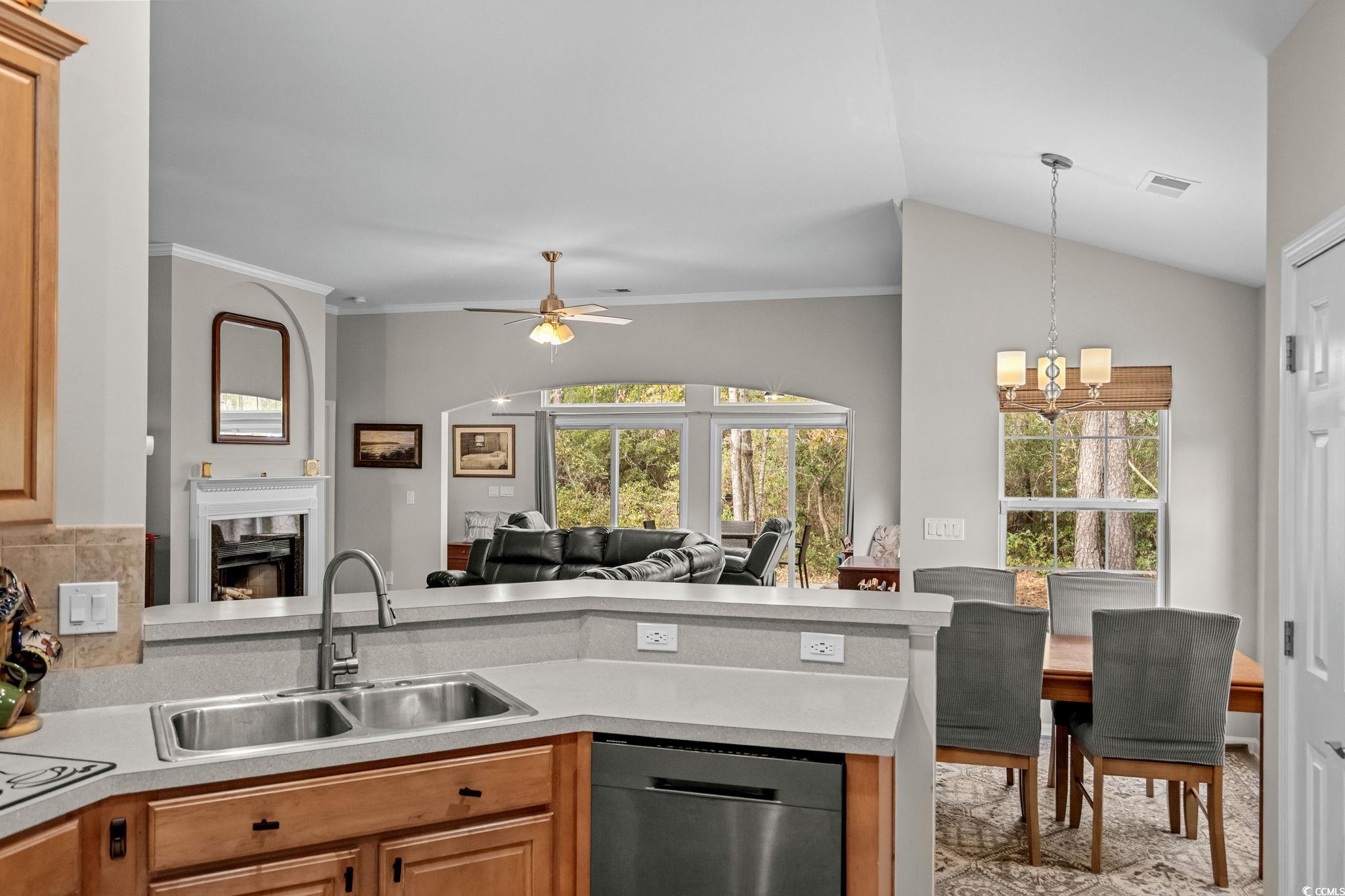 JUST LISTED! Welcome to 3337 Picket Fence Ln. This inviting 3 bedroom, 2 full-bath ranch in The Farm at Carolina Forest, is set on a peaceful, secluded lot bordered by mature trees offering both privacy and possibilities. Interior offers over 1,800 heated sq. ft. and features large windows, soaring vaulted ceilings, wood-burning fireplace, and an open concept that allows natural light to flow effortlessly throughout, creating a warm and welcoming environment perfect for everyday living or entertaining guests. A spacious sunroom at the back of the home offers a versatile flex space, perfect for relaxing, working, or expanding the main living area while providing serene views of the wooded surroundings. Neutral interior paint and luxury vinyl plank flooring create a modern, move-in-ready feel throughout. The split-bedroom layout ensures privacy, with the owner's suite set apart from the other full bath and two guest rooms. The spacious owner's retreat includes a tray ceiling, generous walk-in closet, and a well-appointed bathroom en suite complete with dual-vanity, walk in shower, and garden tub. The home also features brick accents, ample driveway parking and a 2-car attached garage with durable epoxy-coated flooring (22'), for added style and functionality. Residents of The Farm enjoy exceptional amenities, including multiple pools, a community center, miles of walking trails, and numerous scenic ponds. The neighborhood is located in the heart of Carolina Forest and just minutes from top-rated schools, dining, shopping, medical facilities, the airport, and coastline. Open House Saturday November 22 2:00pm - 4:00pm!