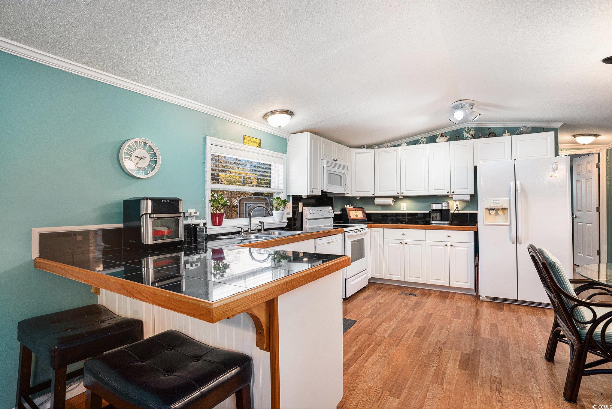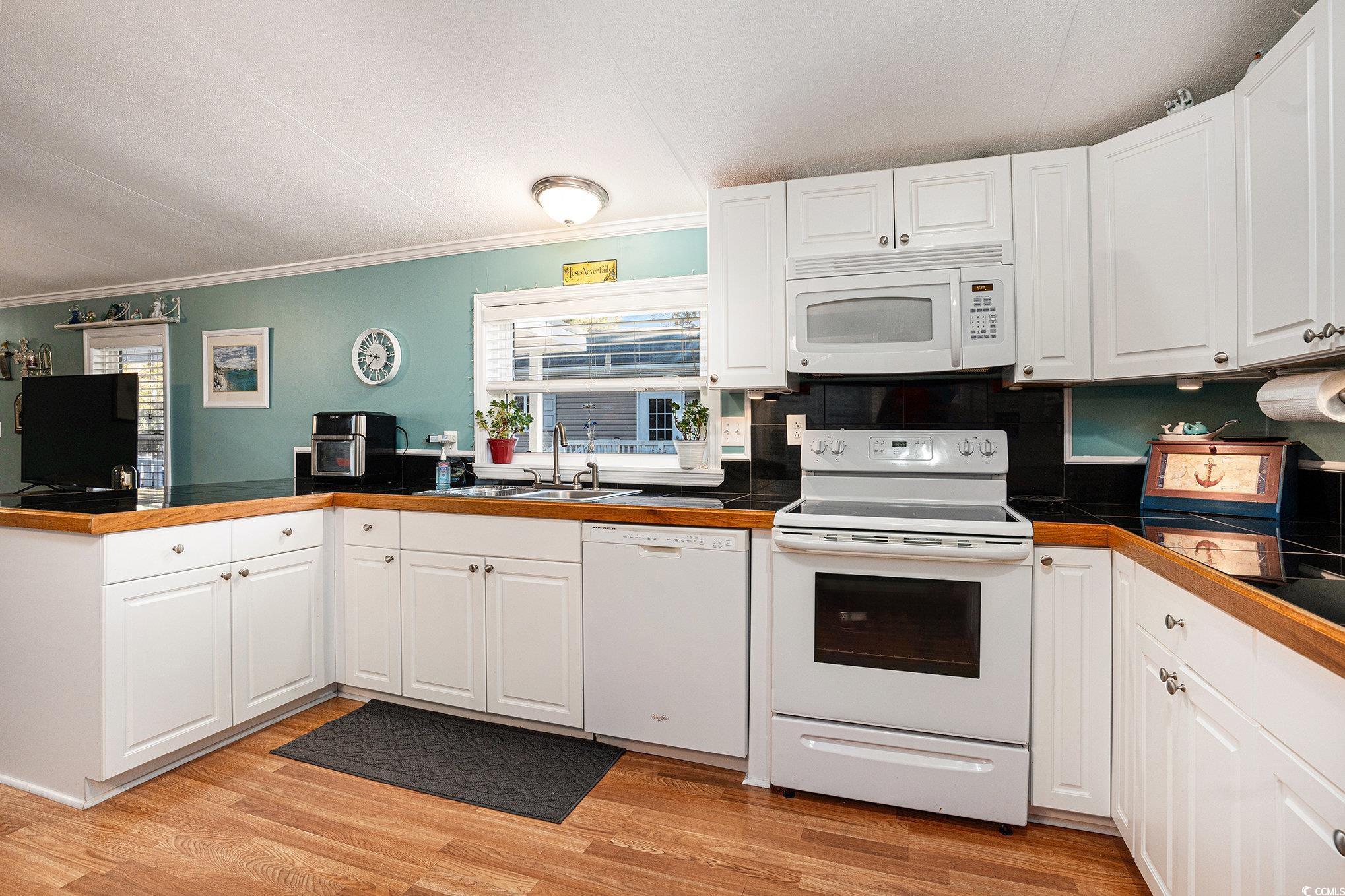Beautiful 3-bedroom, 2 bath home nestled in the wonderful community of Windjammer Village in Garden City! This expansive home offers a split floor plan, ceiling fans throughout, large owner's suite with ensuite, walk in closet, covered front porch, sunroom, 3rd bedroom can also double as an office, detached storage w/electric shed, fenced in backyard, outdoor shower, NEW garage w/electric and extended driveway. Windjammer Village offers a pool and a clubhouse. Conveniently located near shopping, dining, championship golf courses, medical facilities and CLOSE TO THE BEACH! Perfect for your second home or primary residence.