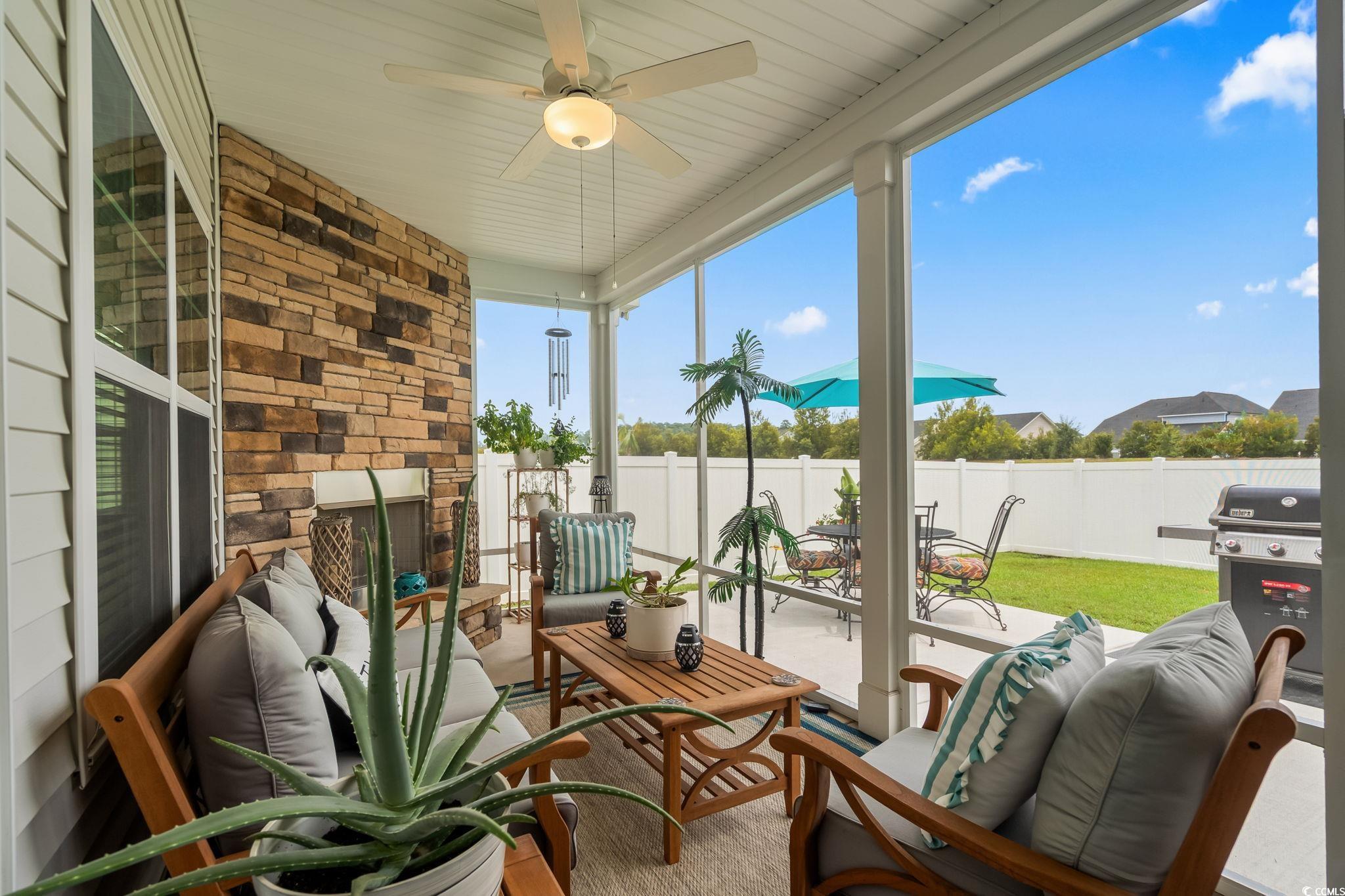 Everyday is a vacation in this home that is tucked away in the charming Arcadia neighborhood, this coastal cutie is your ticket to laid-back Myrtle Beach living. Just minutes from the ocean, shopping, dining, golf, and all the fun the Grand Strand has to offeryoure truly in the heart of it all. Step inside and youll instantly fall in love with the beautiful flooring, airy open layout, and breezy coastal charm throughout. The gourmet kitchen is a dream with built-in oven and microwave, a gas cooktop, and plenty of space to whip up your favorites after a day in the sun. The large master suite feels like a private retreat, featuring a spacious walk-in shower and plenty of room to relax and recharge. Love to entertain? The outdoor screened patio with extended slab comes complete with a cozy fireplaceperfect for cool evenings, smores nights, or simply enjoying the Carolina sky. Add in a 2-car garage for all your beach gear, golf clubs, and storage needs, and you've got the perfect blend of function and fun. The current owners did the extra work - fenced in yard, gutters, and screened porch ready for move-in simplicity. And the community? Even better. Living in Arcadia means youll enjoy resort-style amenities including a sparkling community pool, a well-equipped fitness center, and scenic walking trails perfect for morning strolls or sunset unwinding. Its the kind of neighborhood where every day feels like a getawaybut with all the comforts of home. 541 Fanciful Way isnt just a place to liveits your own little slice of Myrtle Beach magic. Come see it for yourself and start living the beach life youve been dreaming of!
