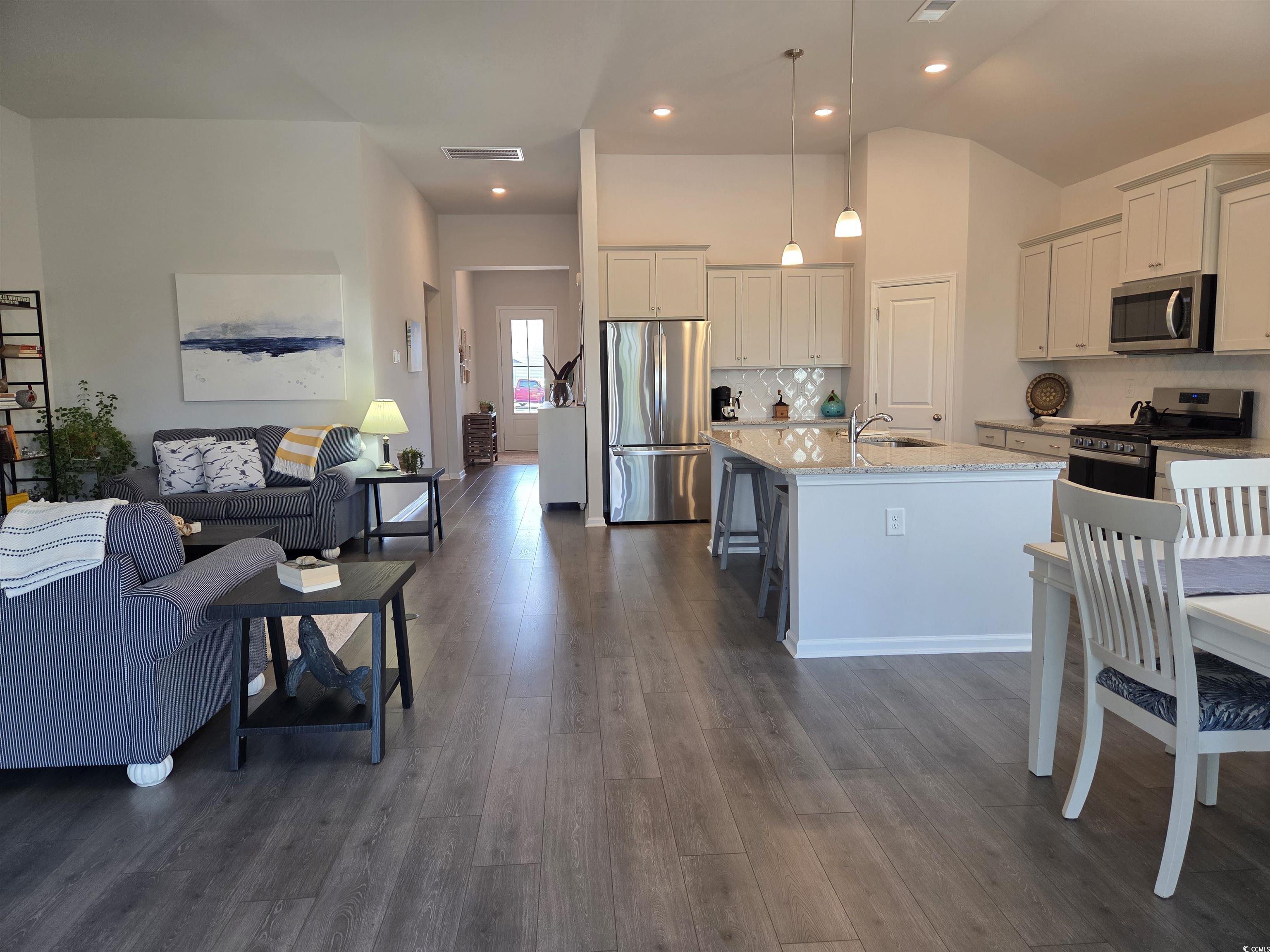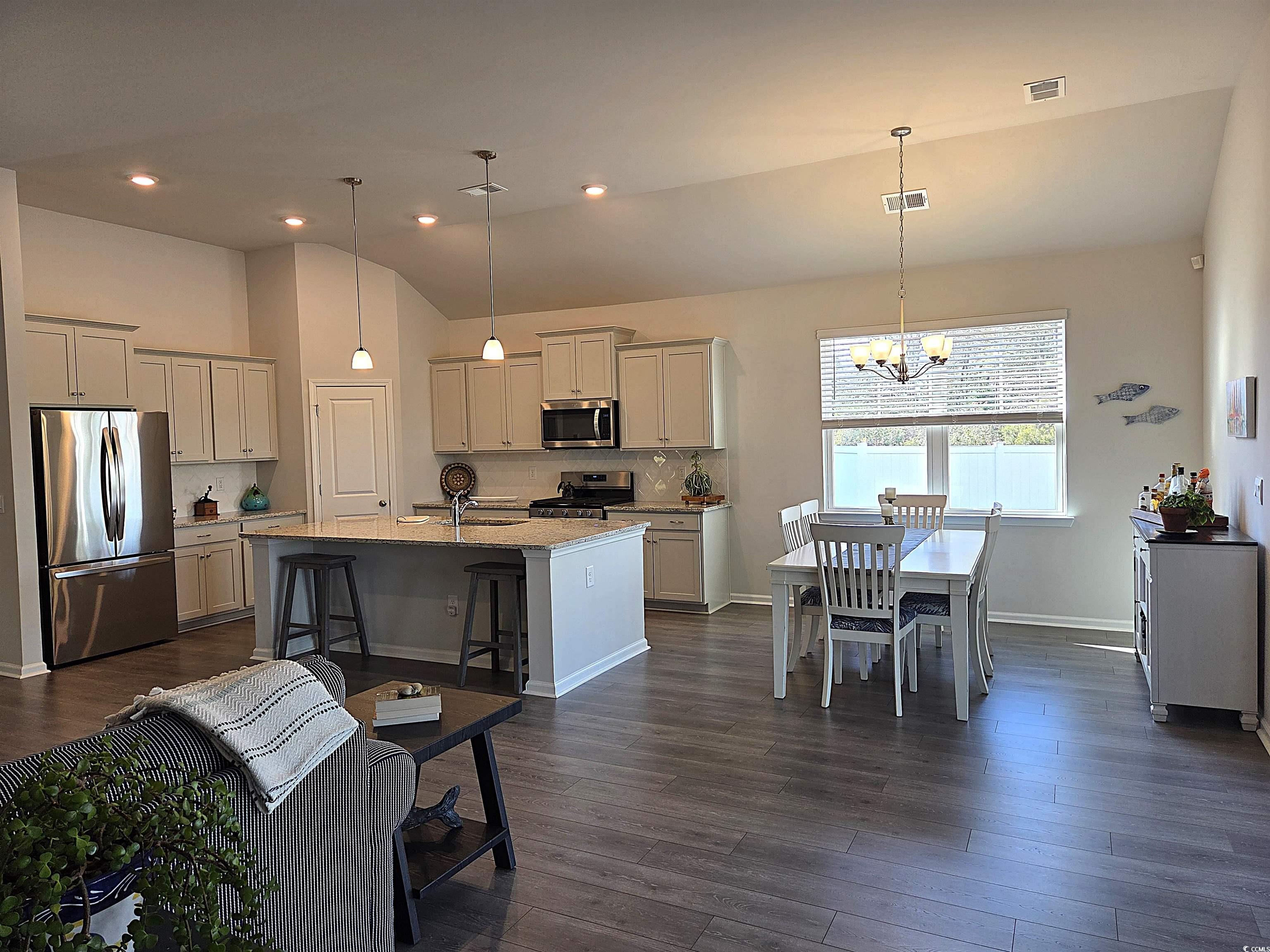 ***OPEN HOUSE Saturday November 23rd 1-4pm*** The Parks in Carolina Forest is the ideal location to all daily conveniences such as shopping, restaurants, award-winning Carolina Forest schools, several medical facilities, and about 5 miles to the beautiful beaches of the Atlantic Ocean! Highways 90, 31, 17 and 501 are all easily accessible to get around town. The Parks neighborhood has wonderful amenities all for a very low monthly HOA fee that includes a resort-style pool, hot tub, lazy river, fitness center, playground, clubhouse, sidewalks, paved path leading to the Carolina Forest Recreation Complex where you can enjoy trails, senior community center, the public library, another huge playground, sports fields, and the gym! This Litchfield floor plan home has almost 2000 heated square feet and is only 2 years old with many upgrades like gutters, landscaping, irrigation system, extended concrete patio, and built-in pergola. This single-story home is so spacious for comfortable living, open-concept great room/dining/kitchen area with high ceilings, wide plank laminate wood flooring, granite counters, designer tile backsplash, stainless steel appliances, walk-in pantry, huge breakfast bar island, and split bedroom plan. The primary bedroom is in the back of the house with a tray ceiling, double walk-in closets, en suite with two sinks, vanity, linen closet, private toilet room, and 5 foot shower. The other three bedrooms are at the front of the house with two on one side split by the second full bathroom and the fourth bedroom is down the hall past the dropzone for coats and shoes, by the large laundry room and garage entrance making it a perfect den, office, craft room, or fourth bedroom. The house sits on a 0.36 acre cul-de-sac lot with a great outdoor area including a large front porch, a wide back screen porch and wonderful entertaining area under a built-in pergola. Ask about special financing options!