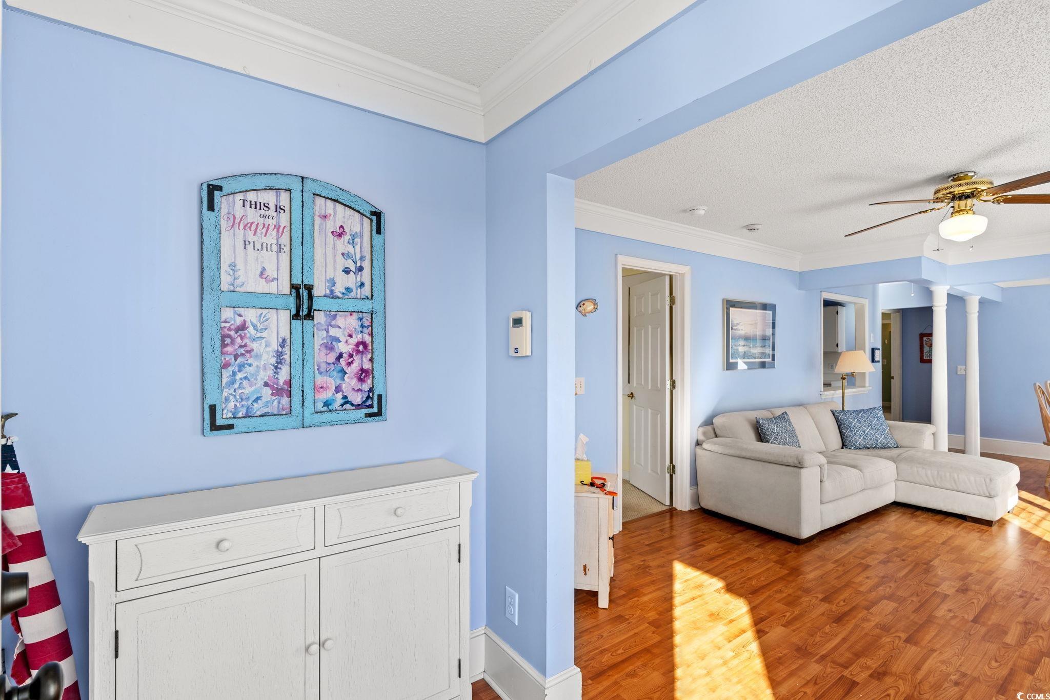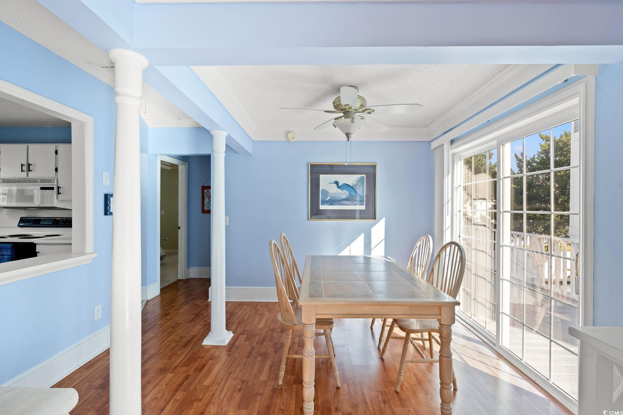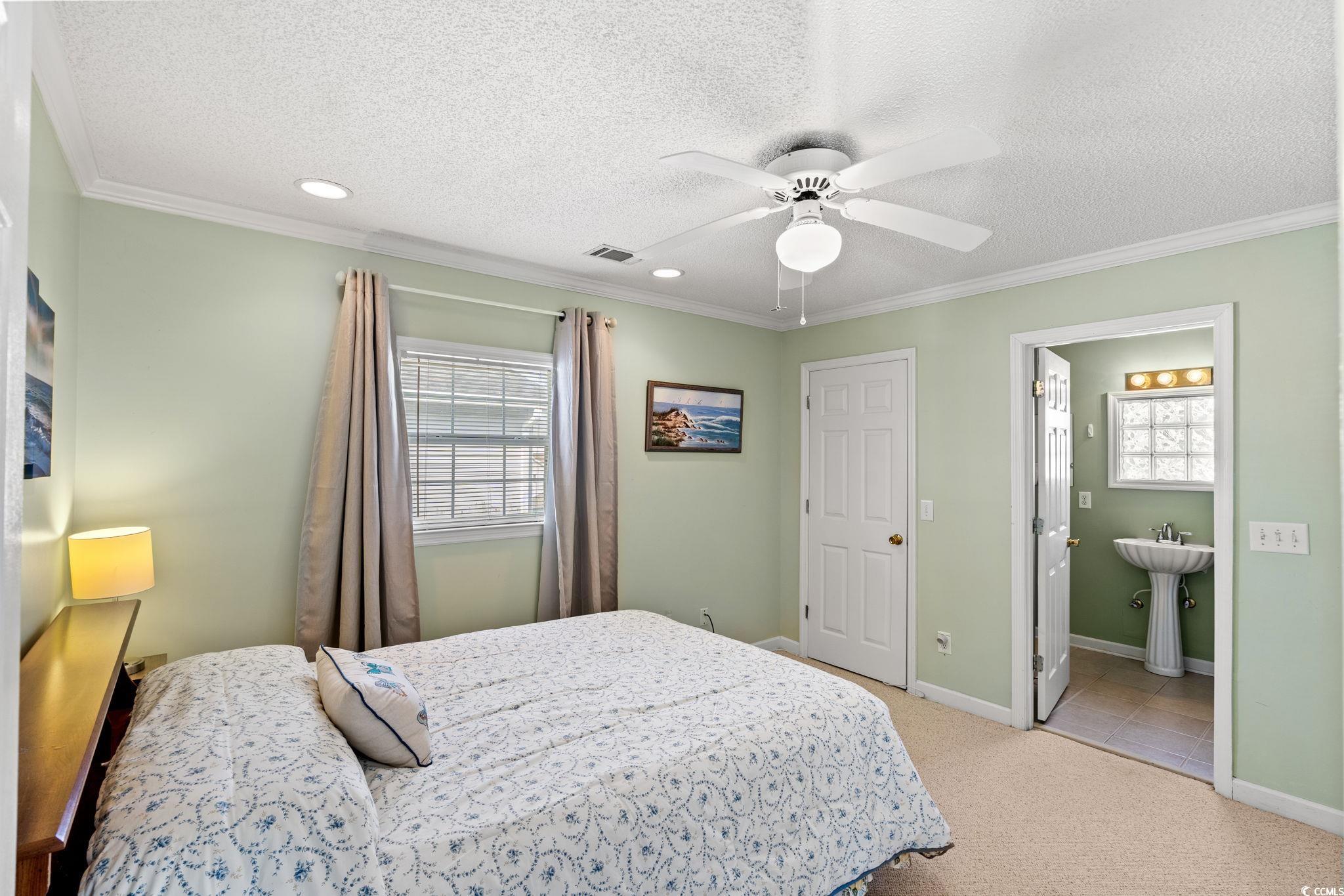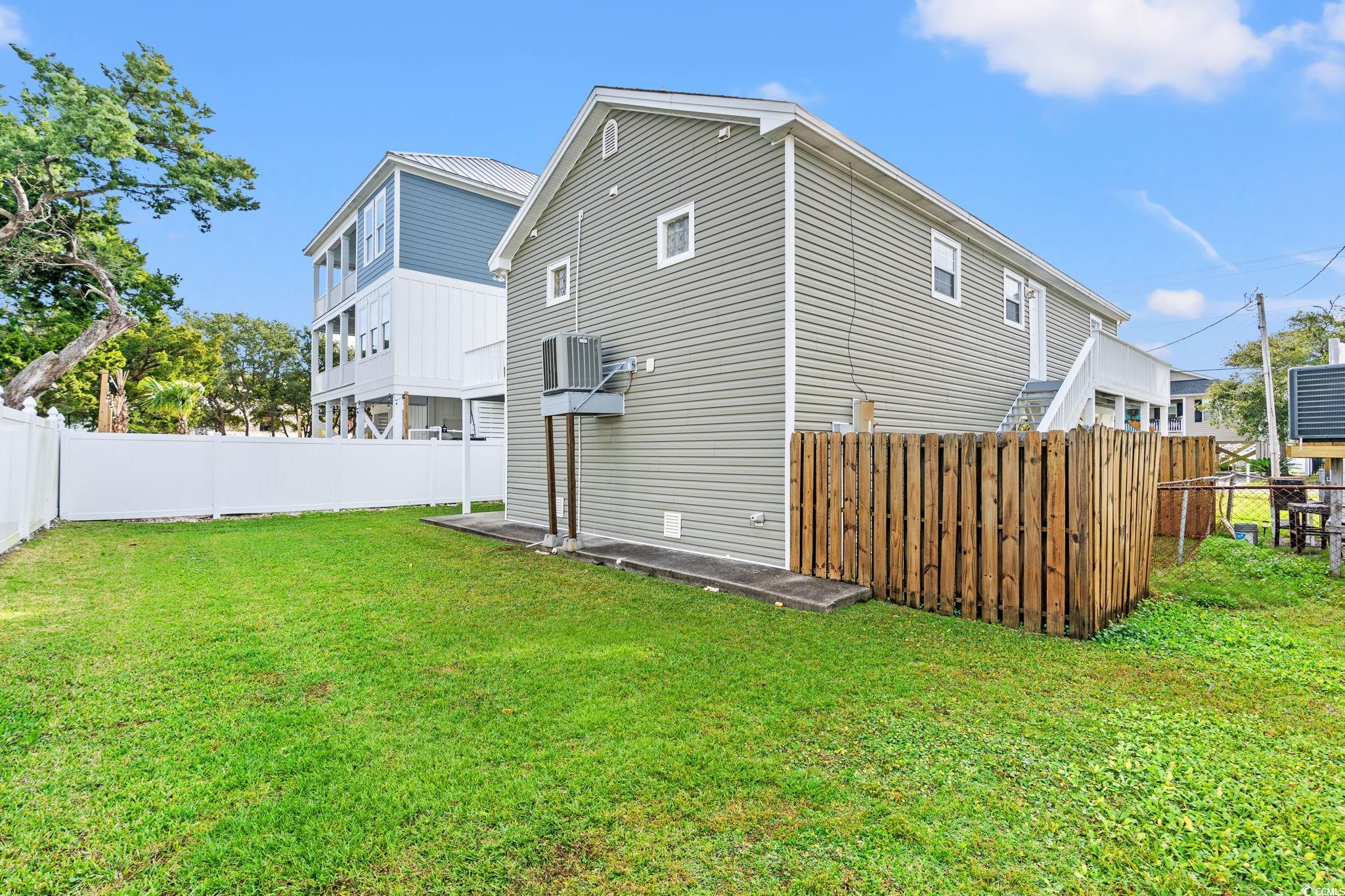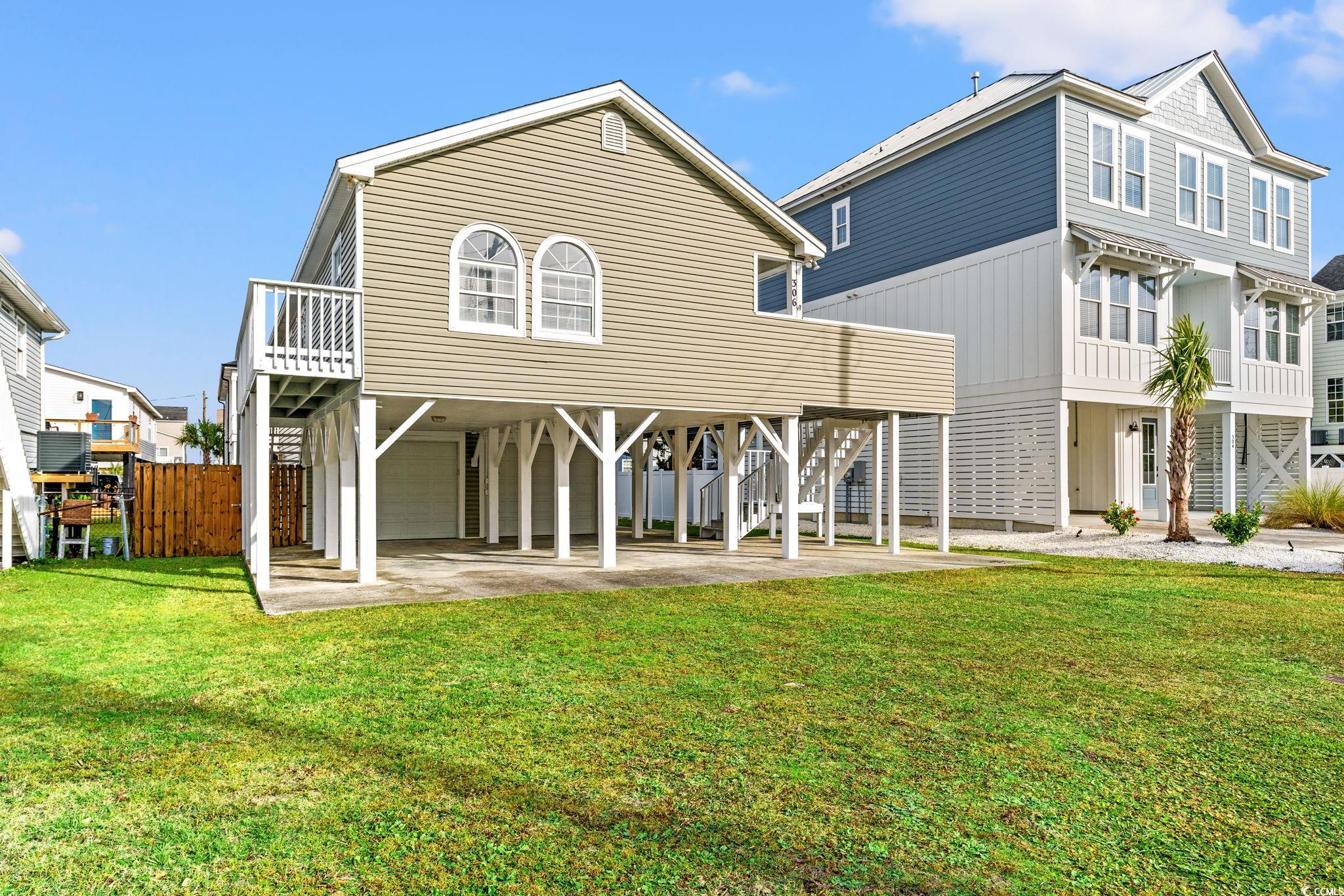**A Cherry Grove Charmer for Your Beach Getaways** Discover the ideal beach retreat in this charming raised beach house located in the sought-after Cherry Grove area. This delightful home features 3 spacious bedrooms and 2.5 bathrooms and sits on a generous .13-acre lot with NO HOA. Each bedroom is generously sized and furnished with one bedroom with a King Size bed, and two bedrooms with queens, offering comfort and tranquility for your guests. The home showcases elegant crown molding and durable laminate wood flooring in the living and dining areas, complemented by stylish tile flooring in the kitchen and bathrooms. The bedrooms are cozy with plush carpeting in two bedrooms and laminate flooring in the third bedroom, ensuring a warm and inviting atmosphere. This property comes fully furnished, with all furnishings to convey, allowing you to move in and enjoy your beach oasis right away. An attached under-home garage accommodates two cars and is equipped with updated wind-resistant garage doors and openers replaced within the last several years. Please note that the garage is not included in the heated square footage of the home. Located just one and 1/2 blocks from the ocean and a short golf cart ride to a variety of dining and shopping options, this homes location is truly unbeatable. Cherry Grove boasts pristine beaches, excellent surf fishing, pier fishing, and an array of recreational activities, making it a perfect destination for beach lovers. Additionally, there's ample space for a pool to enhance your outdoor experience. Please be advised that the golf cart in the garage does not convey with the sale. Embrace the beach lifestyle in this Cherry Grove charmeryour perfect getaway awaits!