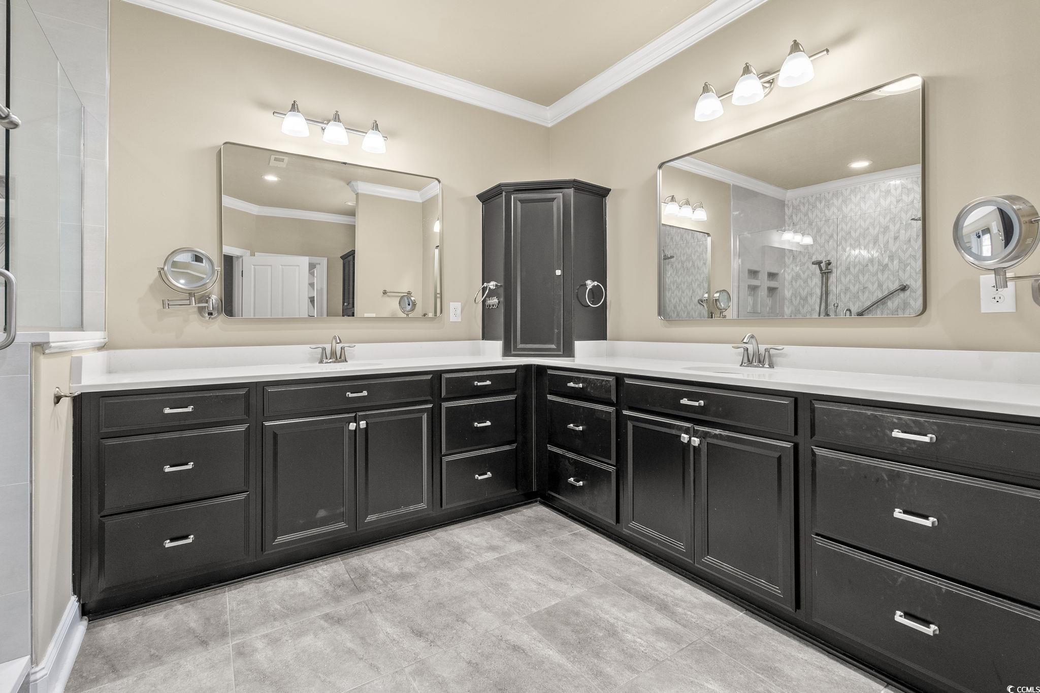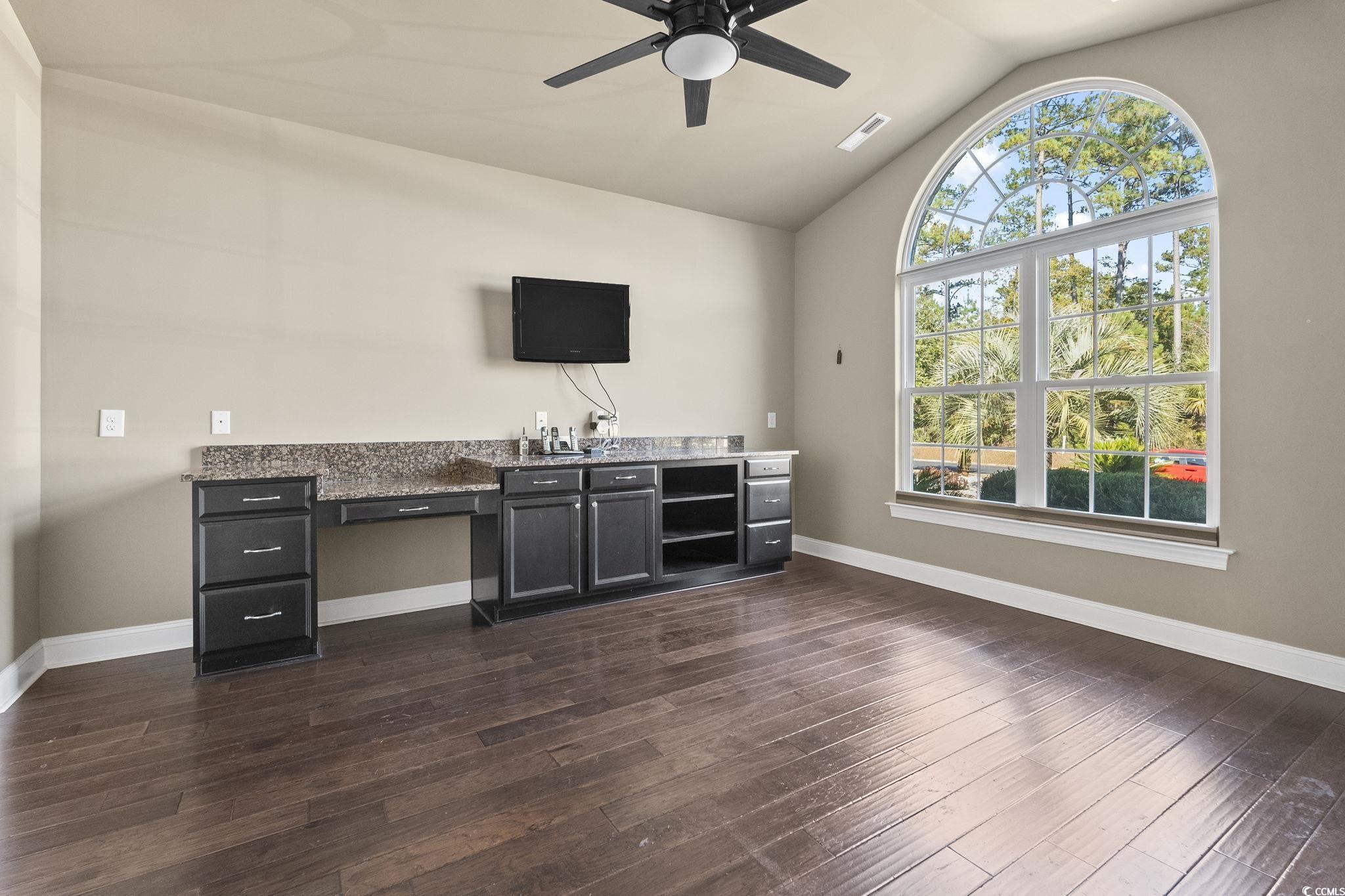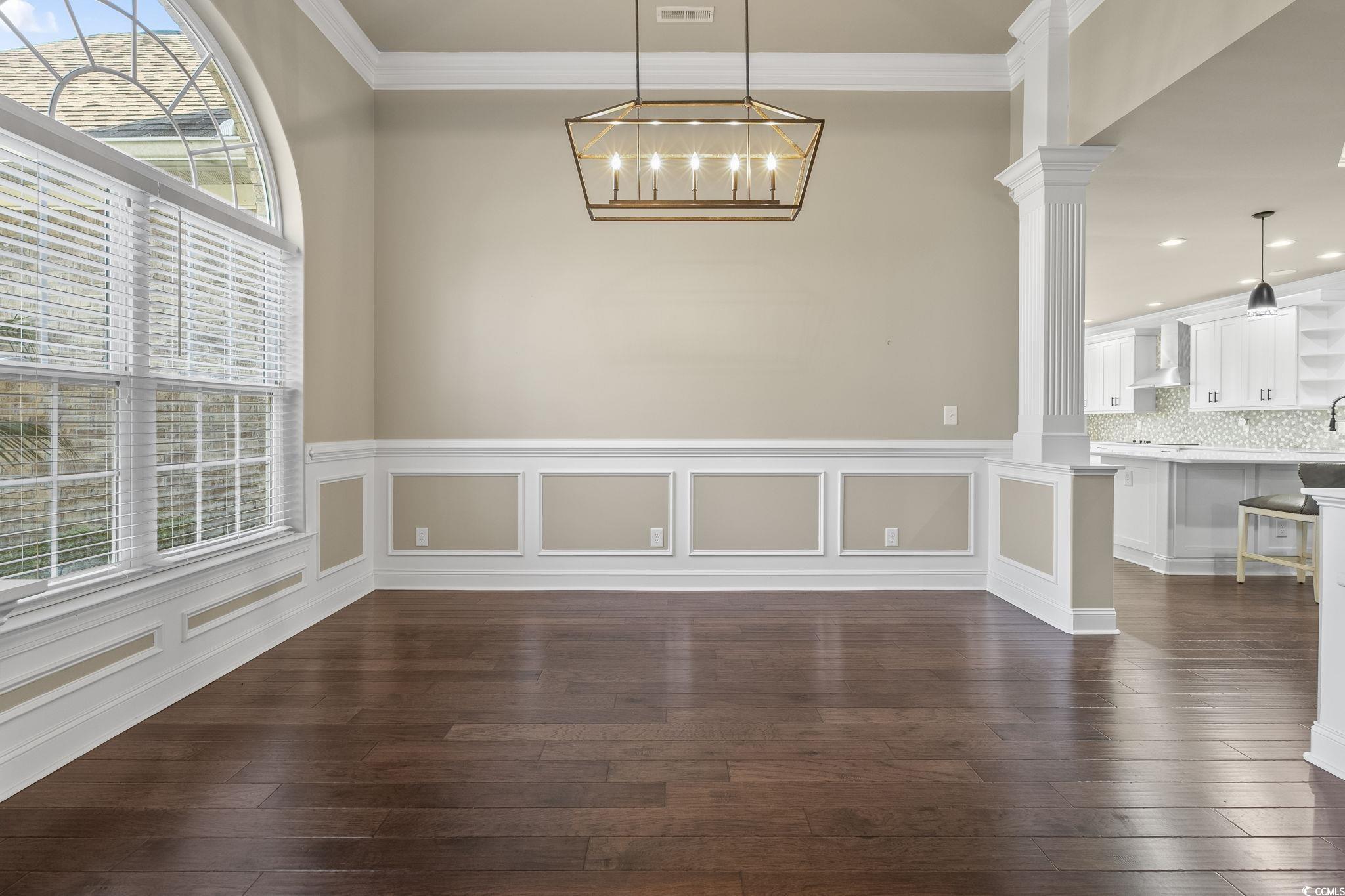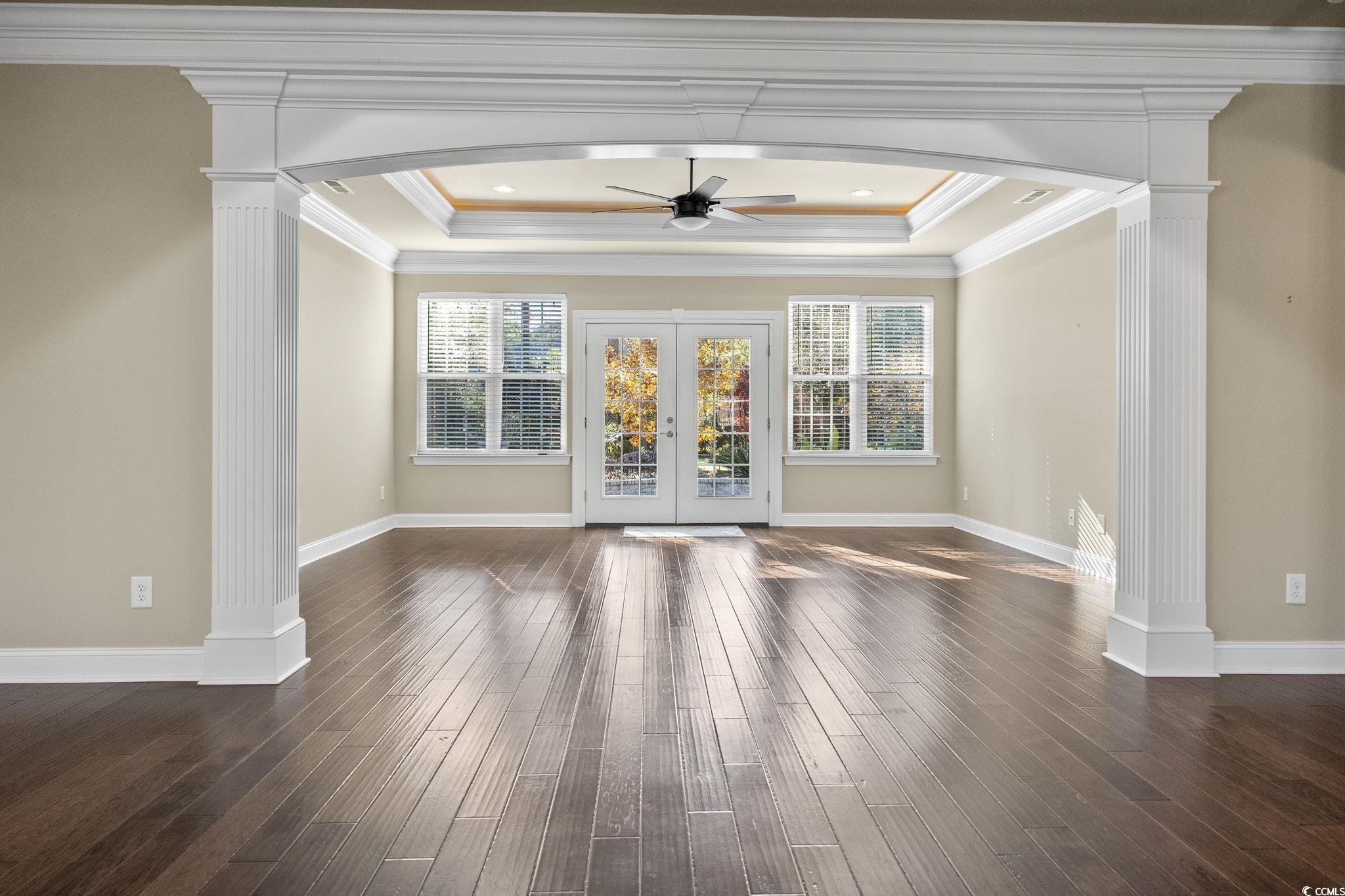 This sprawling custom 4-bedroom, 3.5-bath home blends comfort, luxury, and exceptional spaces for entertaining-all on one convenient level. The heart of the home is an expansive kitchen featuring a wall oven, oversized island, peninsula, beverage fridge, and abundant cabinetry, making it one of the largest and most functional kitchens you'll find. The open, airy floor plan offers effortless flow, ideal for modern living. With two master suites-each with a tile walk-in shower and the primary featuring his-and-her closets-privacy and comfort are elevated throughout. Tray lighting throughout the main living area, formal dining room space. Too many upgrades to mention, schedule an apt to see today. The oversized garage offers full size walk-up stairs to a climate-controlled (portable unit conveys) space above the garage. Outside, the fenced backyard provides wonderful privacy with a natural, park-like setting and plenty of room to add a pool to create your own personal oasis complete with a putting green to work on your short game. Enjoy community amenities including a clubhouse, grand outdoor patio, as well as a large zero-entry pool for leisure and relaxation. For boating enthusiasts, Creek Harbour low HOA dues include dry boat storage and access to a day dock on Collins Creek, offering a direct route to the Intracoastal Waterway. From there, you can reach the historic waterfronts of Georgetown or Conway in about 30 minutes for lunch or a scenic afternoon on the water. In addition to the oversized attached garage, a detached garage offers endless possibilities, extra storage, workshop, gym, she-shed, man-cave, or anything you imagine. This detached space also includes a bathroom, its own low-boy water heater, and a fantastic covered outdoor kitchen area with storage and seating, perfect for watching the game and enjoying true Lowcountry living.