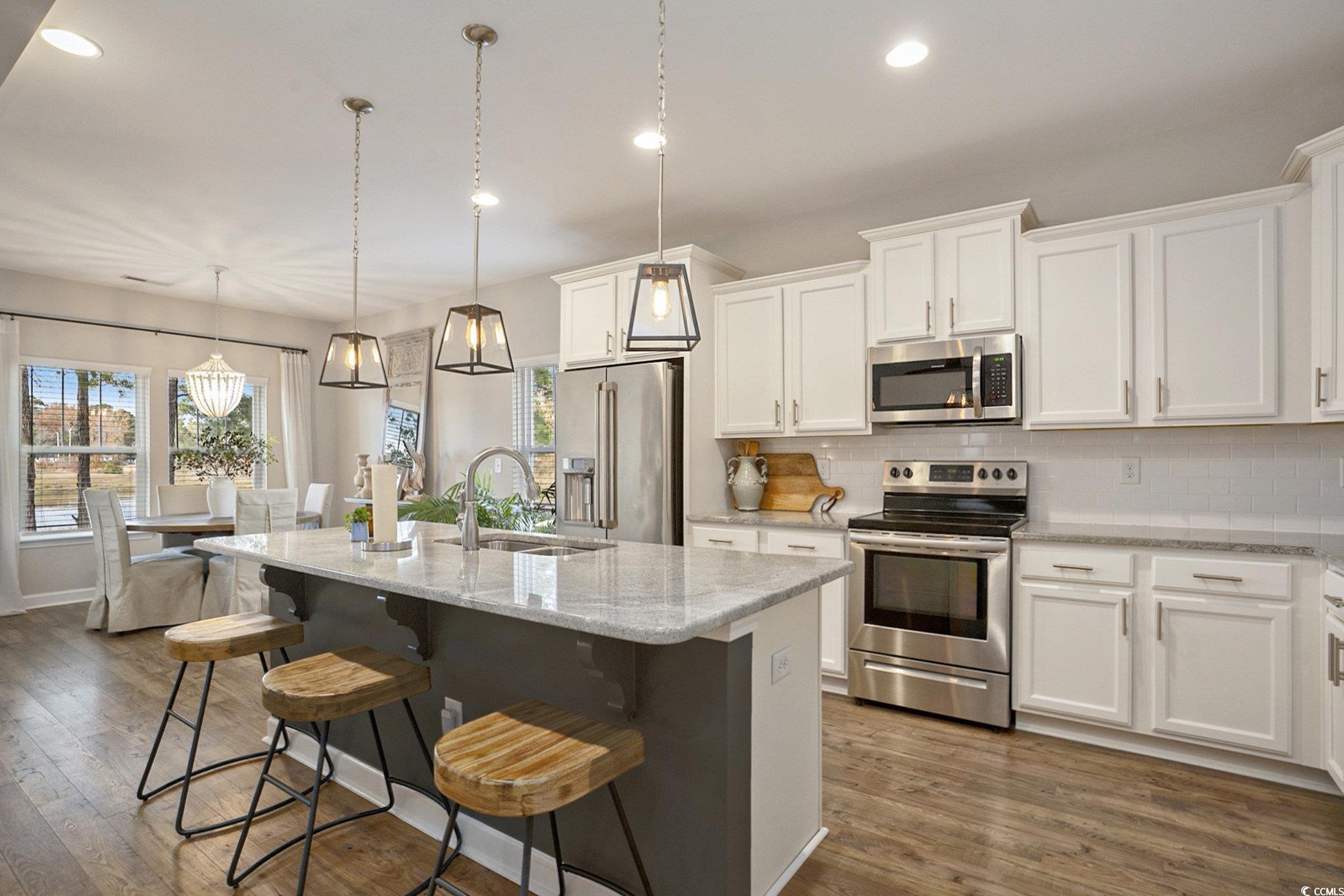 Welcome to this beautifully maintained 2019 built home in the serene Dunbarton Lane neighborhood of Conway. This open, one-level floorplan offers 3 generous bedrooms and 2 full baths with modern finishes throughout. The spacious great room features a tray ceiling and flows effortlessly into the upgraded kitchen highlighted by subway tile backsplash, stainless appliances, large pantry and generously sized island perfect for both casual meals and entertaining. Enjoy covered front and rear porches for outdoor relaxation, plus a two-car attached garage and low-maintenance lot. Minutes from shopping, dining and convenient to the coast, this home offers a blend of comfort and style in a sought-after area. Dont miss your opportunity schedule your showing today!